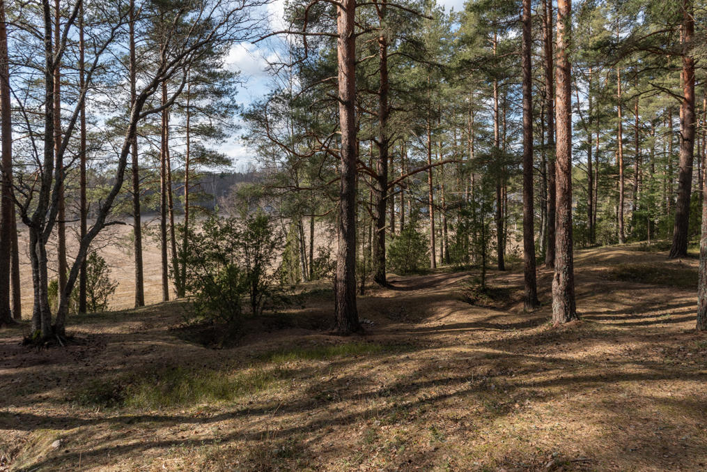 13. Сосновая роща, растущая на холмике, изрыта, если присмотреться, множеством ямок. Кяряйямяки — древний жальник, кладбище 600-1200 гг. н. э., на котором идентифицировано более 200 могил.