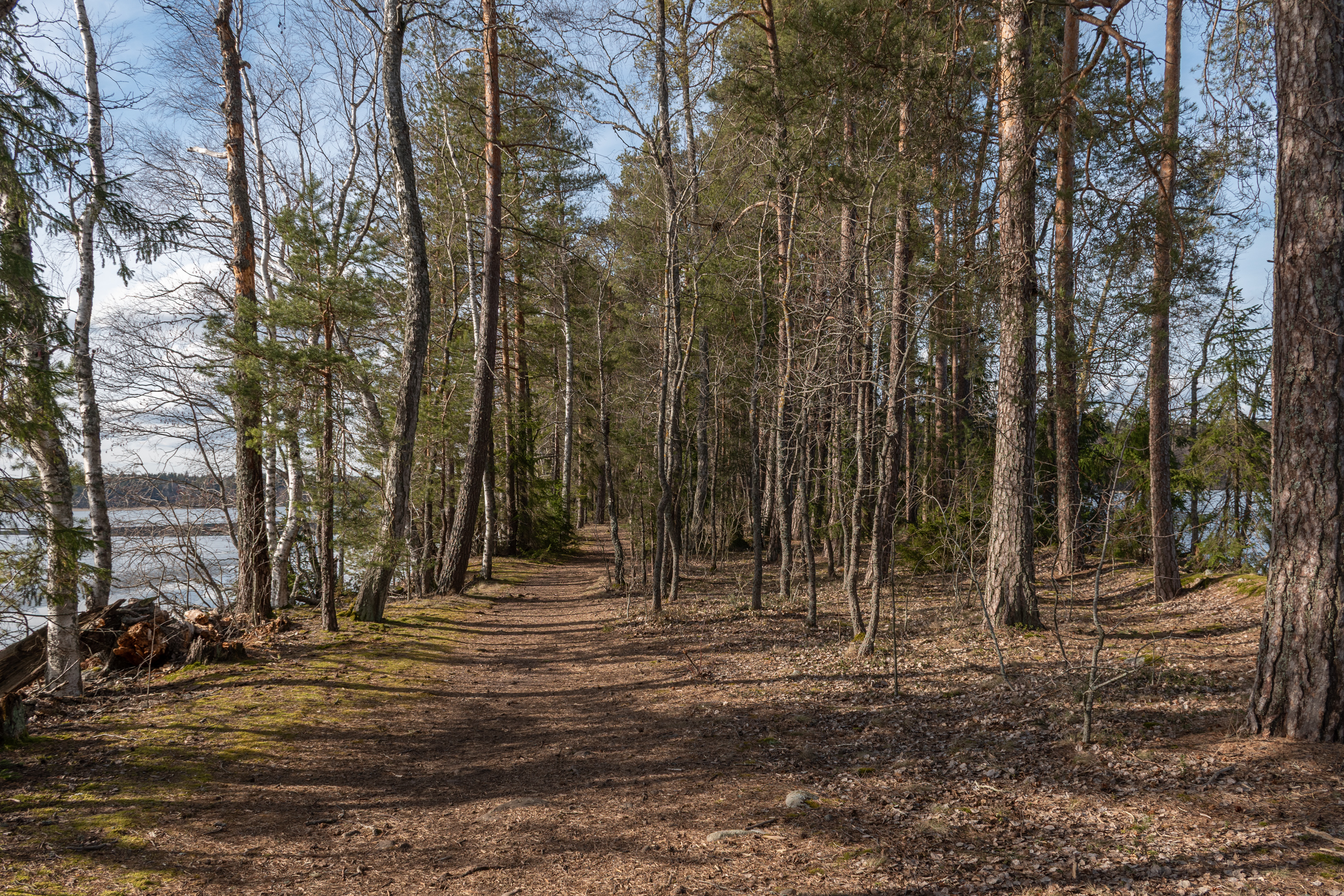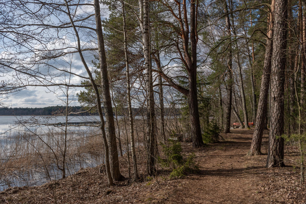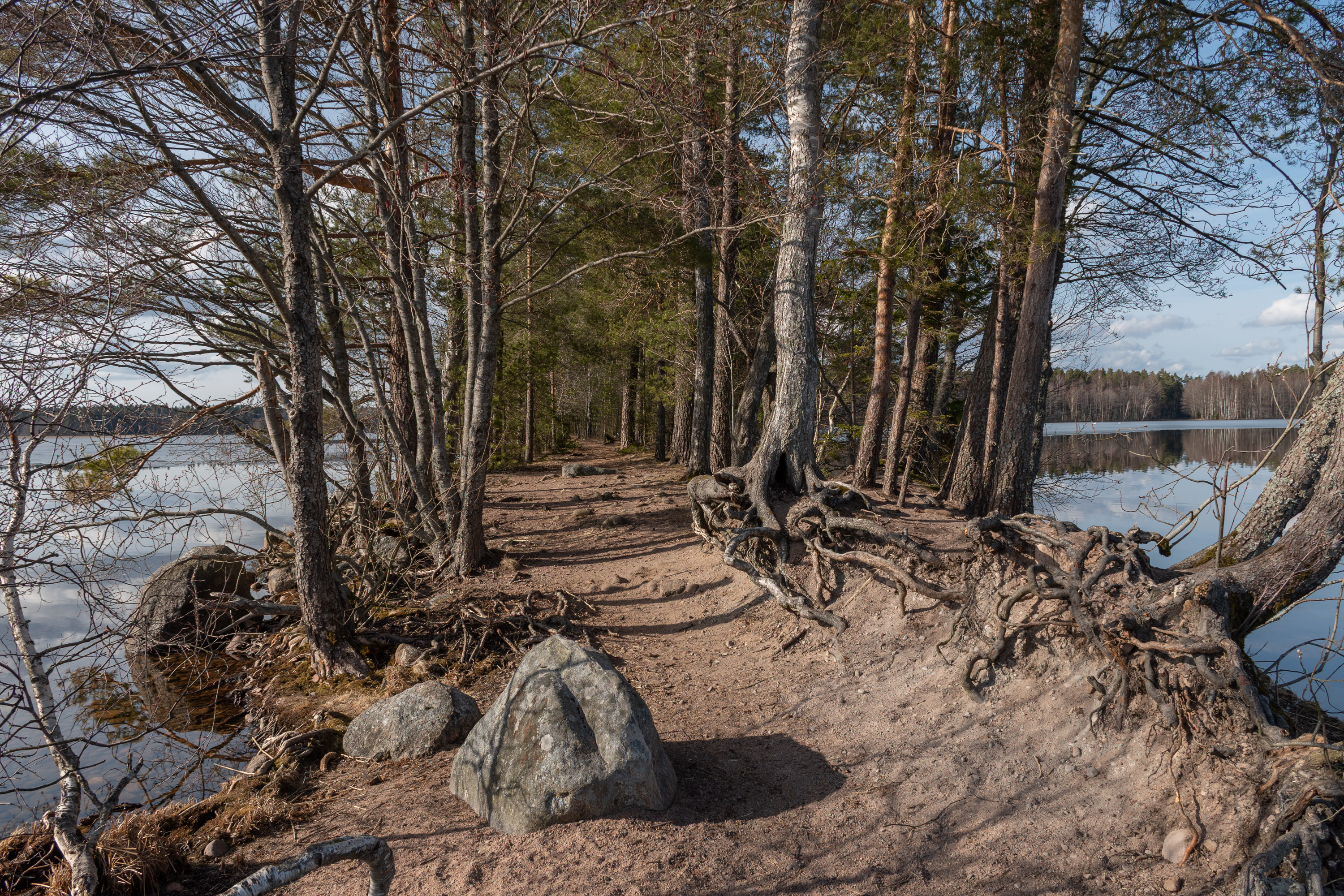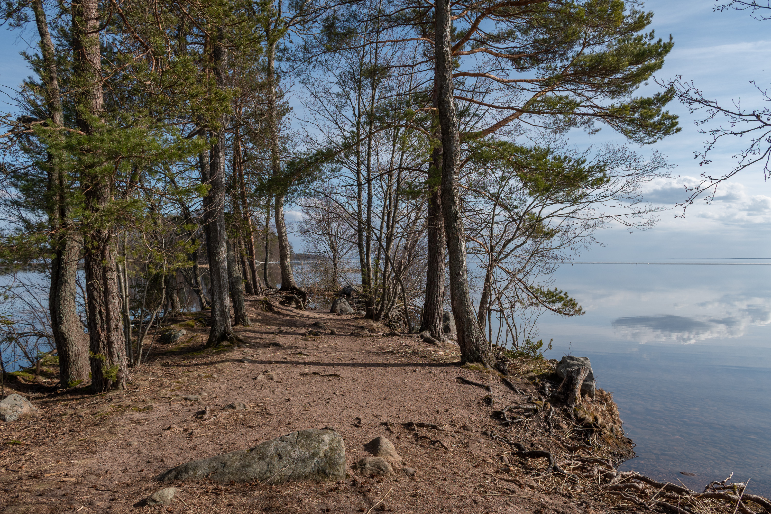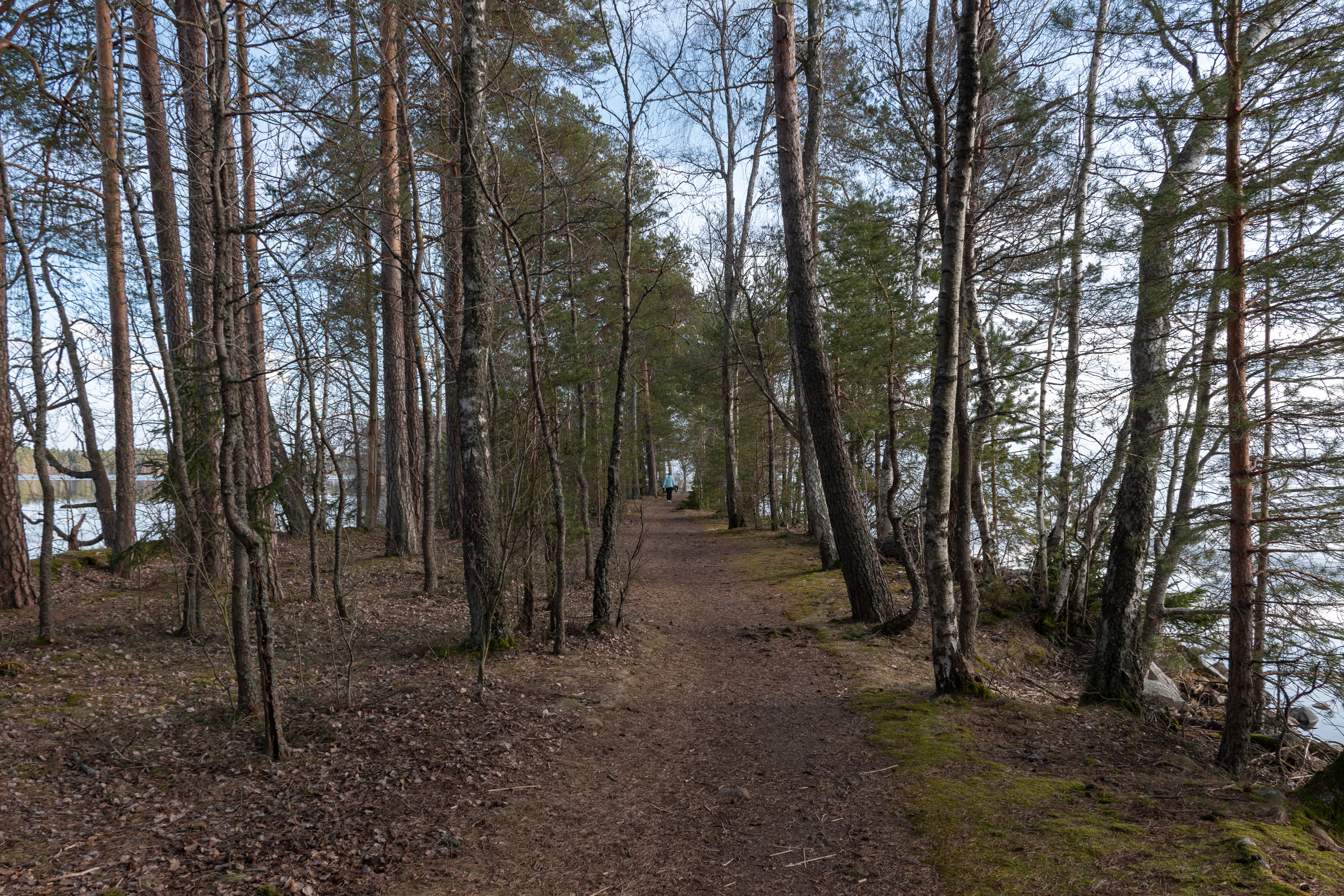 50. Ну а лучшее место, чтобы полюбоваться озером — это вот эта вот коса Хииттенкари, шириной в основном 10-30 м и вдающаяся в озеро на полкилометра. Здесь есть официальная природная тропа, но официально начинается она от заводского парка, а если не хочется идти далеко, можно подъехать и поближе, на дорожку Hevossuontie у какого-то водозабора на берегу, где есть несколько парковочных мест, хотя нет никаких указателей и информационных щитов.