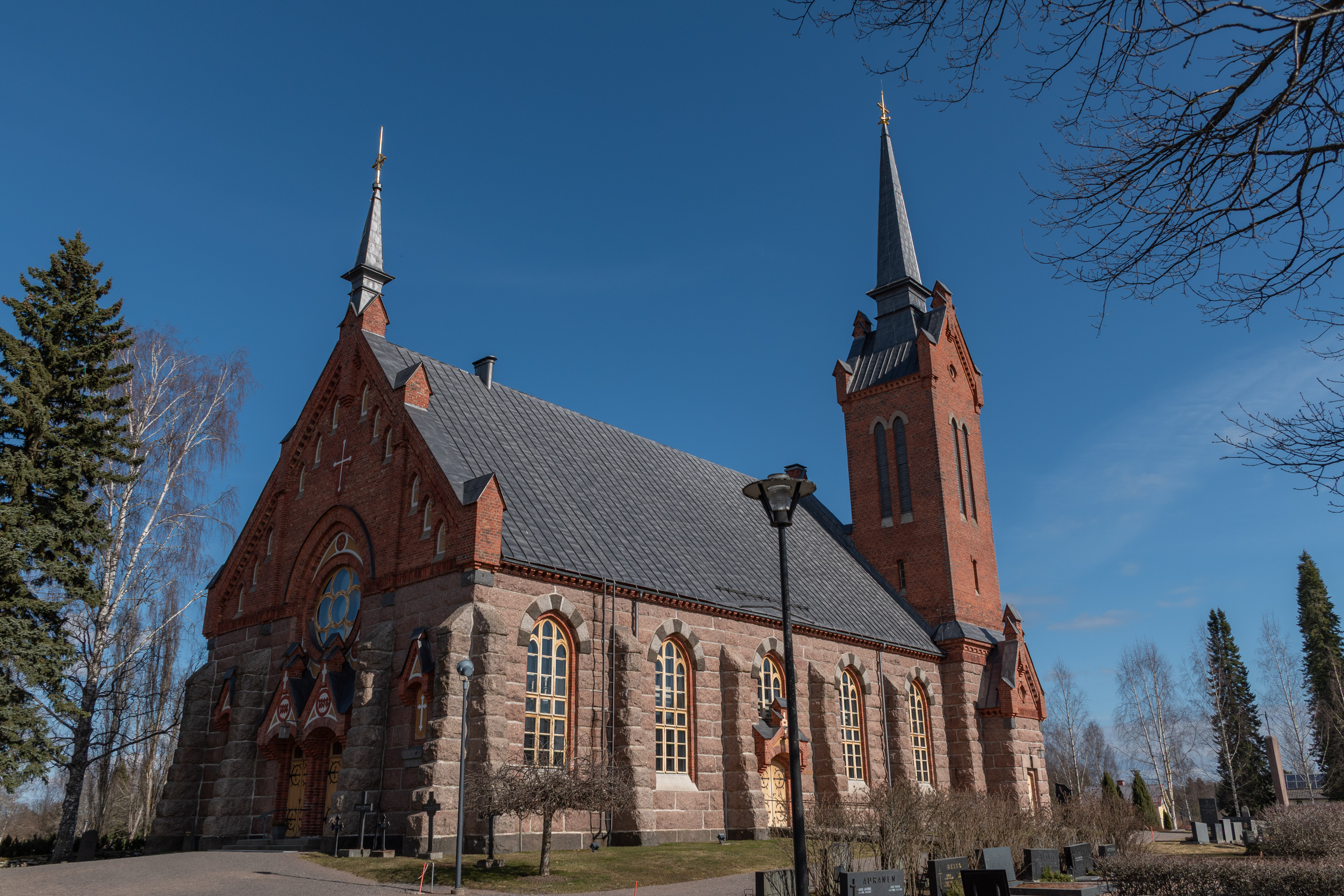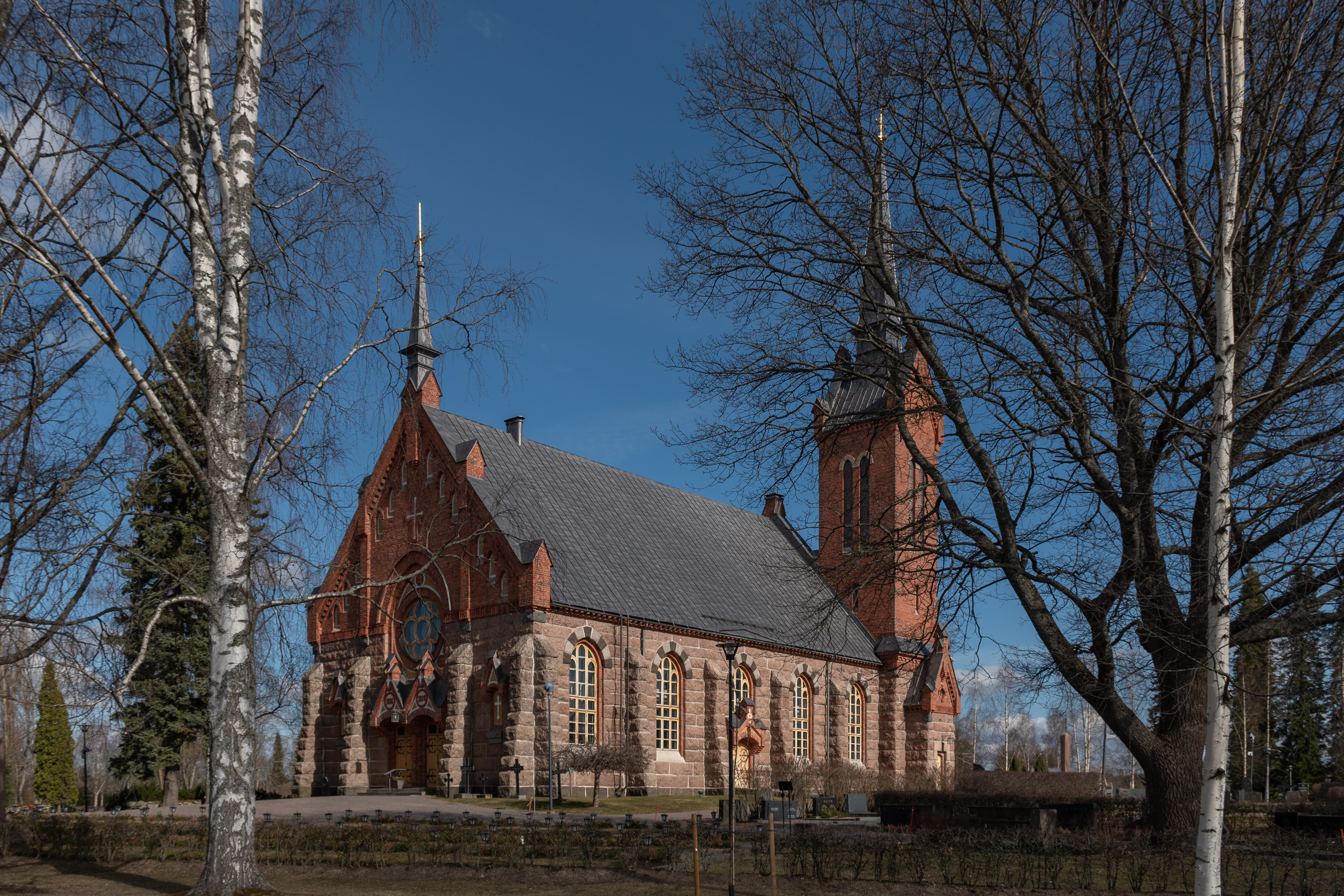 Церковь Эуры построена Йосефом Стенбеком (Josef Stenbäck, 1854-1929) в 1898 году. Стенбек, знаменитый архитектор финских церквей в 1890-1920-х, начал с неоготических церквей, потом перешел на национально-романтический и югендштиль, а потом к 1920-х вернулся к неоготике, когда это уже было не так модно. Тут в Эуре как раз он начал национальный романтизм (каменные части) объединять с неоготикой (кирпичные части). Отличная церковь вышла.