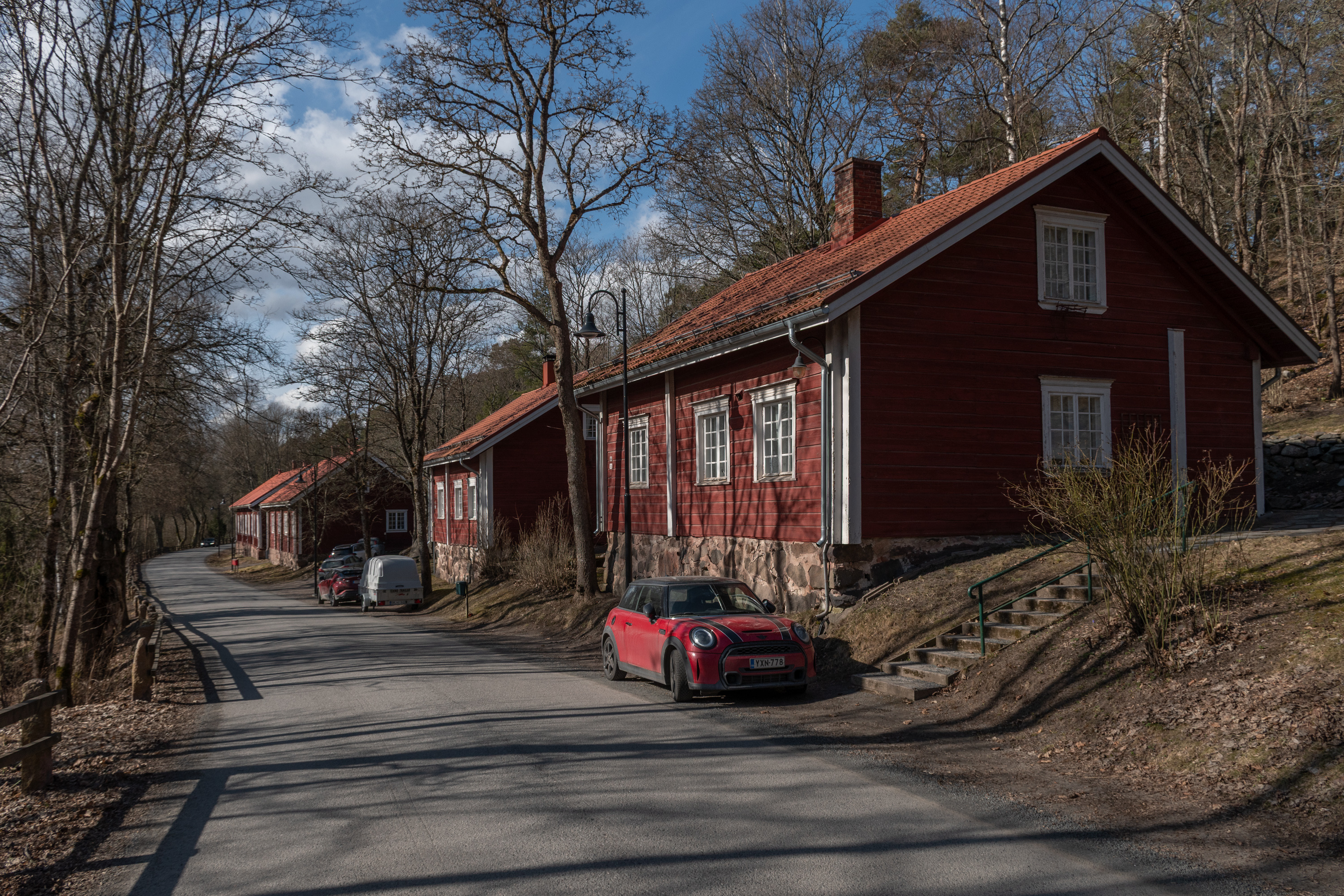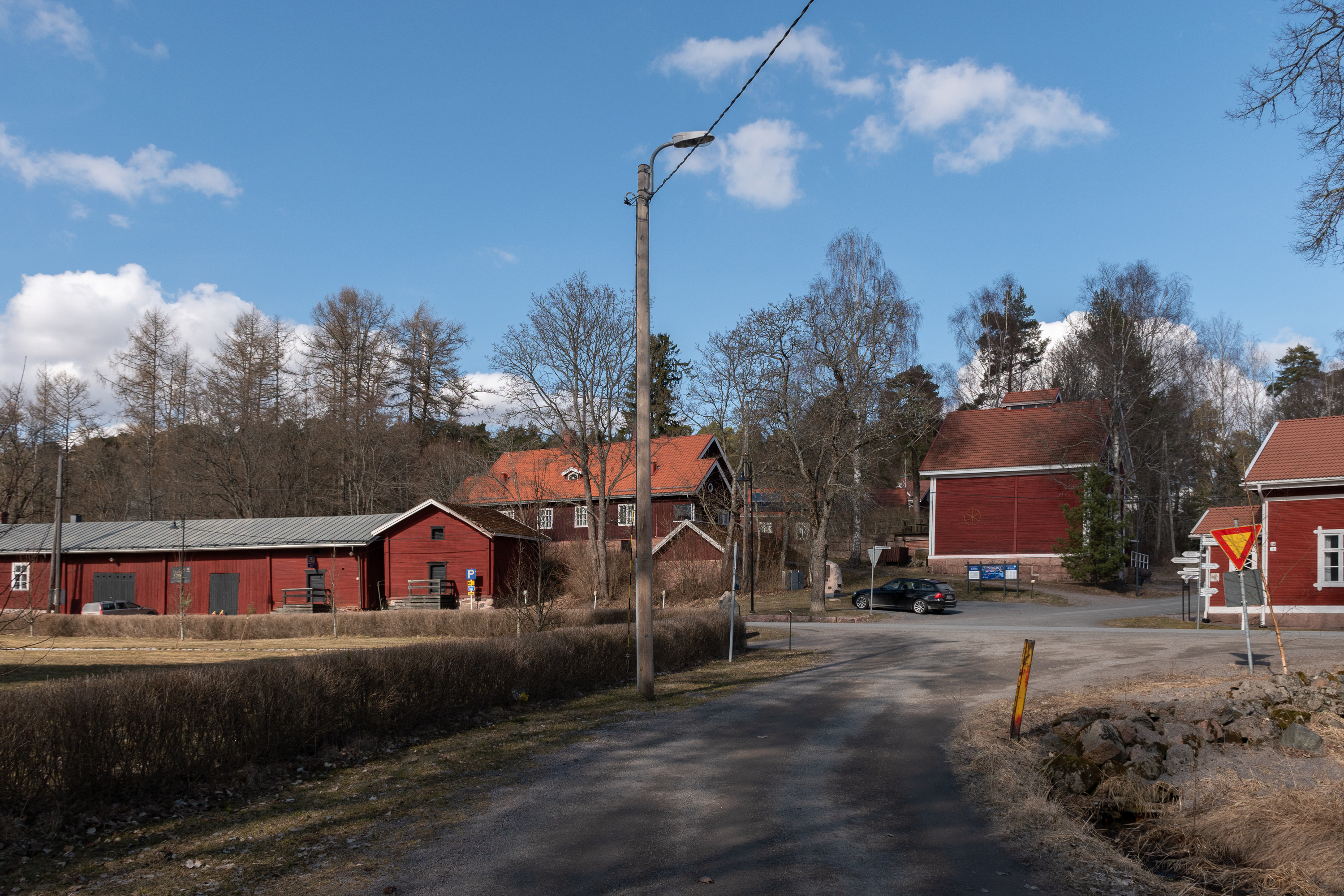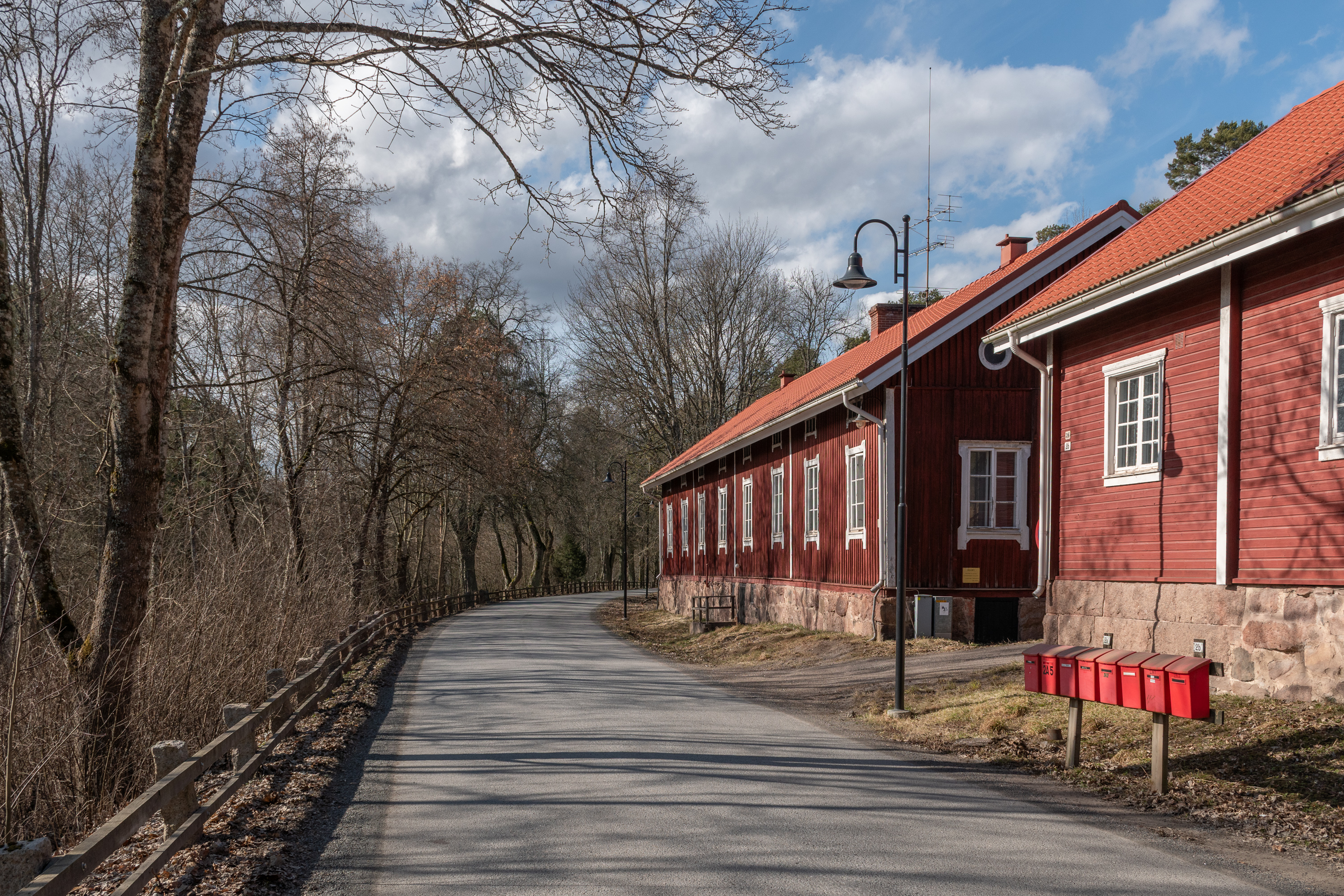 28. С открытием бумажного комбината железоделательное производство было свернуто окончательно, и до наших дней никаких построек самого железоделательного завода не дошло (только пишут про склад древесного угля, который я не нашел, и на схемах он не обозначен) — ансамбль Кауттуа интересен только как жилой. Самые старые жилые дома сохранились со времен Фалька, начала 19 века, или даже, может, чуть раньше, по главной дороге заводского поселка, Кузнечной (Sepäntie). В большинстве домов здесь продолжают жить, как обычно, несмотря на благоустройство для туристов и всякие кафе с магазинчиками в рамках "заводского парка".