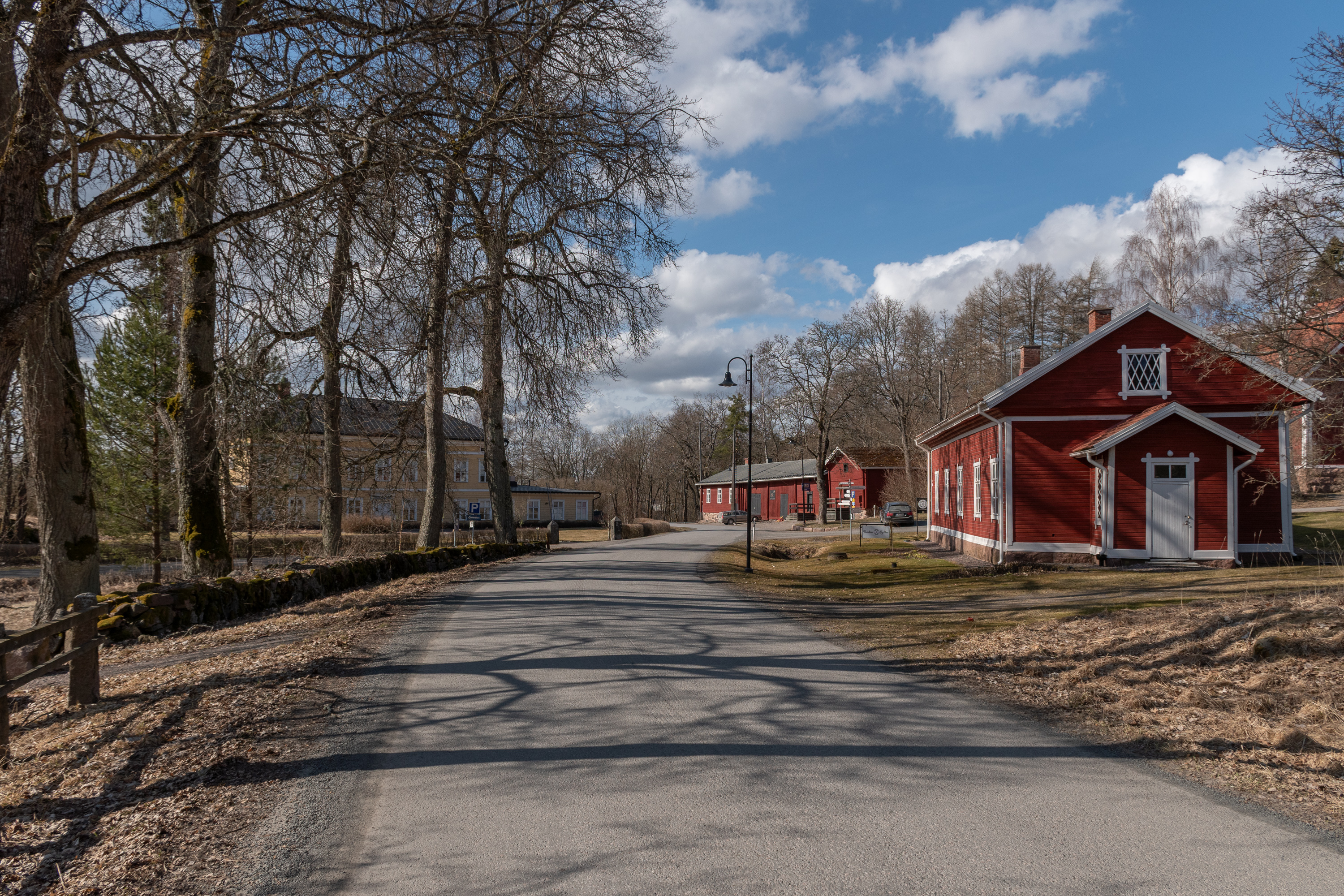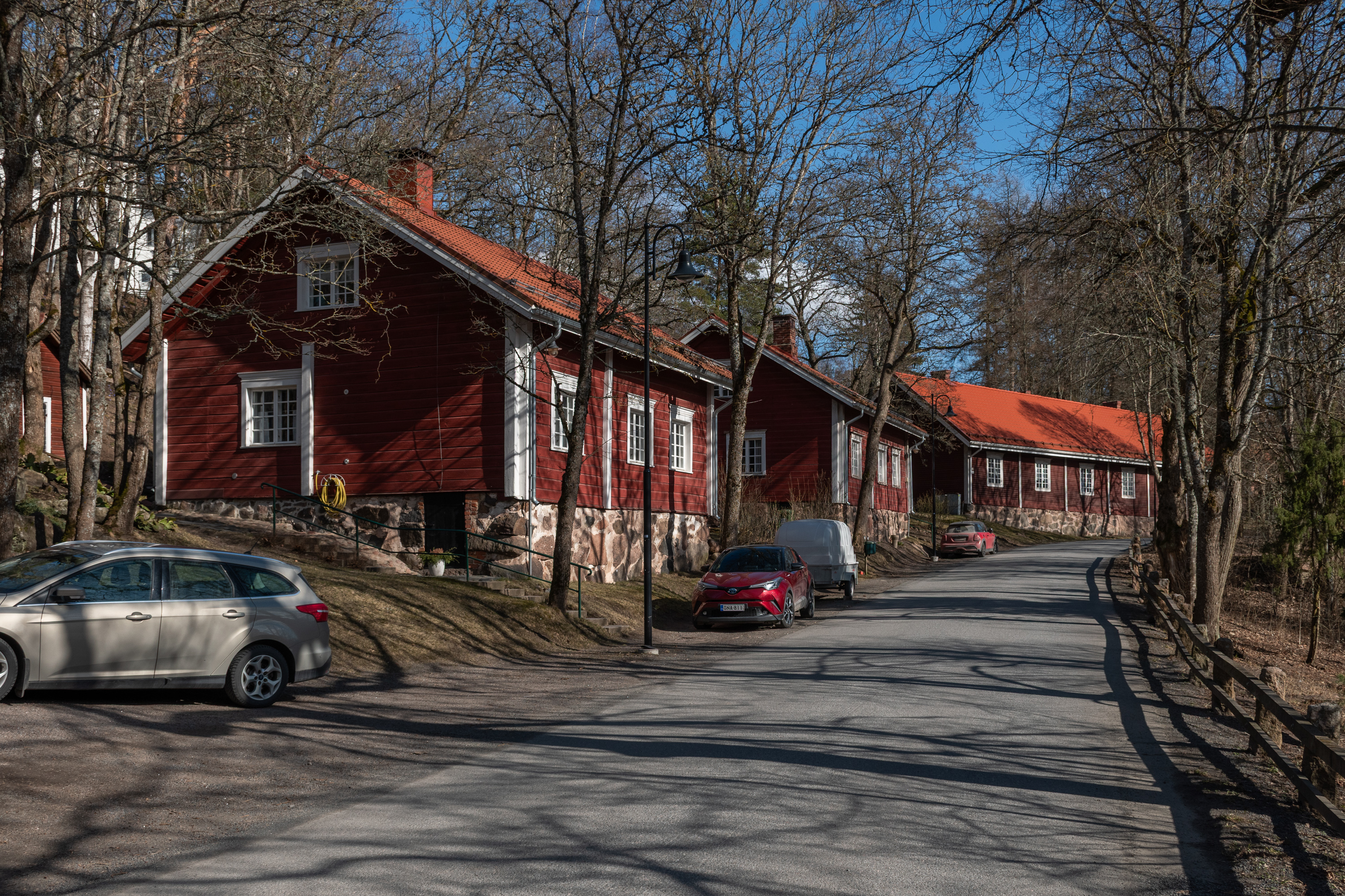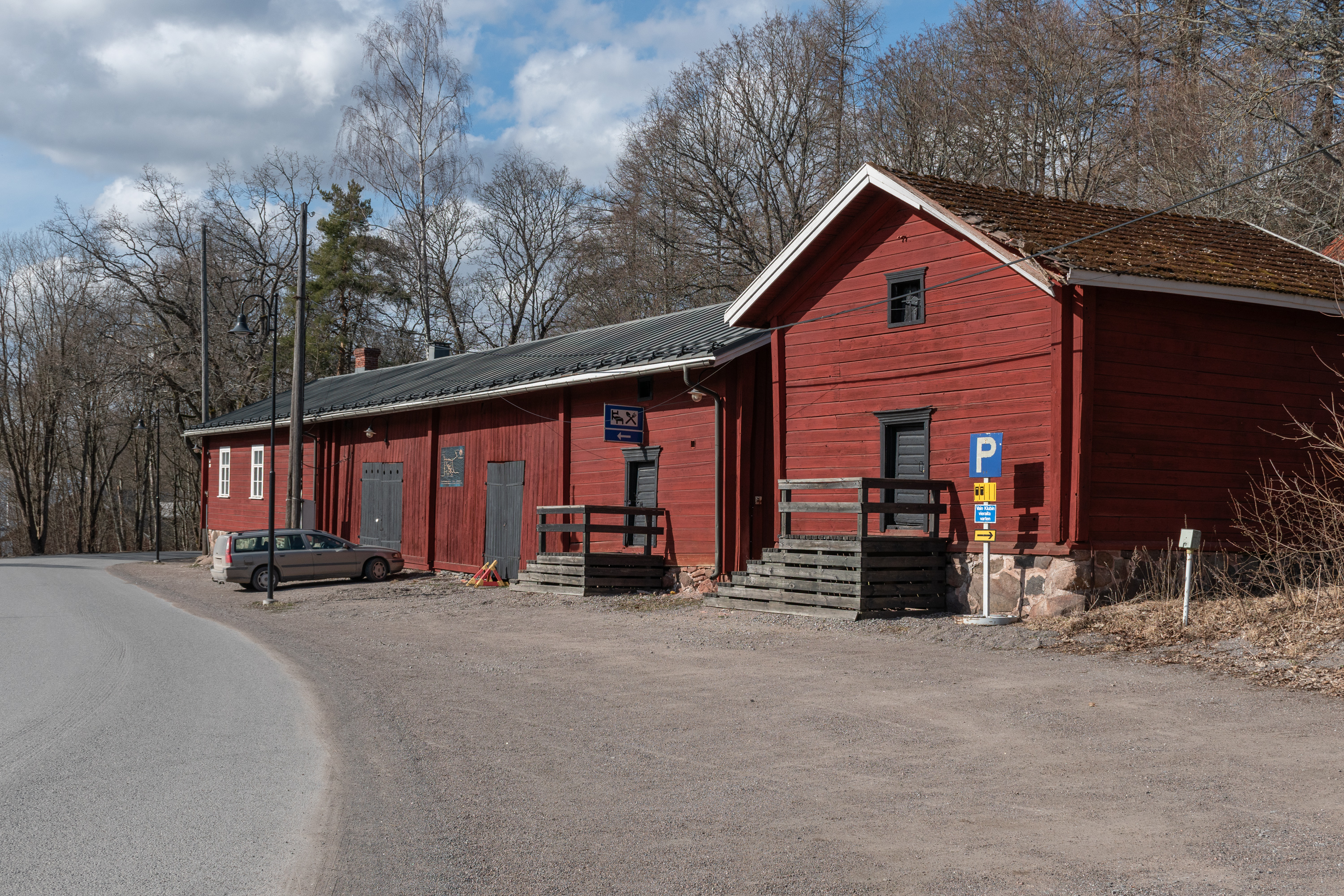 28. С открытием бумажного комбината железоделательное производство было свернуто окончательно, и до наших дней никаких построек самого железоделательного завода не дошло (только пишут про склад древесного угля, который я не нашел, и на схемах он не обозначен) — ансамбль Кауттуа интересен только как жилой. Самые старые жилые дома сохранились со времен Фалька, начала 19 века, или даже, может, чуть раньше, по главной дороге заводского поселка, Кузнечной (Sepäntie). В большинстве домов здесь продолжают жить, как обычно, несмотря на благоустройство для туристов и всякие кафе с магазинчиками в рамках "заводского парка".