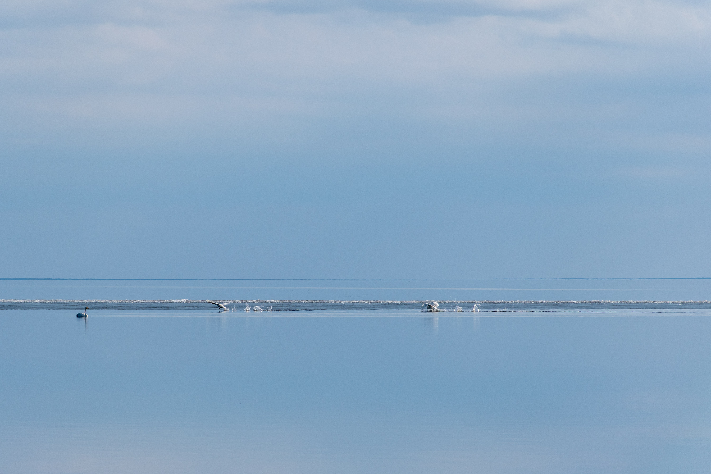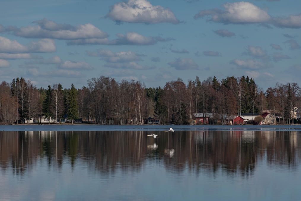 55. Тишина, которую пронзают только вопли лебедей — тоже уже прилетели после зимы — сразу несколько пар с косы было видно. Лебедь-кликун — официальная национальная птица Финляндии — их популяция в стране оценивается в около 10 тыс. пар, а по осени в стране может быть одновременно до 100 тыс. лебедей, включая также молодняк и тех, что только пролетают через Финляндию по пути на юг. Хотя еще в 1950-х лебеди в Финляндии стояли на грани исчезновения.