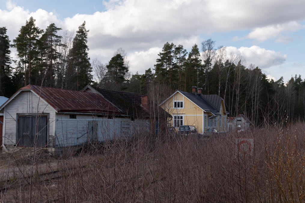 46. На заброшенную станцию Кауттуа, вокзал которой продан под жилье, впрочем, издали все-таки получилось посмотреть. Ветка на Эуру и Кауттуа от железной дороги [Тампере-]Кокемяки-Раума, от станции Киукайнен, была построена в 1914 году, по инициативе компании Альстрёма; она вошла в состав основной ж/д на Рауму, которая принадлежала городу Раума, а не государству, аж до 1950 года. Но то есть полноценный участок национальной ж/д сети был, не просто подъездной путь. Ветка была длиной 14 км, в 1953 продлили еще на 6 км до села Сякюля, до сахарного комбината; уже в 1953 же закончились пассажирские перевозки. Сахарный комбинат и стал последним пользователем ветки, действовавшей до 2009. Железная дорога заброшена и заросла, переезды, подъездные пути, в т. ч. в озерную гавань, и некоторые участки разобраны. Давно снесена также другая станция в районе центра Эуры.