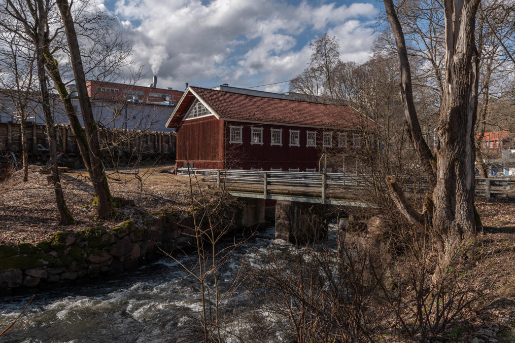 27. А дальше за усадьбой течет бурная Эурайоки, с бывшей лесопилкой на берегу. В 1873 году завод купил Антти Альстрём (Antti Ahlström, 1827-1896), один из крупнейших фабрикантов в истории Финляндии, начавший свой путь с Ноормаркку к северо-востоку от Пори, где сохранилось остающееся в собственности семьи Альстрёмов поместье. Альстрём заметил, что в эпоху индустриальной революции деятельность традиционных железоделательных заводов быстро перестает быть прибыльной — к 1880 доходы от подсобных сельскохозяйственных угодий завода Кауттуа превысили доходы от собственно завода — и начал диверсифицировать бизнес. Была в числе прочего лесопилка, а в 1907 открылся бумажный комбинат.