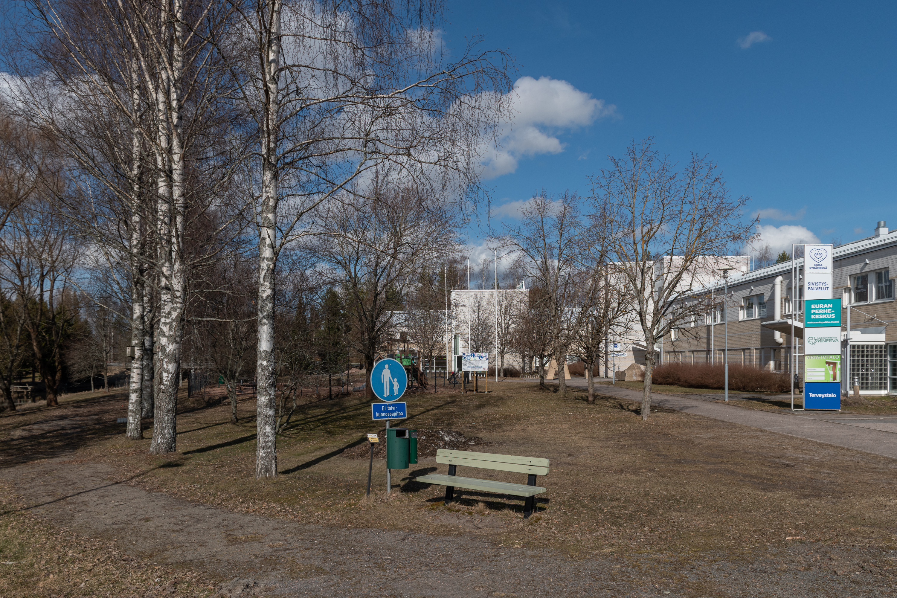 5. Дальше сохранилось старое здание школы (1880) — более современное (1958), скучное, находится за ним. Эта первая в Эуре школа была основана в 1879. Из интересного, но пропущенного мной в районе церкви сохранились еще старый каменный мост через Эурайоки и усадьба священника.