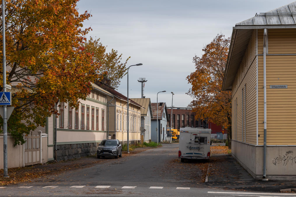 27. Вокруг заводов, в частности, на разделяющем заводы Мостовом бульваре (Siltapuistokatu) есть старые деревянные многоквартирные дома, очевидно, рабочих, хотя тоже не в сильно большом количестве и многие довольно обшарпанные.
