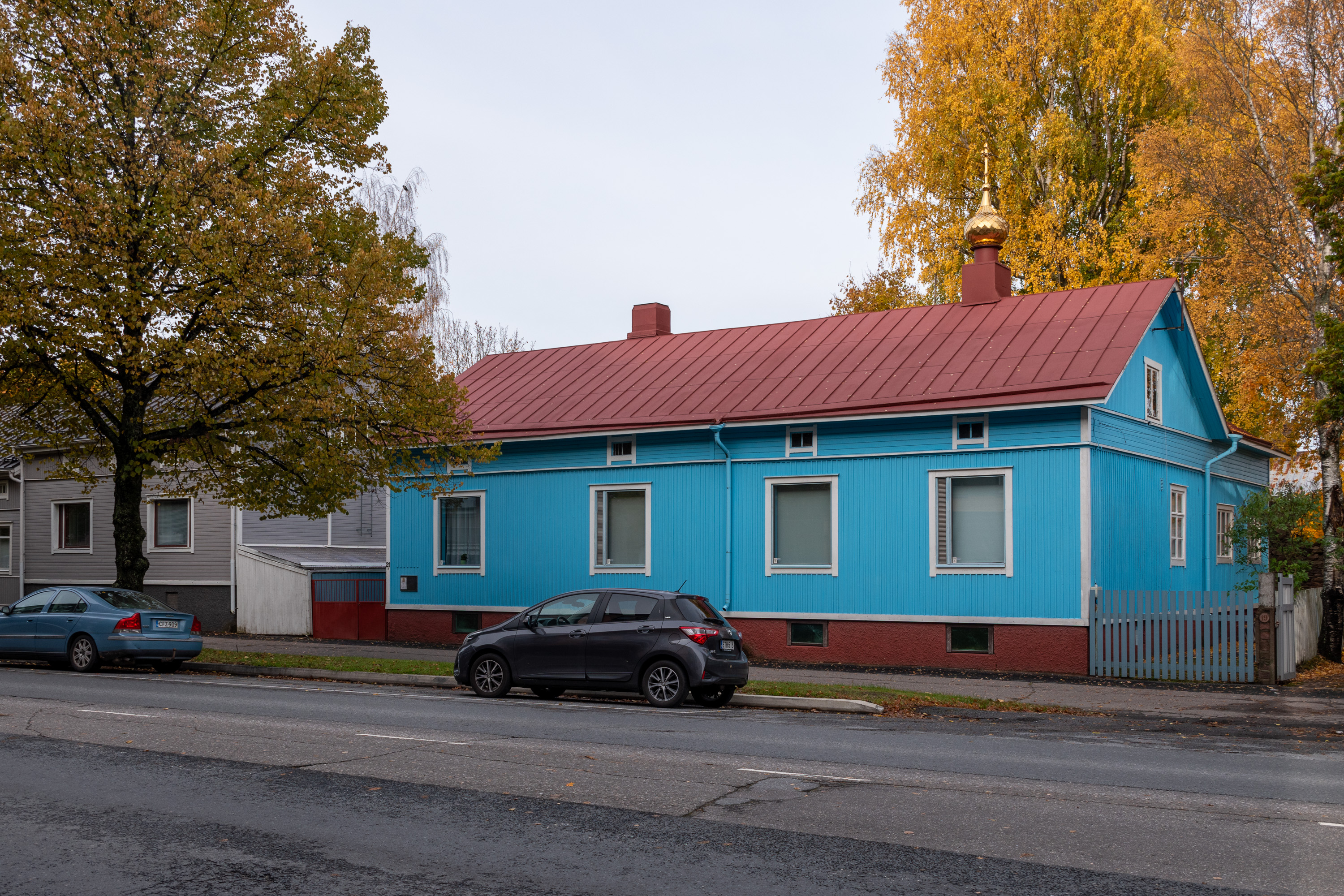 18. На этом домике не сразу и заметишь главку с крестом — с 2008 года в нем действует Домовый храм Казанской богоматери, да и до этого какой-то православный молитвенный дом был. Это одна из редких в Финляндии православных церквей Московского патриархата, то есть РПЦ. Финляндская православная церковь (Suomen ortodoksinen kirkko), ФПЦ, одна из двух официальных церквей страны, отделилась от российской и присоединилась к Константинопольскому патриархату в 1923, но еще с 1926 в Выборге был вновь основан приход Московского патриархата, к которому присоединились в основном, понятное дело, русские, не согласные с разделением церкви. Сейчас у Российской православной церкви в Финляндии пять приходов (википедия утверждает, что семь), которым соответственно принадлежат пять церквей, все мелкие и неприметные. Финляндская православная церковь невелика, а Русская православная церковь в Финляндии и того меньше, и об ее существовании вспоминают редко, но в наши дни все-таки иногда вспоминают — их широко считают агентами Кремля, разумеется.