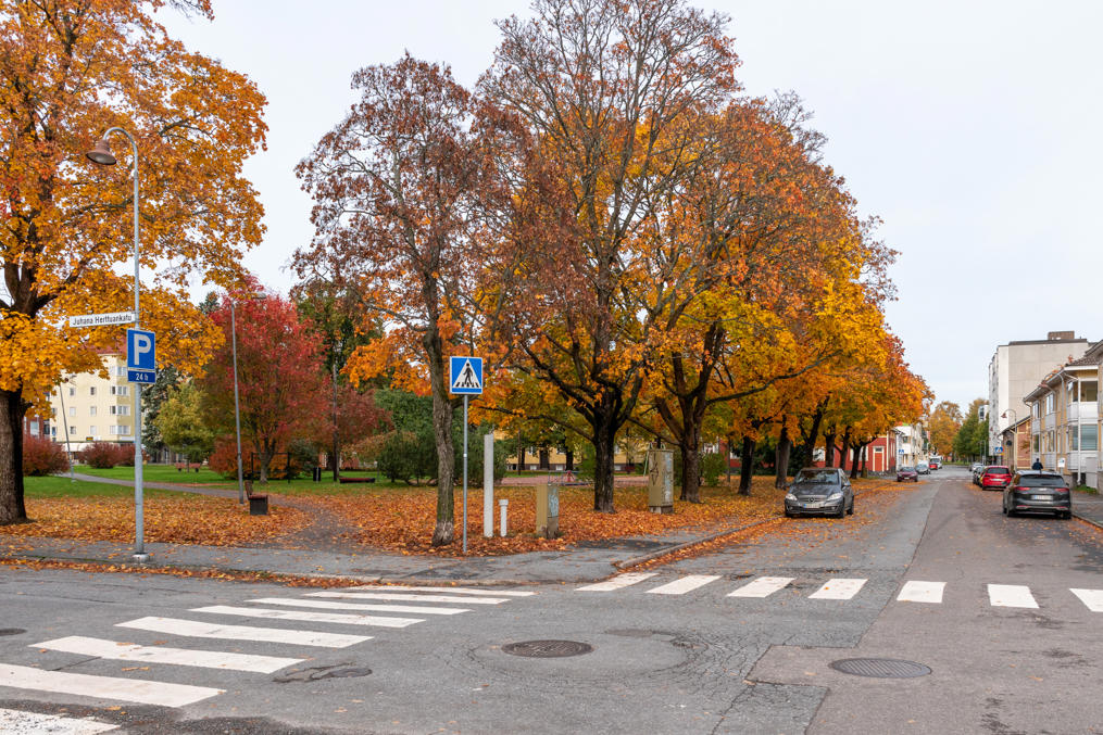54. Скверик в центре района зовется в честь его прошлого площадью Землянок (Kuoppatori).