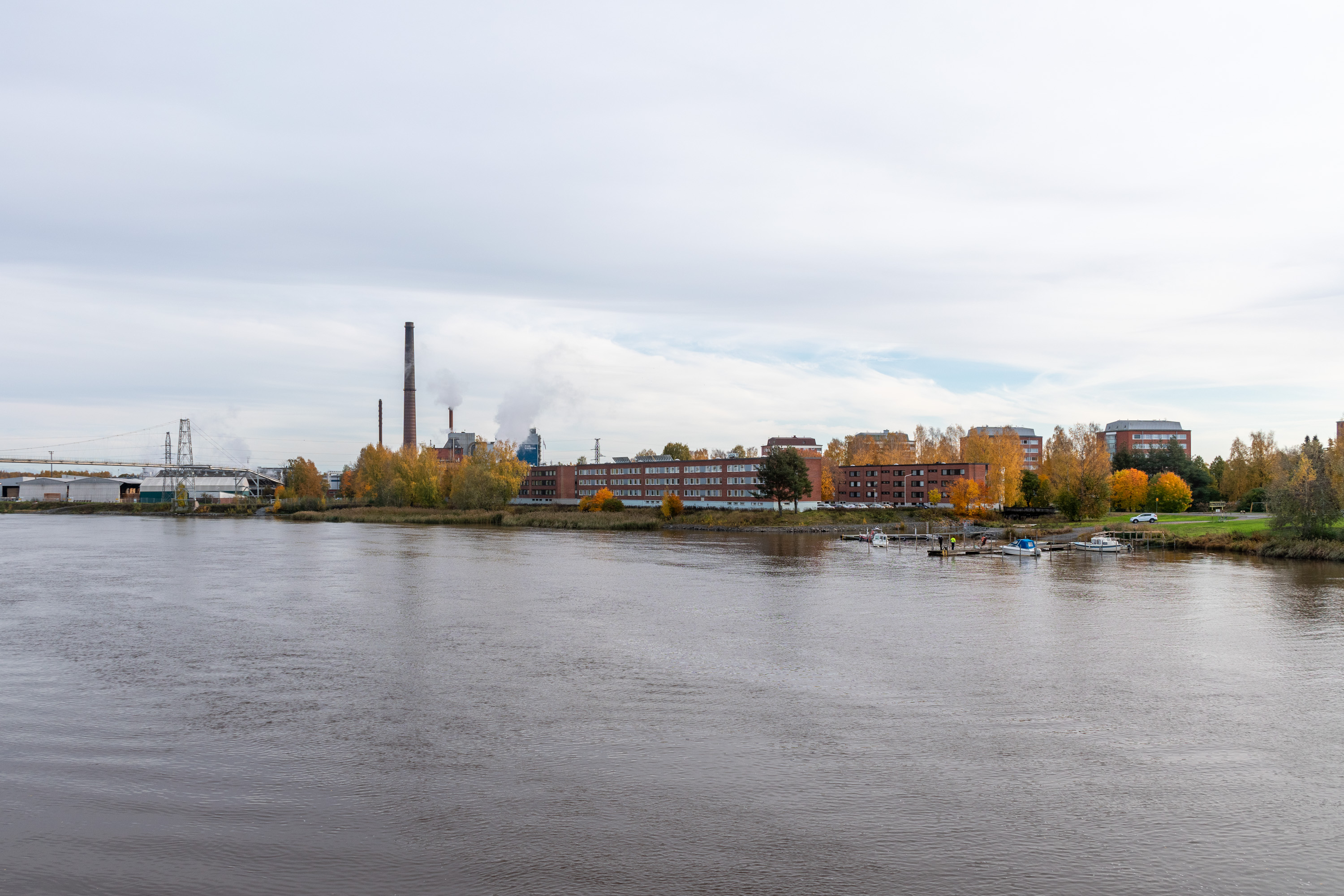 Трубы же на фото относятся к ТЭЦ Айтталуото — главному источнику центрального отопления для Пори. Жгут по нынешним временам, как обычно, опилки. Электрическая мощность всего 55 МВт. Слева виден мост теплотрассы на северный берег Кокемяэнйоки. ТЭЦ и лесопилка образуют ядро основной современной промзоны Пори, Айтталуото (Aittaluoto, фин. Сарайный риф). Справа виден небольшой жилой райончик между промзоной и центром.