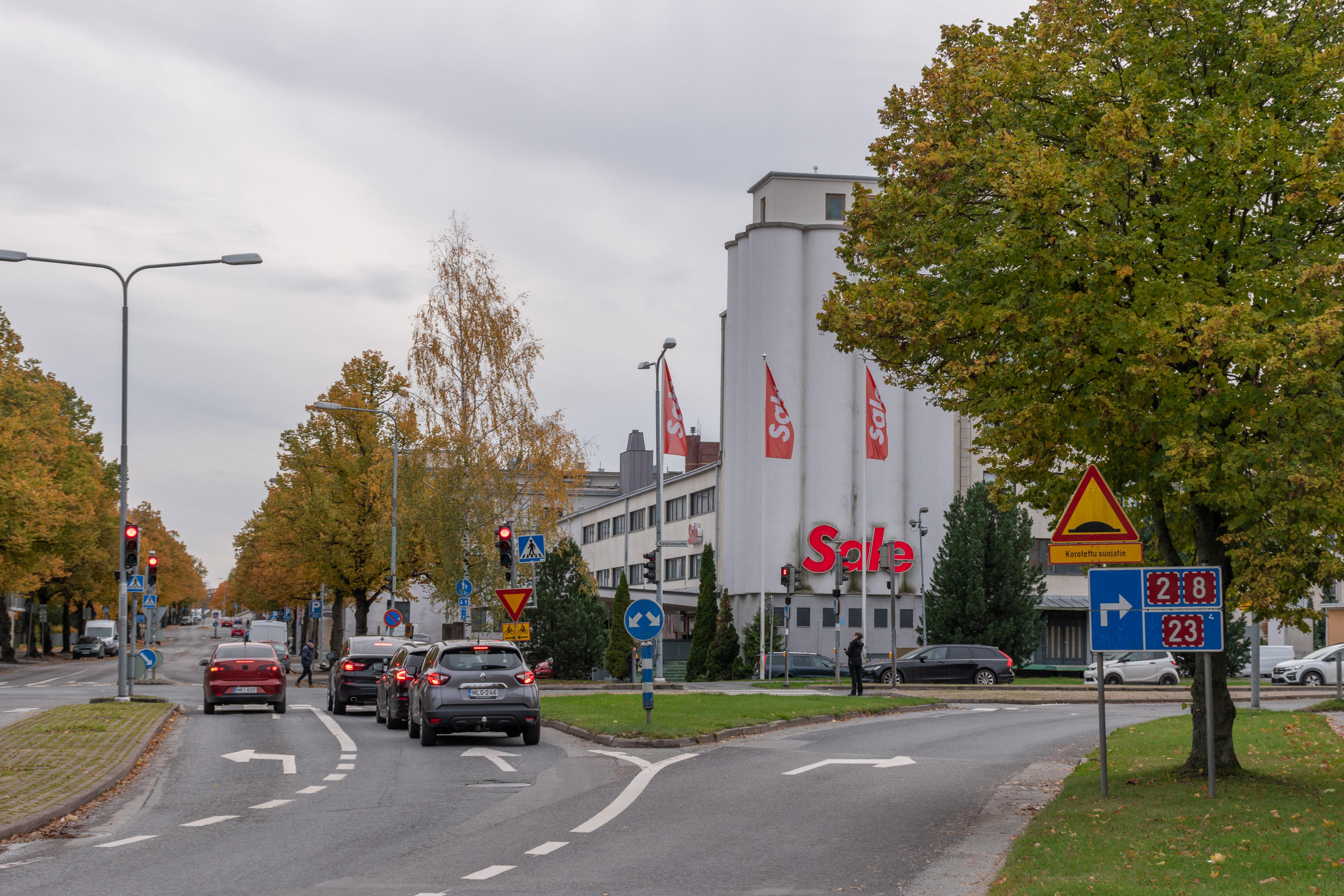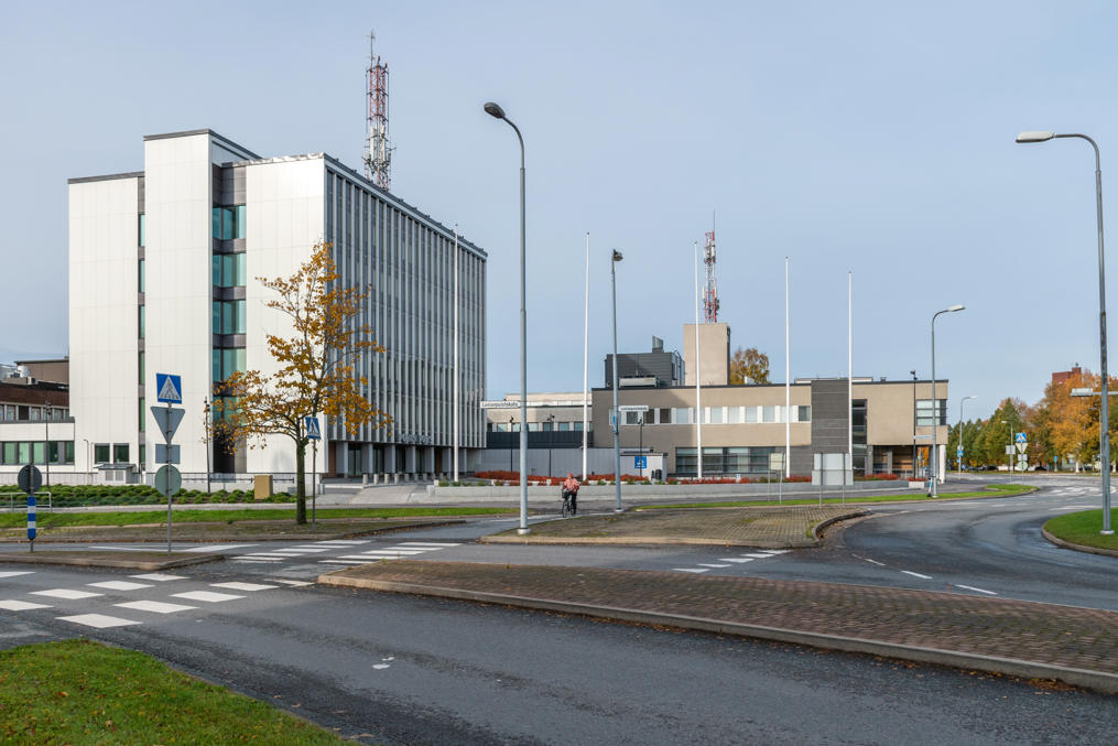 12. Полицейское управление у кругового движения на пересечении Сатакунтской улицы и Лувийского бульвара (Luvianpuistokatu).