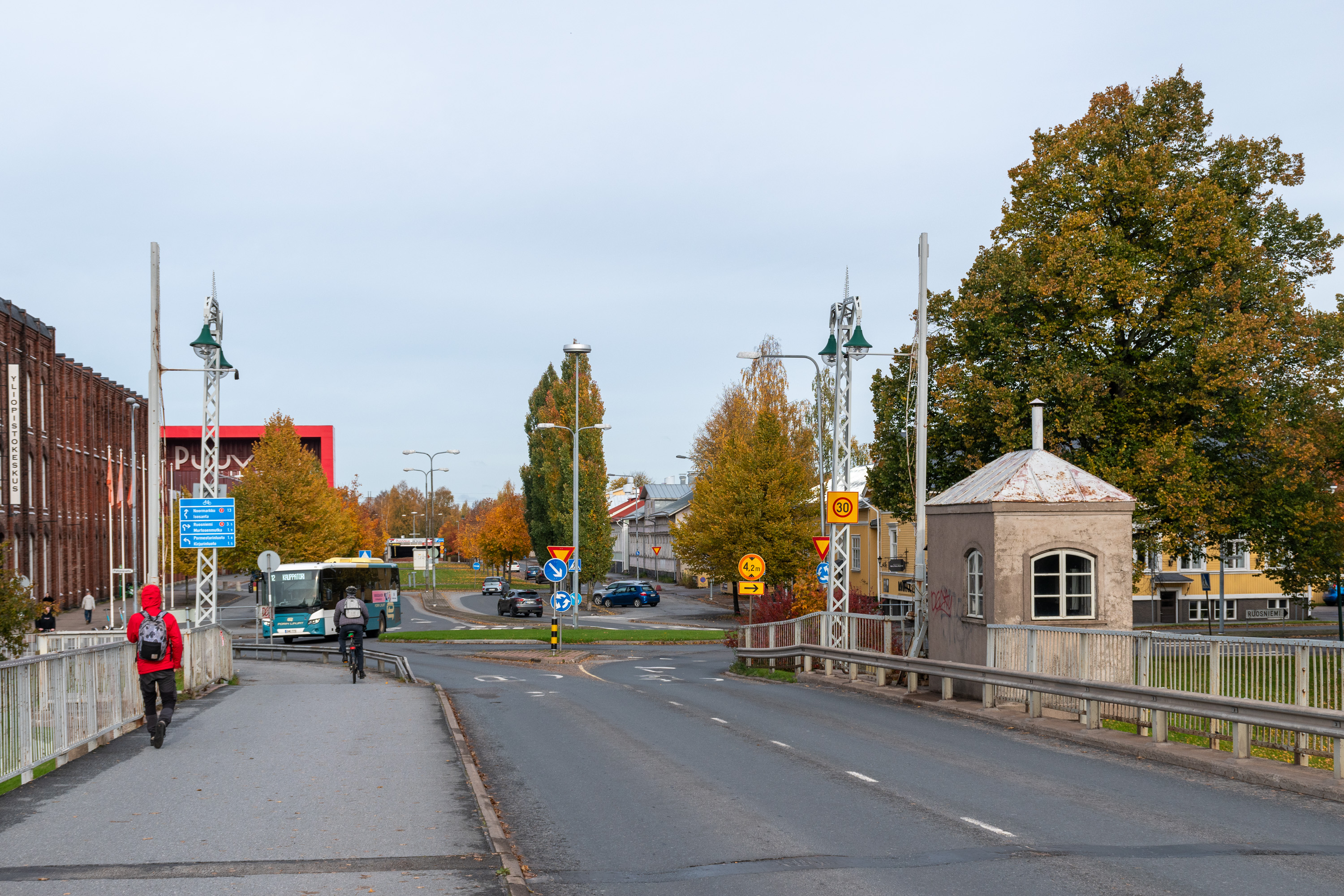 21. Заречный район Пори, напротив центра, зовется Исосанта (Isosanta, фин. Большие Пески). Это исторический заводской район города, хотя характерной краснокирпичной романтики здесь не так уж много. В район мы попадаем по Поринскому мосту из центра — справа сохранилась старенькая будочка управления разводным механизмом, демонтированным уже больше полвека как.