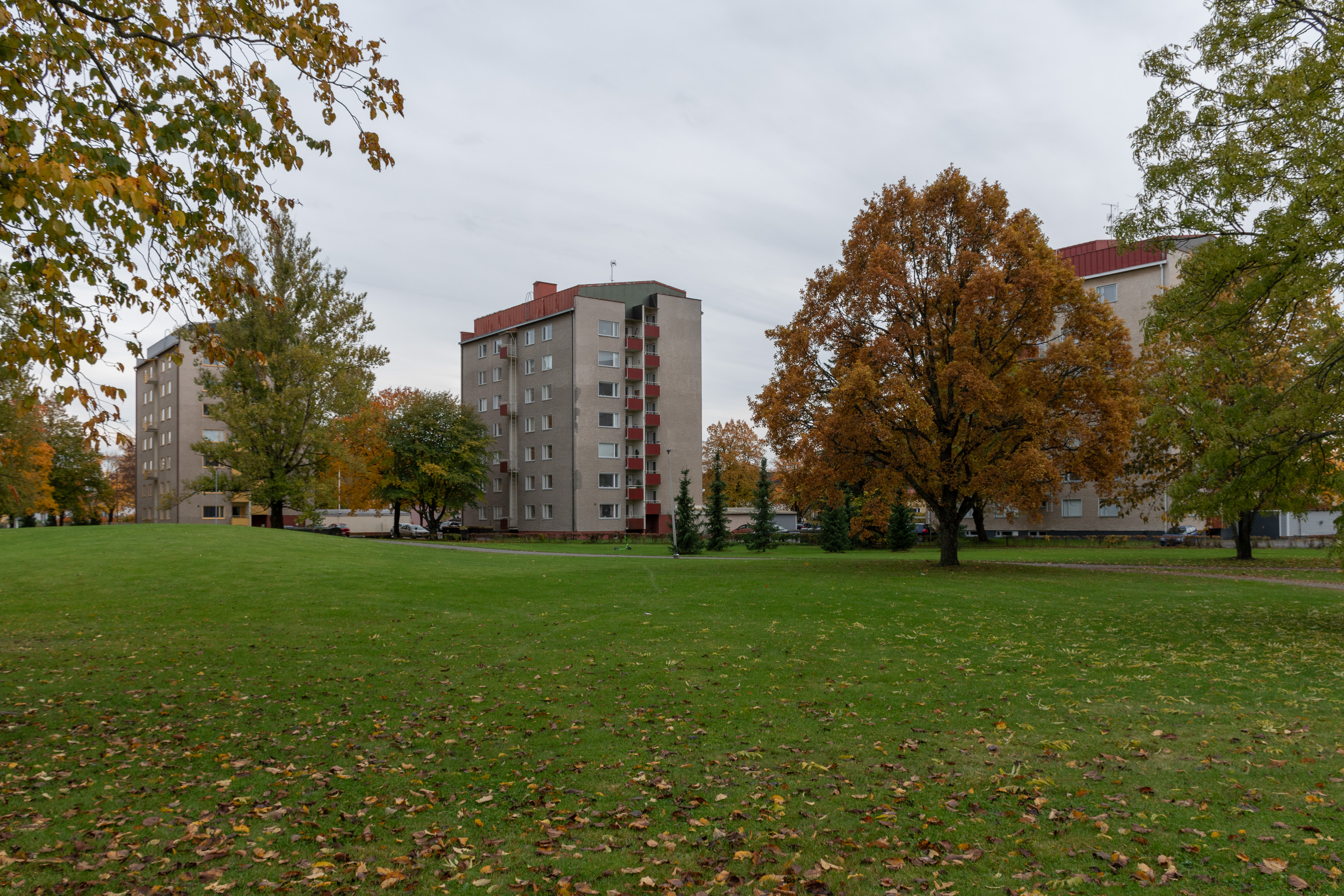 59. За Пяярняйненом, по другую сторону крупного бульвара Мира (Rauhanpuisto), располагается район Кяппяря (Käppärä). К югу от продолжающейся здесь на запад Шоссейной улицы он застроен в основном старыми многоэтажками, которые я вблизи не рассматривал.