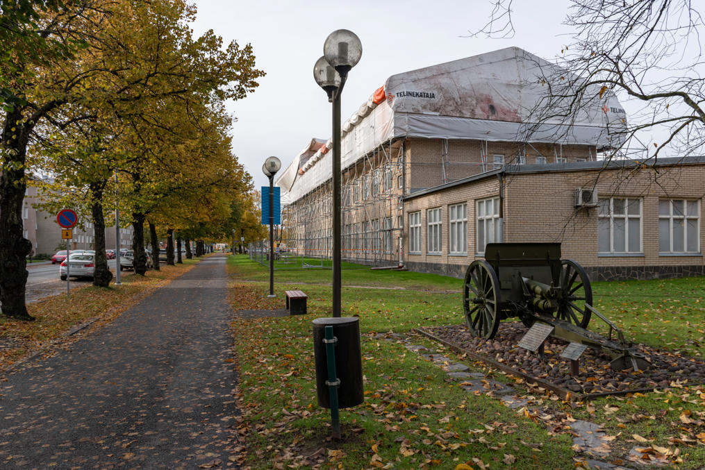 2. На этой улице стоит музыкальное образовательное учреждение — консерватория им. Пальмгрена (Palmgren-konservatorio), в честь упомянутого в прошлом посте местного композитора Селима Пальмгрена. В здании в войну работал госпиталь, и, вероятно, поэтому здесь есть пара воинских памятников.