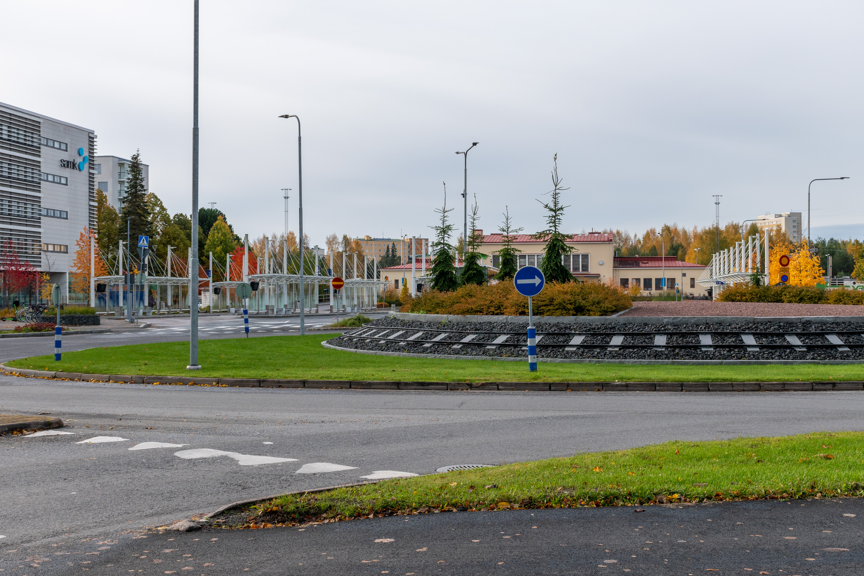 6. Круговое движение перед вокзалом и SAMK украшено декоративными "рельсами".