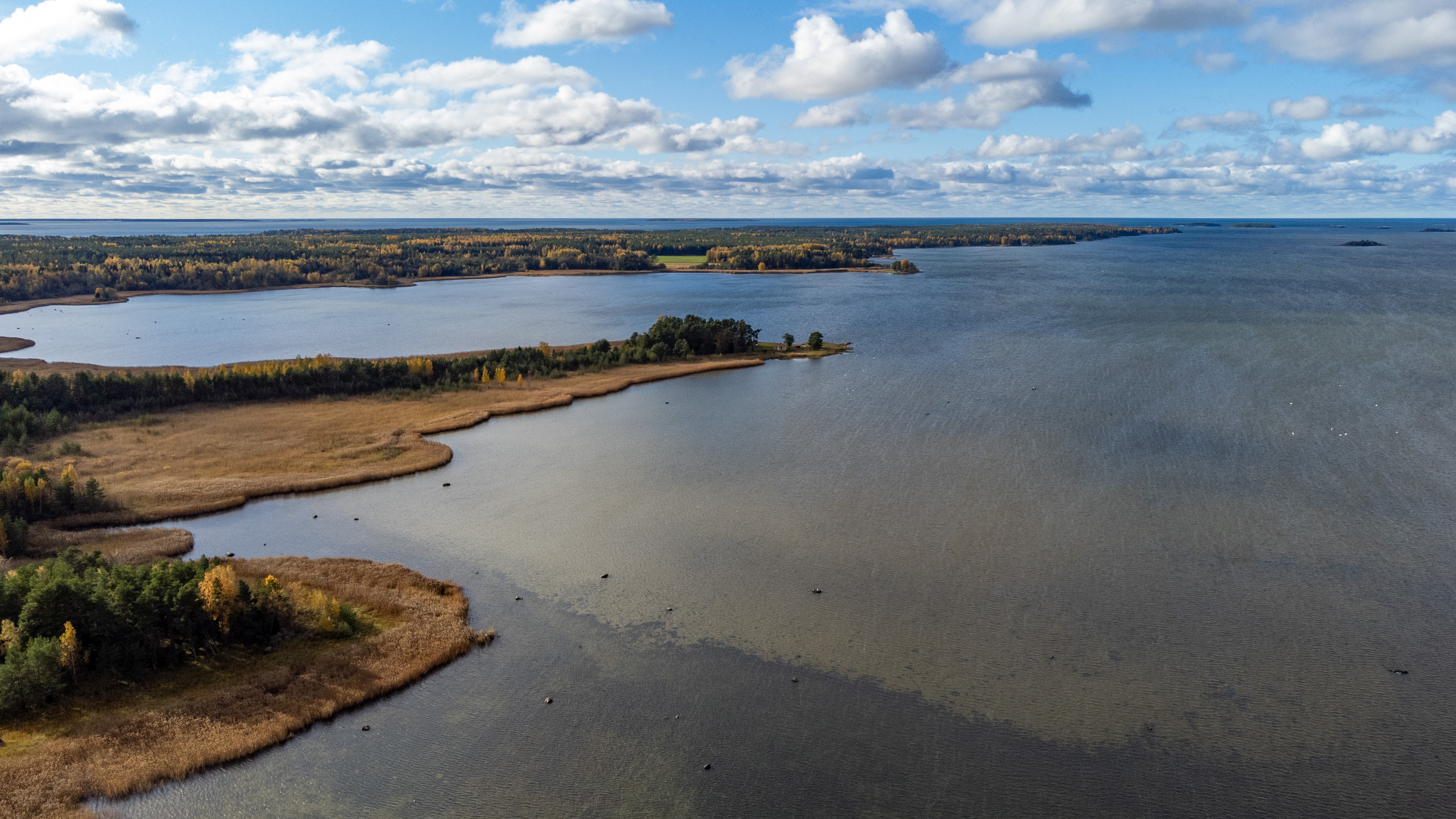 4. Ботнический залив с воздуха. На заднем плане полуостров Кууминайстенниеми (Kuuminaistenniemi). Название деревни Кууминайнен на полуострове пошло от шведского Кумнес, которое в свою очередь происходит от Кумо (Kumo, Kumo älv) — шведского названия реки Кокемяэнйоки.