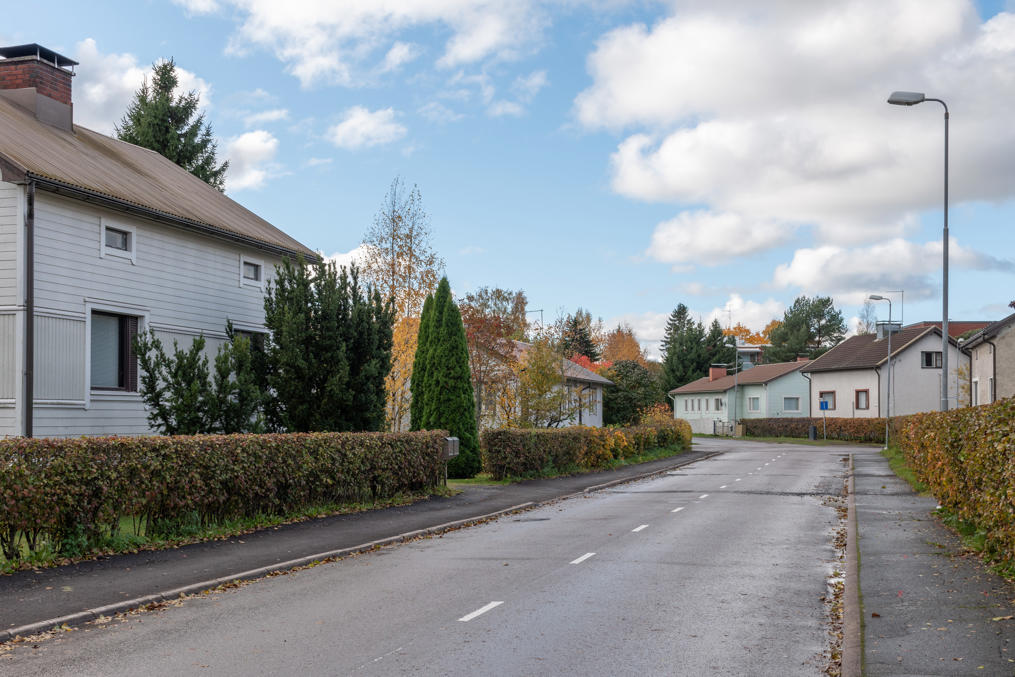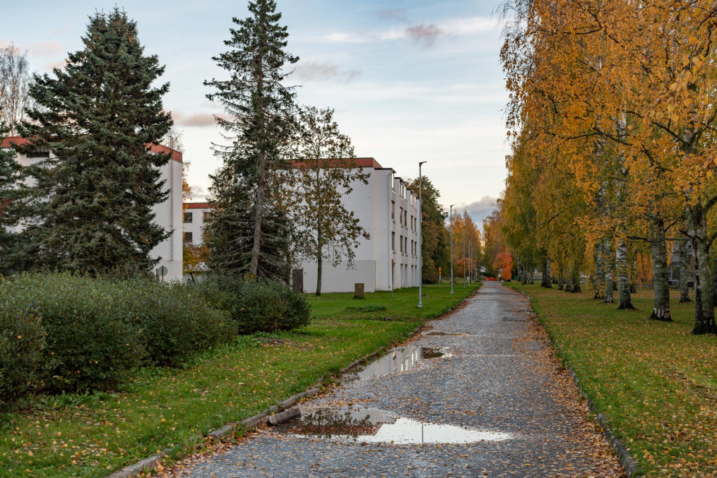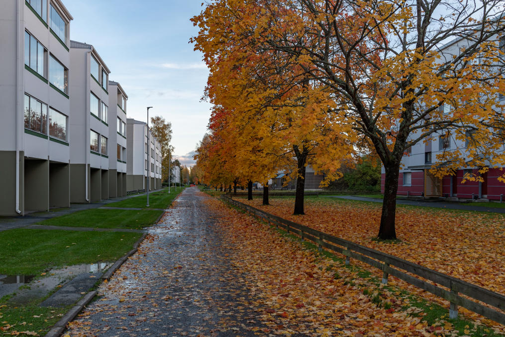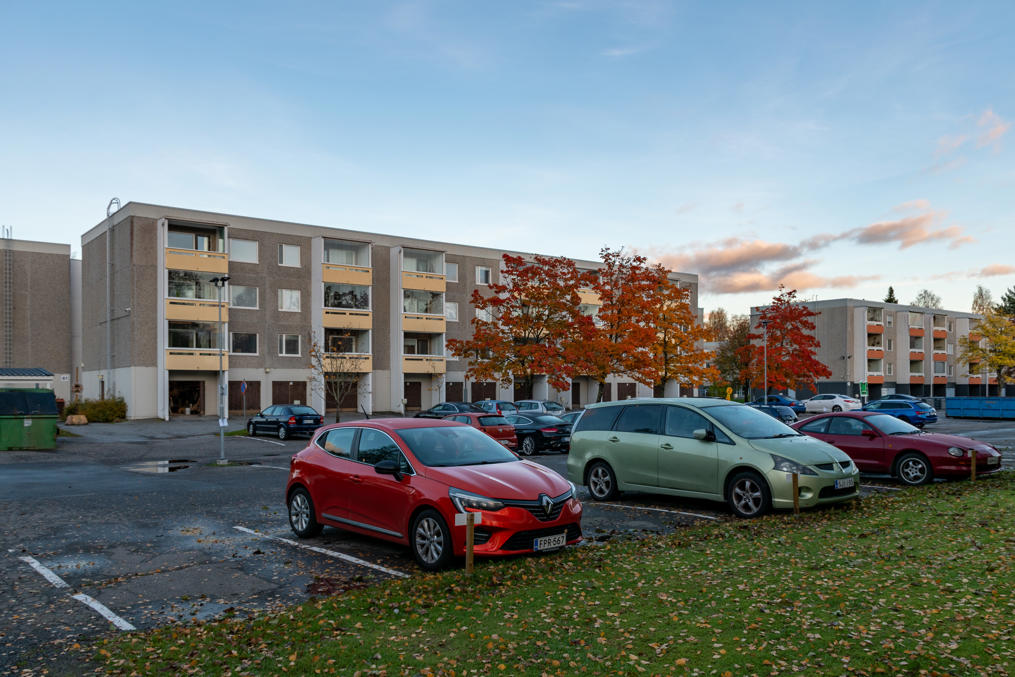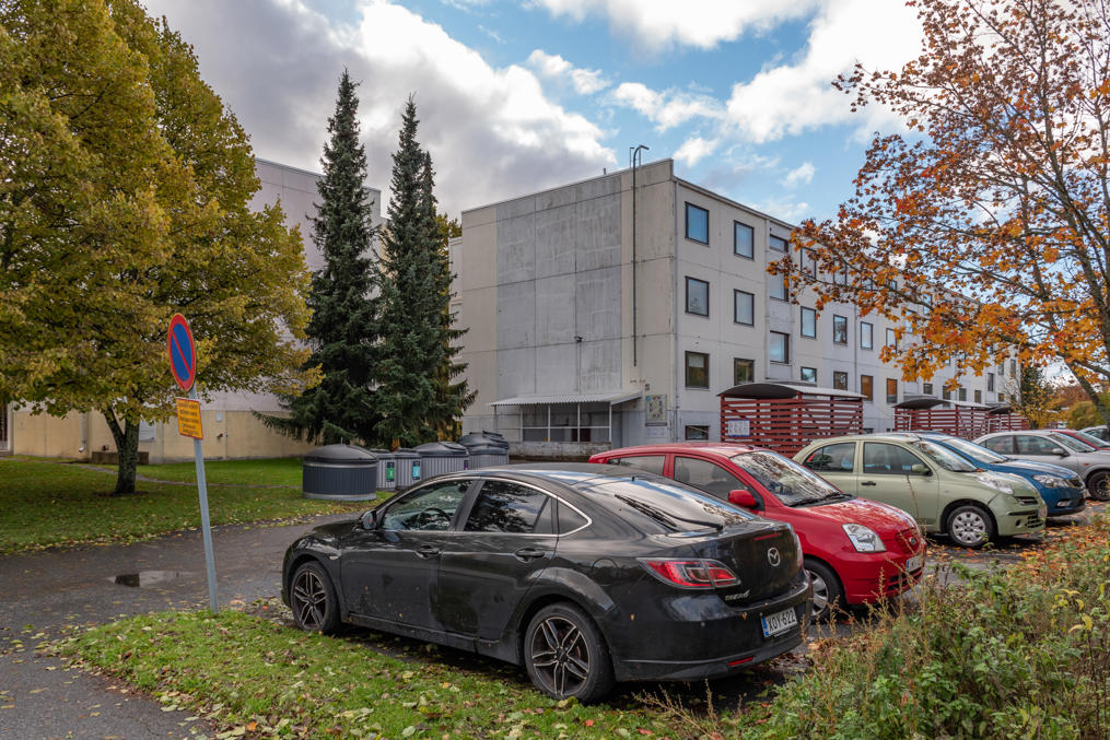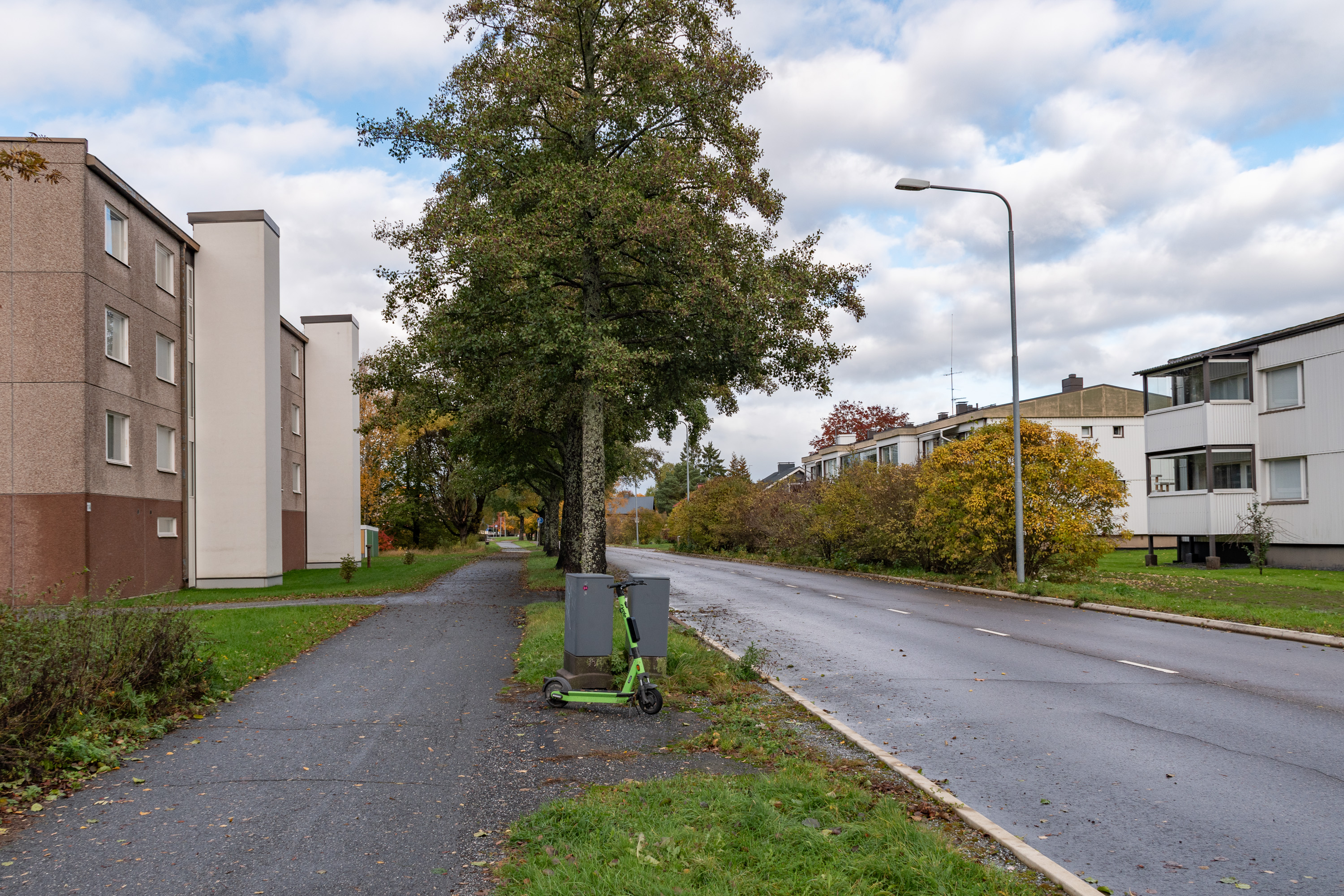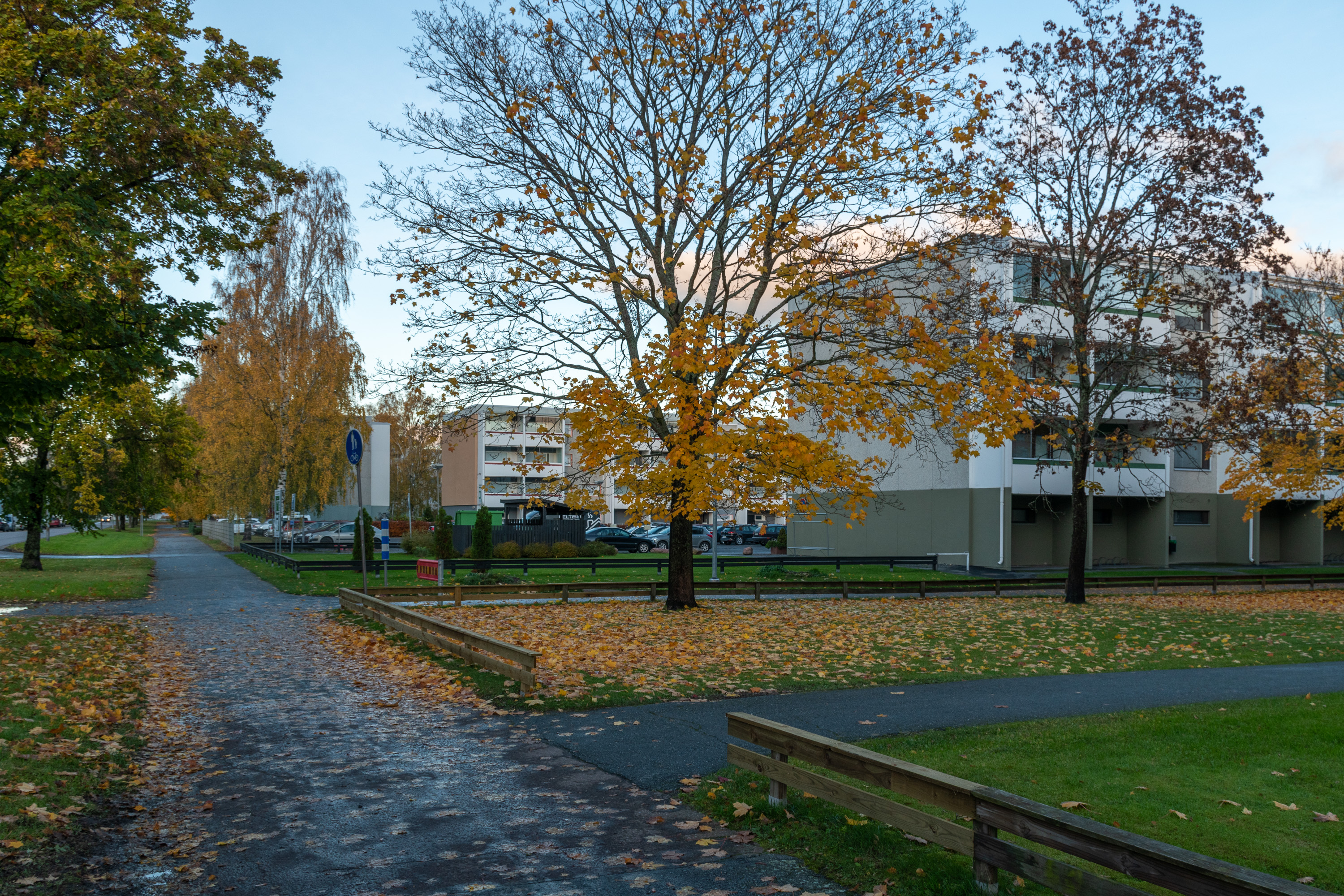 30. Люблю я такие районы; как уже, наверное, говорил, по моему мнению такие панельные спальники — лучшее многоэтажное жилье, что в принципе когда-либо в Финляндии строили. И прежде всего в том плане, что и просторно, и зелено, и парковки при этом нормальные есть. Строили только такие районы часто в совсем неудобных местах, это да, но в данном случае не насколько и плохо, прямая дорога до центра, 3.5 км.