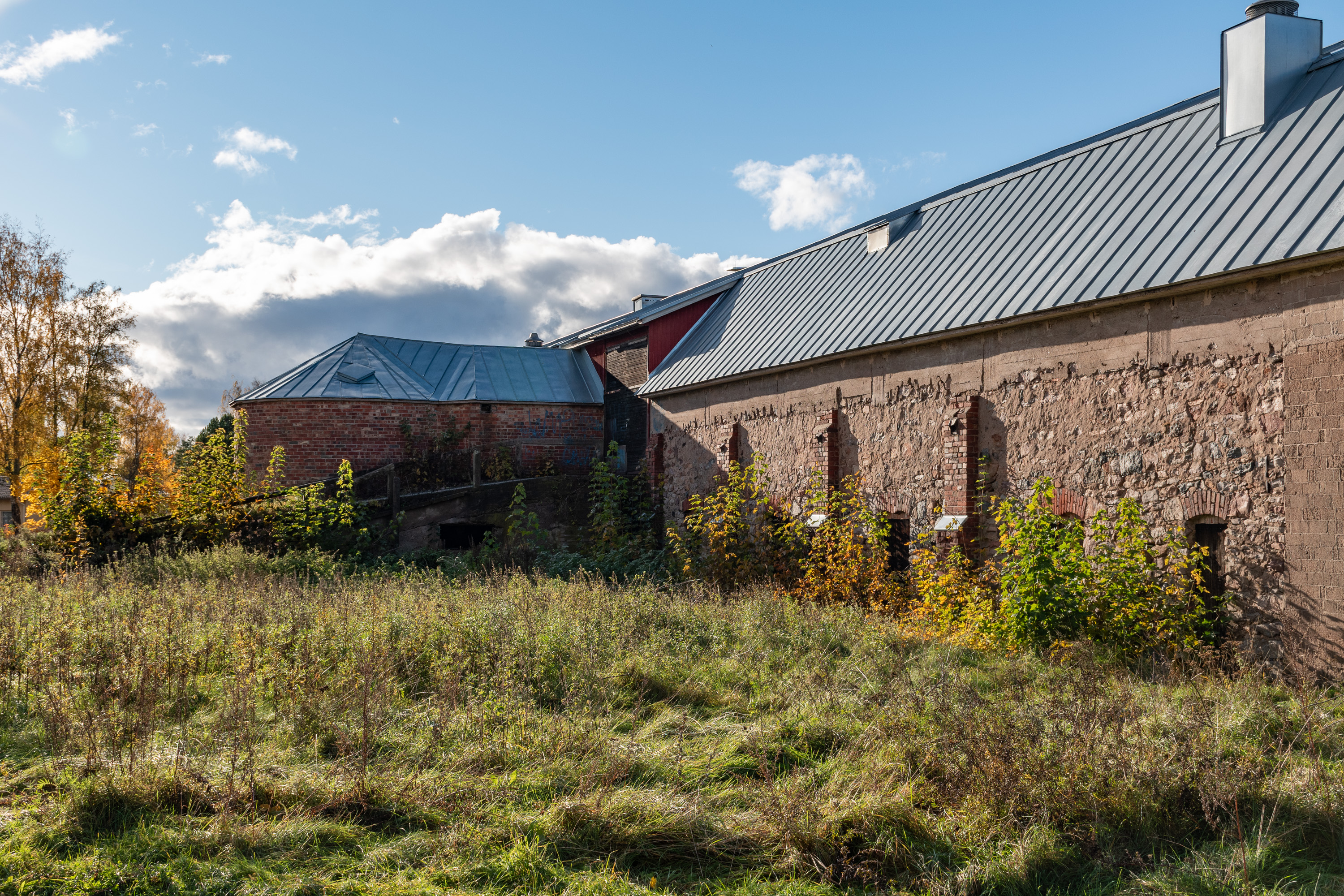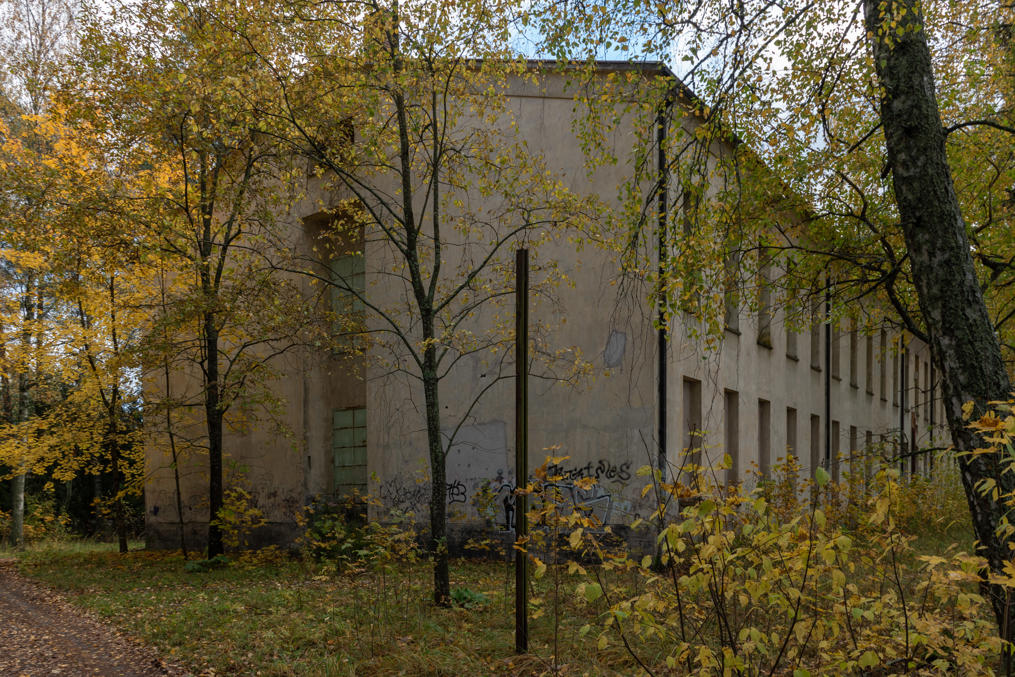 11. Прогуляться по этому району я решил, случайно заметив на карте пару мелких достопримечательностей, и одна из них — старый военный склад. Склад снаряжения был построен для Оборонительных сил в 1938 году, раньше тут рядом были также склады боеприпасов, огороженные земляными валами, но сейчас осталось только это здание. Более всего оно интересно тем, что в годы Войны-Продолжения, 1941-1944, здесь держали советских военнопленных немцы.