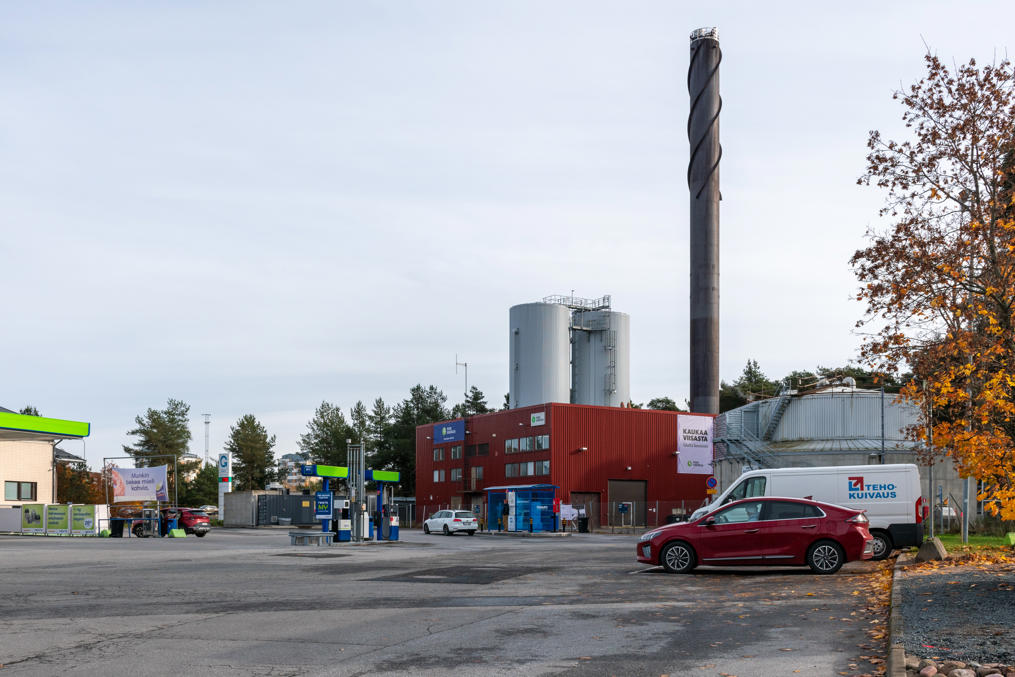 21. К югу от центра за вокзалом, между железной дорогой и аэропортом, находится маленький район Тиилимяки (Tiilimäki, фин. Кирпичный холм — когда-то тут был кирпичный заводик). На въезде в него нас встречает котельная, наверное, газовая, раз тут также рядом газозаправочная станция. Котельная служит также в летний период для центрального охлаждения, и в 2022 здесь соорудили какое-то хранилище тепловой энергии, которое тоже используется как для отопления, так и для охлаждения.