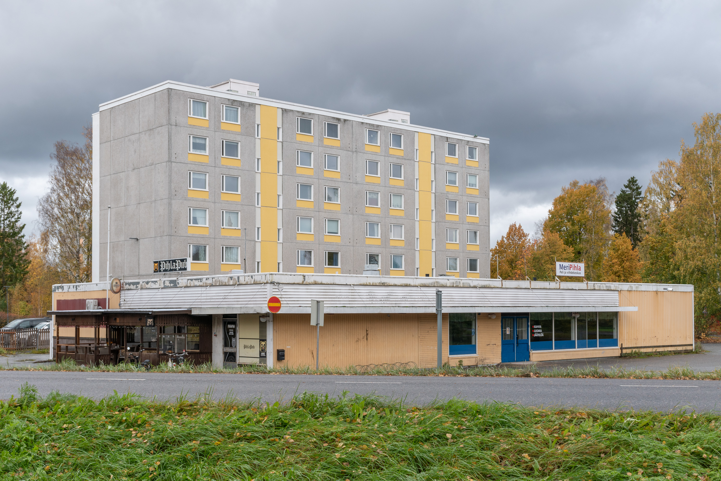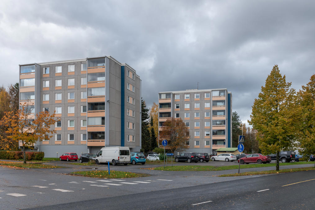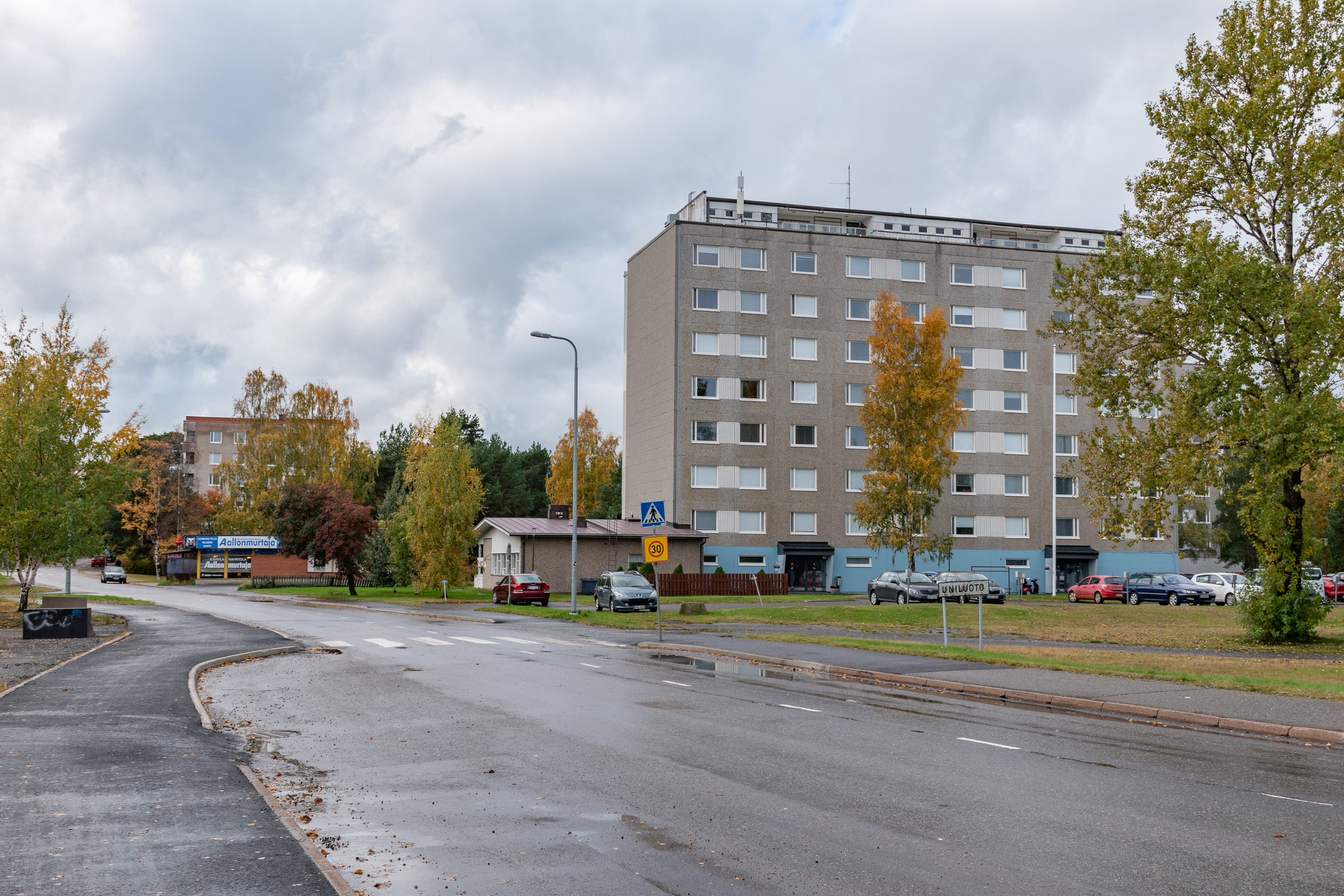 35. Больше выделяется, как и на Унилуото, тоже группа — с десяток — немолодых многоэтажек. Скорее всего, дома строились не только для рабочих лесопилки, но и для упоминавшегося выше завода диоксида титана — хотя он находился западнее, и в примыкающем к нему поселке, Каанаа, тоже пара кварталов многоэтажек была.