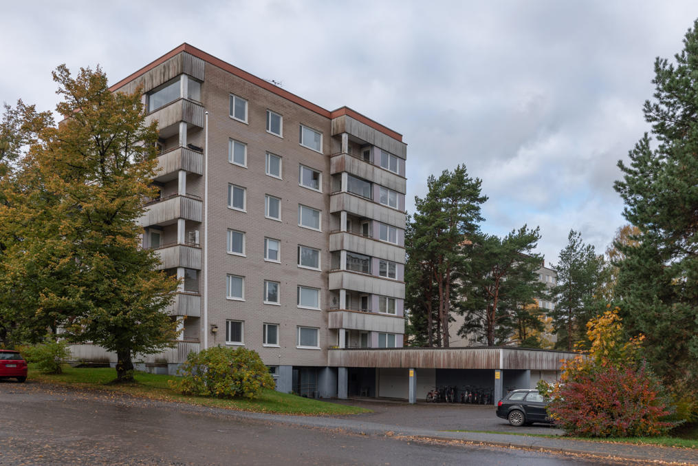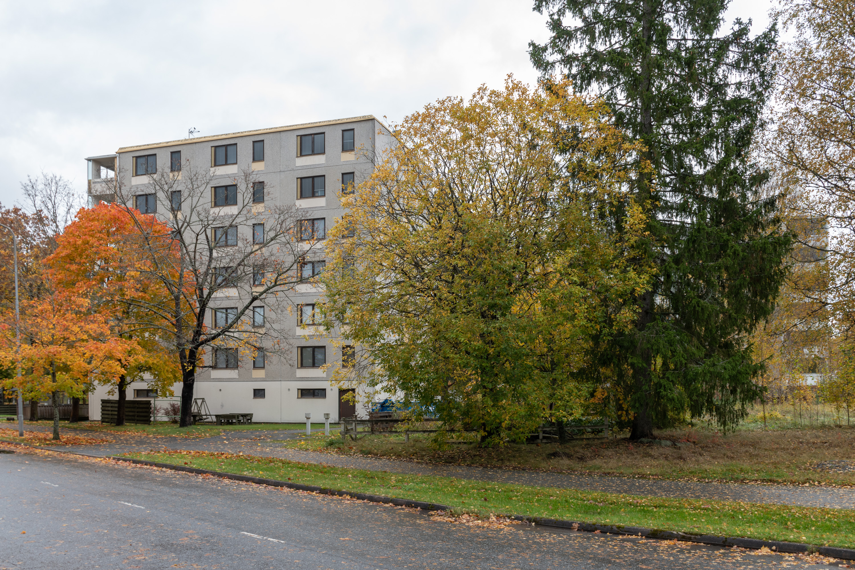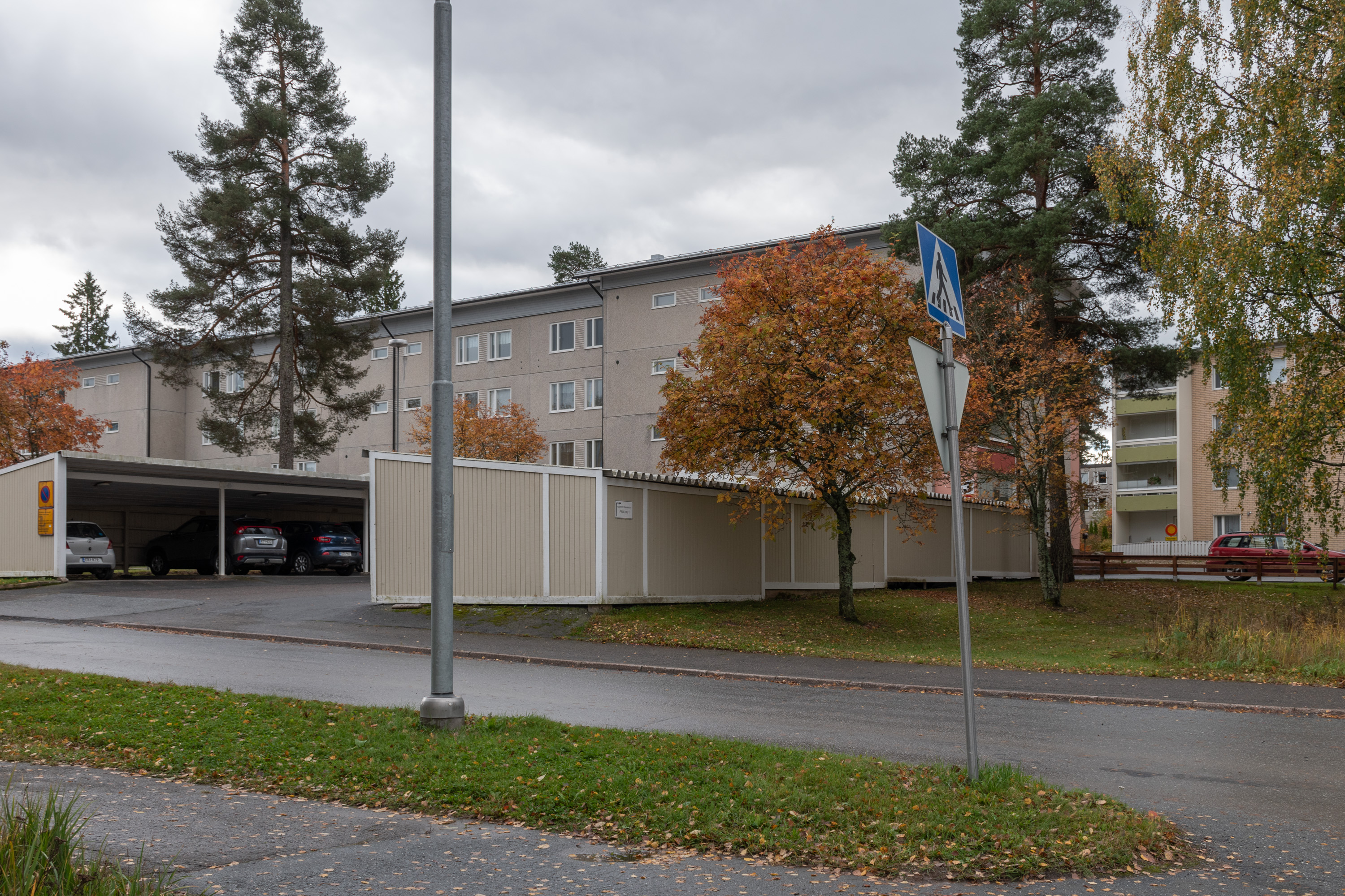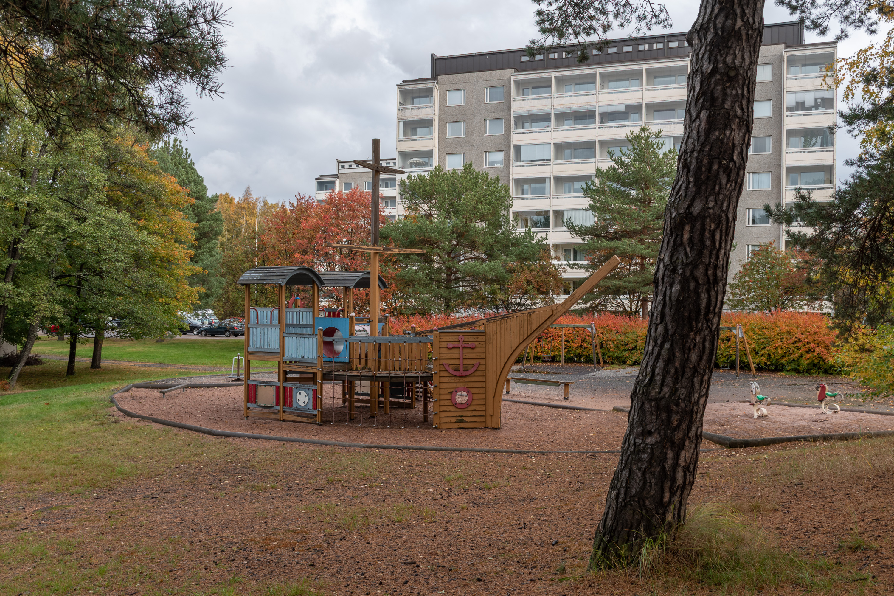 35. Больше выделяется, как и на Унилуото, тоже группа — с десяток — немолодых многоэтажек. Скорее всего, дома строились не только для рабочих лесопилки, но и для упоминавшегося выше завода диоксида титана — хотя он находился западнее, и в примыкающем к нему поселке, Каанаа, тоже пара кварталов многоэтажек была.