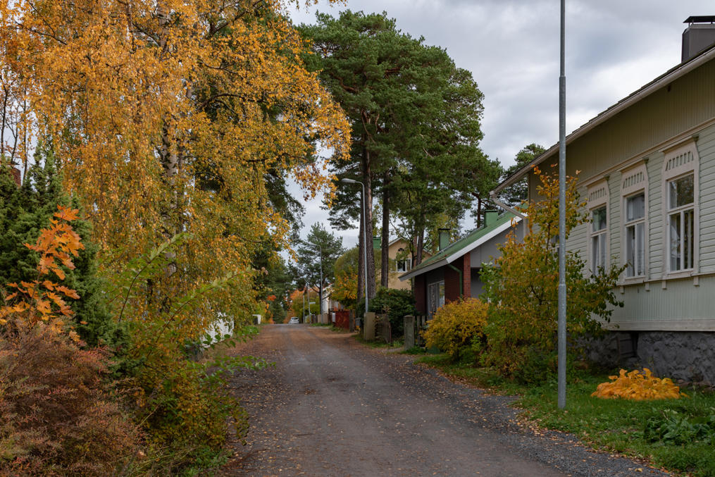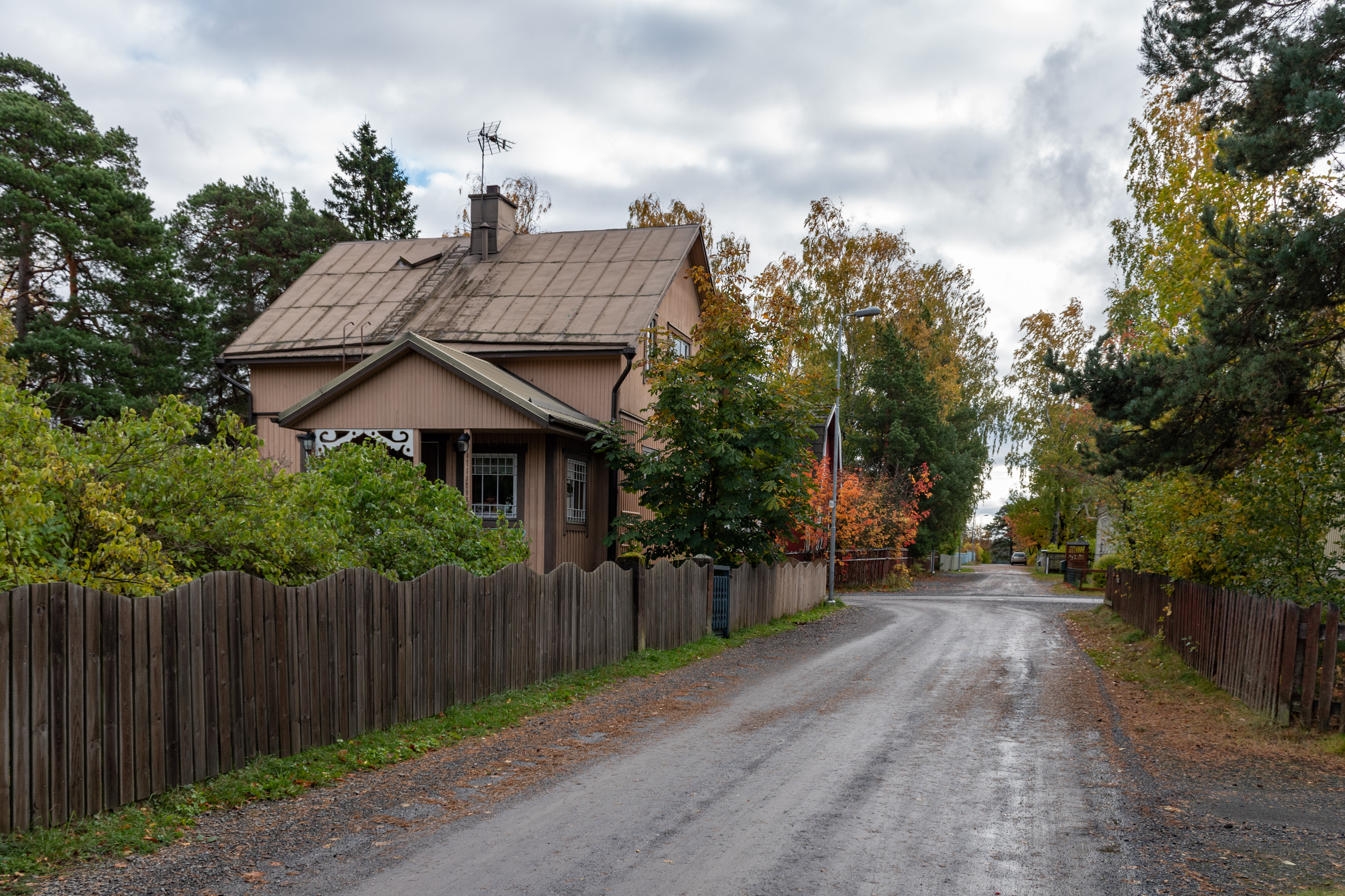 Улица — главная улица поселка — как видно из таблички, зовется улицей Гарри Гуллихсена (Harry Gullichsen, 1902-1954), управляющего заводов Альстрёма с 1931 года, известного мецената; Гуллихсен женился на одной из наследниц Альстрёмов, Майре, умершей лишь в 1990, и вместе они заказали много известных работ архитектора Алвара Аалто в Ноормаркку, Эуре, Котке, а также основали с Алваром и Айно Аалто известное дизайнерское бюро Artek.
