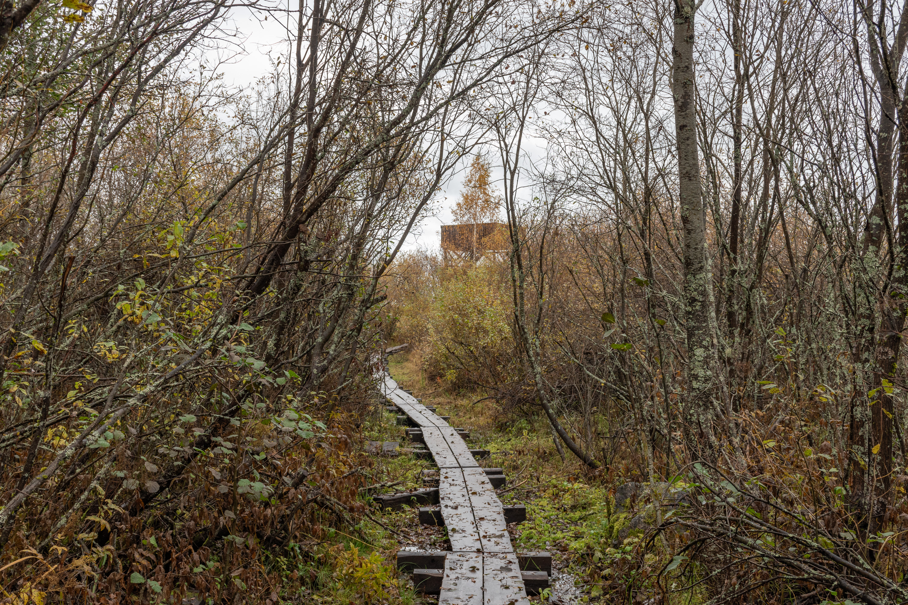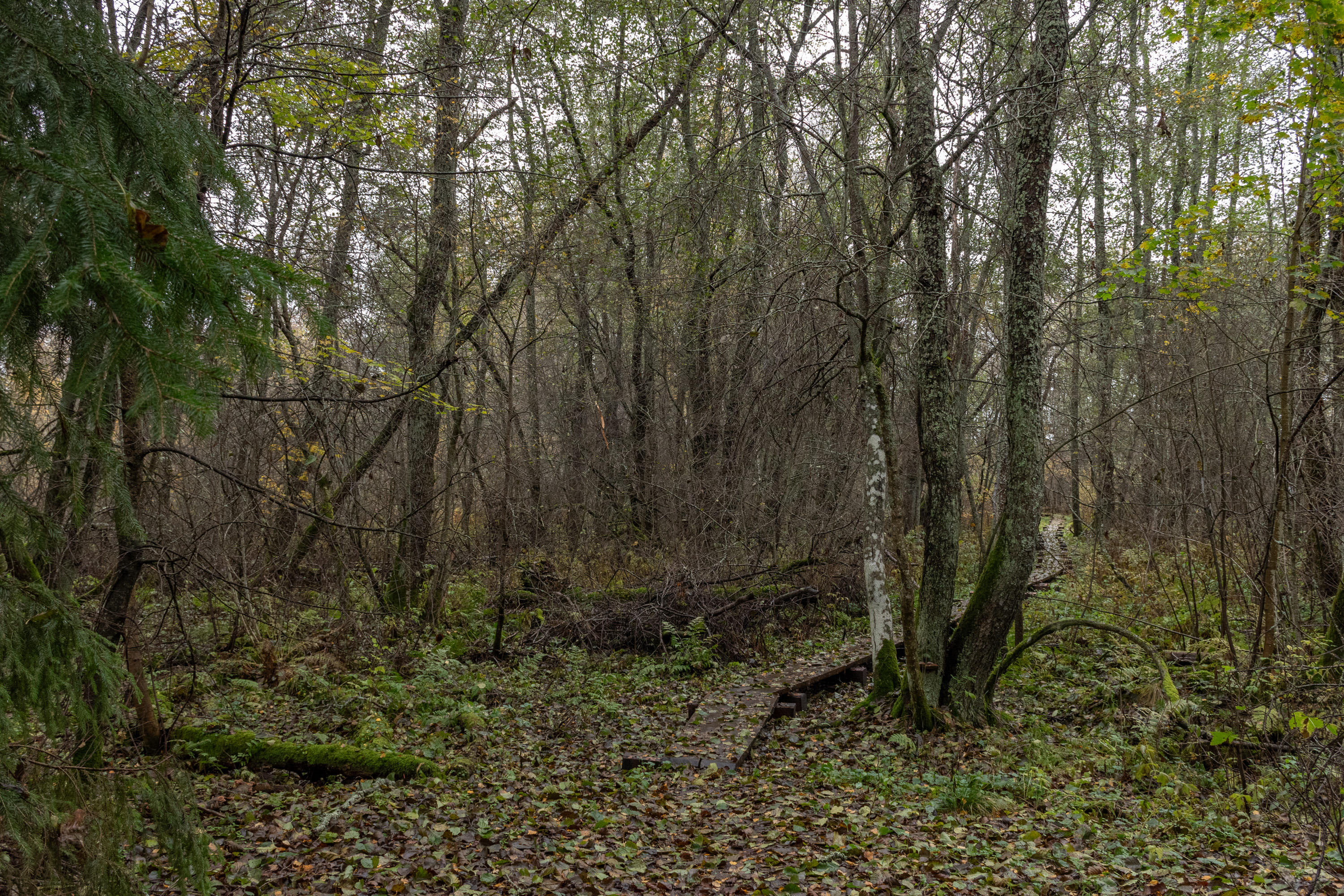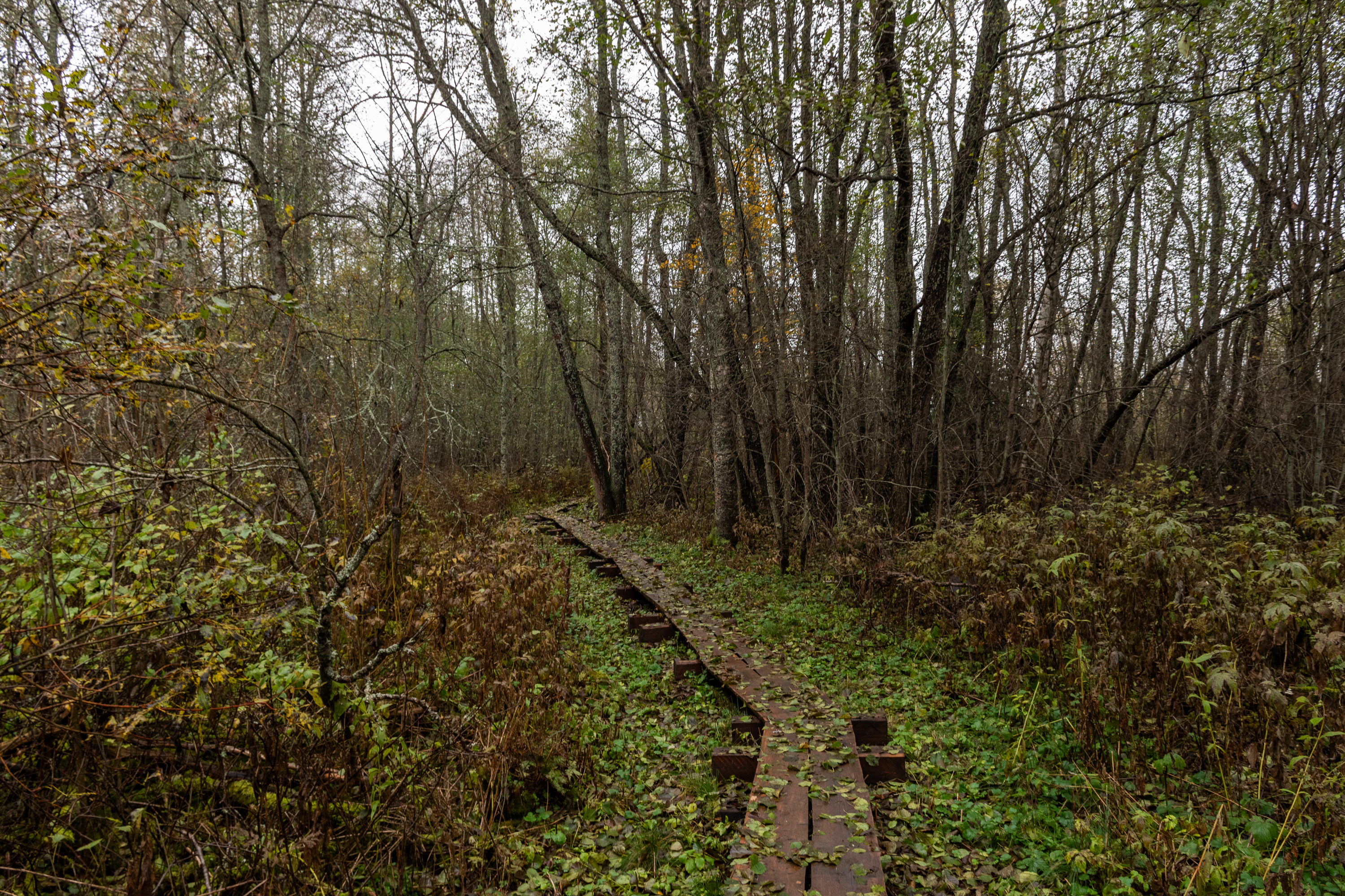 43. Тропа довольно короткая, но весьма атмосферно выглядящая. Летом, наверное, тут совсем заросли, а сыроватым октябрьским днем можно было в грязи утонуть, ступив в сторону с мостков.