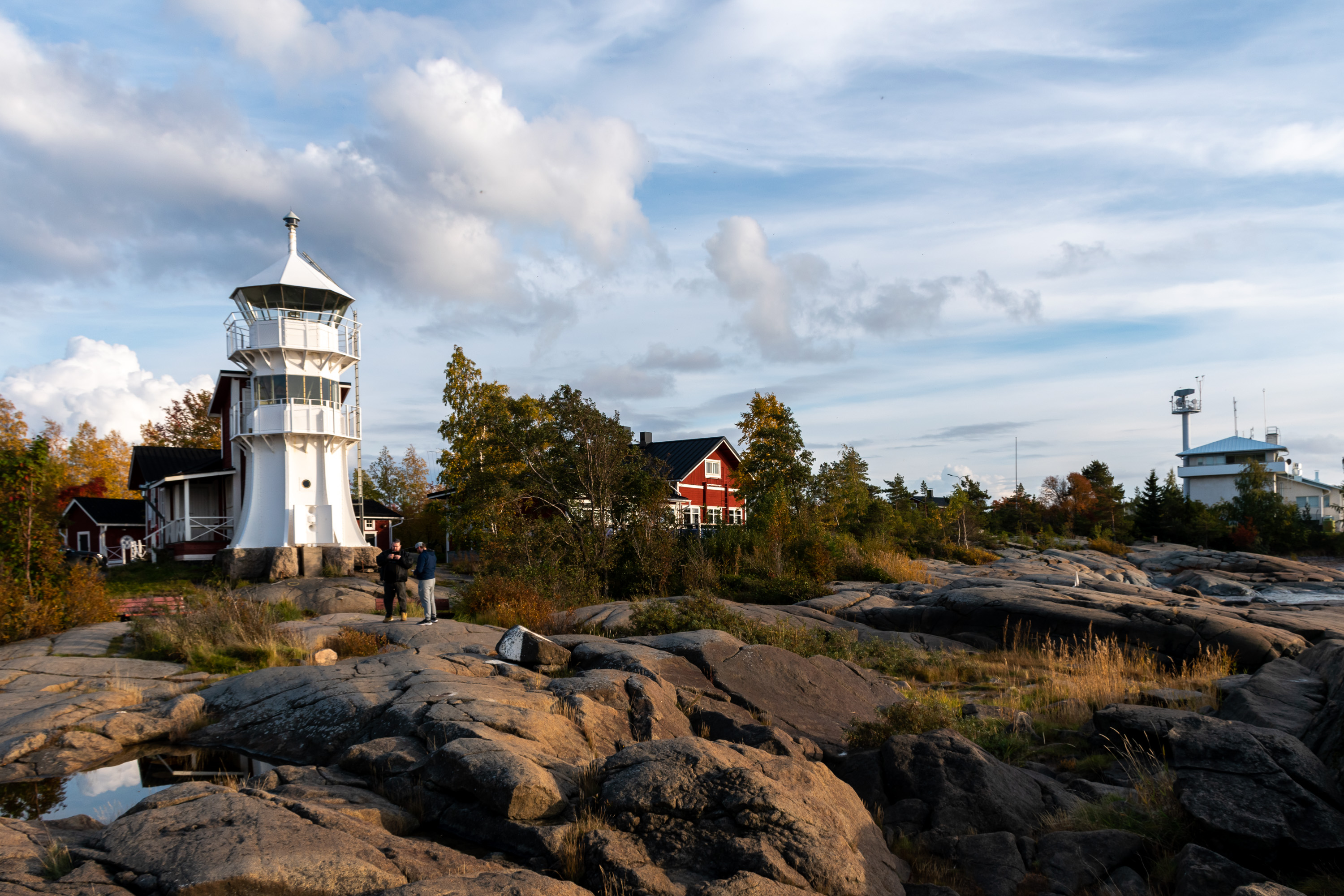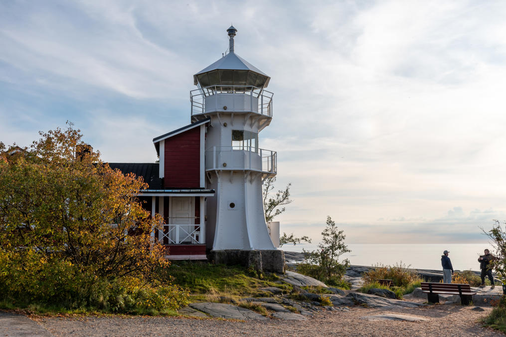 28. Маяк, вместо с примыкающим к нему бывшим домиком смотрителя, построен в 1903 архитектором Густавом Нюстремом (Gustaf Nyström, 1856-1917), известным хельсинкским архитектором, который в основном в самом Хельсинки много чего и построил, но также, например, в Выборге здание Банка Финляндии. До этого предыдущий небольшой маяк здесь действовал с 1885. Маяк был оборудован ревуном — туманной сиреной — видны отверстия в нижней части стены; до ремонта (маяк отремонтирован несколько лет назад) тут вроде бы было более массивное устройство, наверное, большую часть ревуна сняли; такие ревуны, небось, сейчас и не нужны больше.