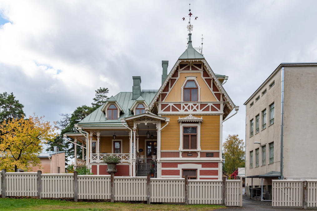 20. А самый роскошный дом стоит в начале этих кварталов — вилла капитана и судовладельца Оскара Хейне (Oscar Heine, 1854-1911), 1901. Он был в свое время одним из самых крупных судовладельцев в Пори — в самом центре города он себе построил также каменный особняк, который я показывал в первом посте про Пори.
