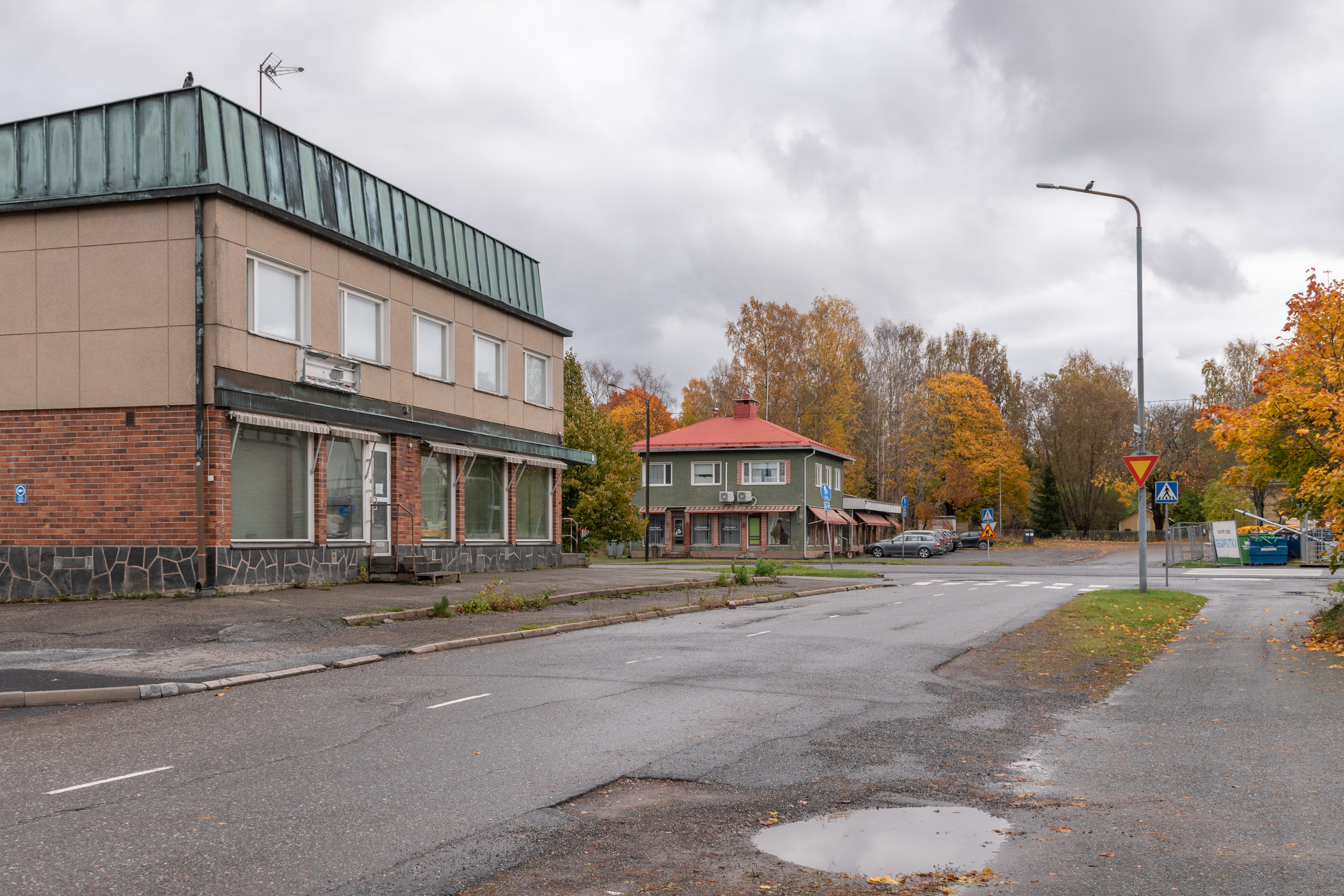 40. Бывшие банковские конторы легко опознаются по ящичкам ночных депозитариев (yösäilö) — не уверен, правильный ли это термин на русском — ящички, через которые можно вносить наличные средства на счет вне часов работы банка. Такие вроде бы могут использоваться и в наши дни, компаниями, которые в конце рабочего дня таким образом кладут на счет наличку из кассы (конечно, заключив на такую услугу предварительно договор); не знаю, может, в прошлом и простыми людьми могло использоваться. Тут, судя по сохранившейся на дверях надписи, после банка еще была больничная касса Пихлавских заводов — есть такая форма касс взаимопомощи на крупных предприятиях, тоже до сих пор существует.