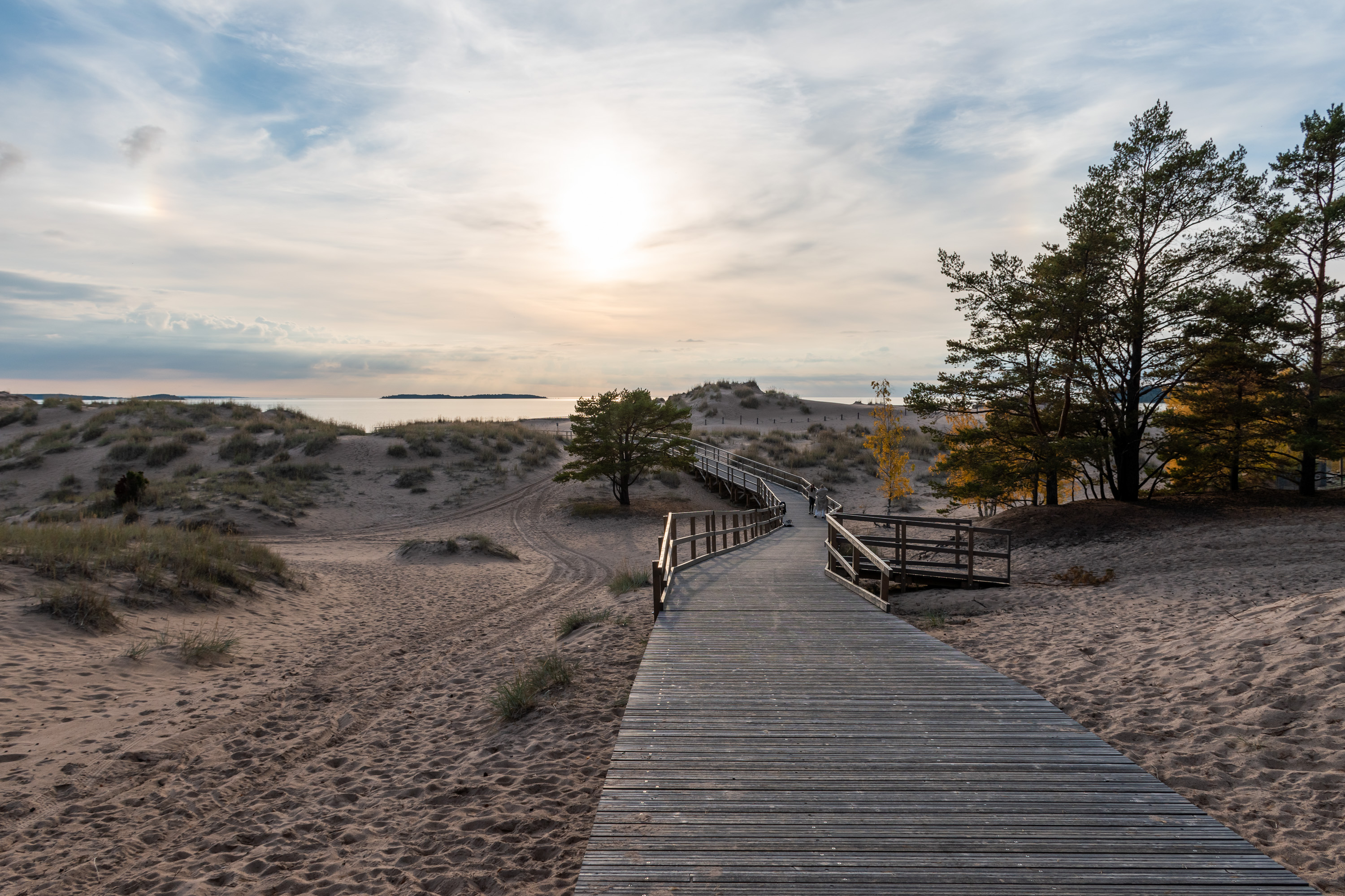 2. Название Yyteri, как и значительная часть другой топонимики побережья Ботнического залива вокруг Пори, имеет шведское происхождение, несмотря на то, что шведской колонизации эти места никогда не подвергались, — банально от Ytterö, "Внешний остров". Внутренний остров Inderö тоже был, но это название не укоренилось, сейчас это место соответствует деревне Кюлясаари (Kyläsaari), "Деревенский остров". Как минимум еще в 17 веке это действительно были два отдельных острова; Мери-Пори как цельный полуостров сформировался лет 200-300 назад за счет послеледникового подъема земной коры, продолжающегося со скоростью несколько миллиметров в год по сей день. Земли Юютери долго принадлежали одноименному поместью, которым в 20 веке владела семья фабрикантов Розенлевов (о них я упоминал в постах о городе Пори); оно остается в частном владении и сейчас (и находится довольно далеко от пляжа), его я не снимал. А дюнам Юютери, таким образом, лет 300-400, и они достигают высоты 7 м.