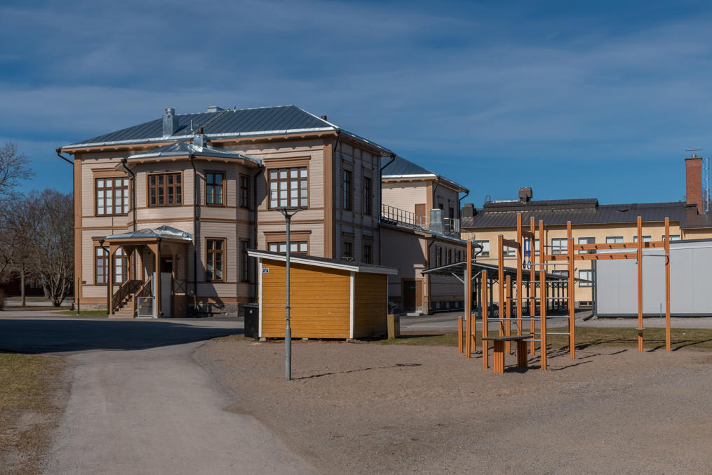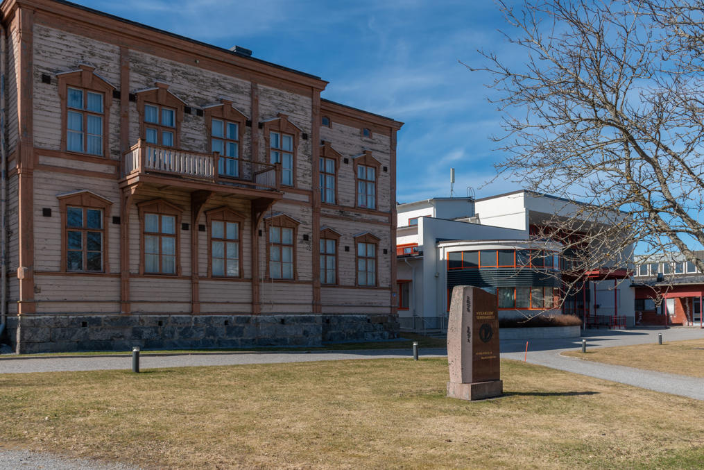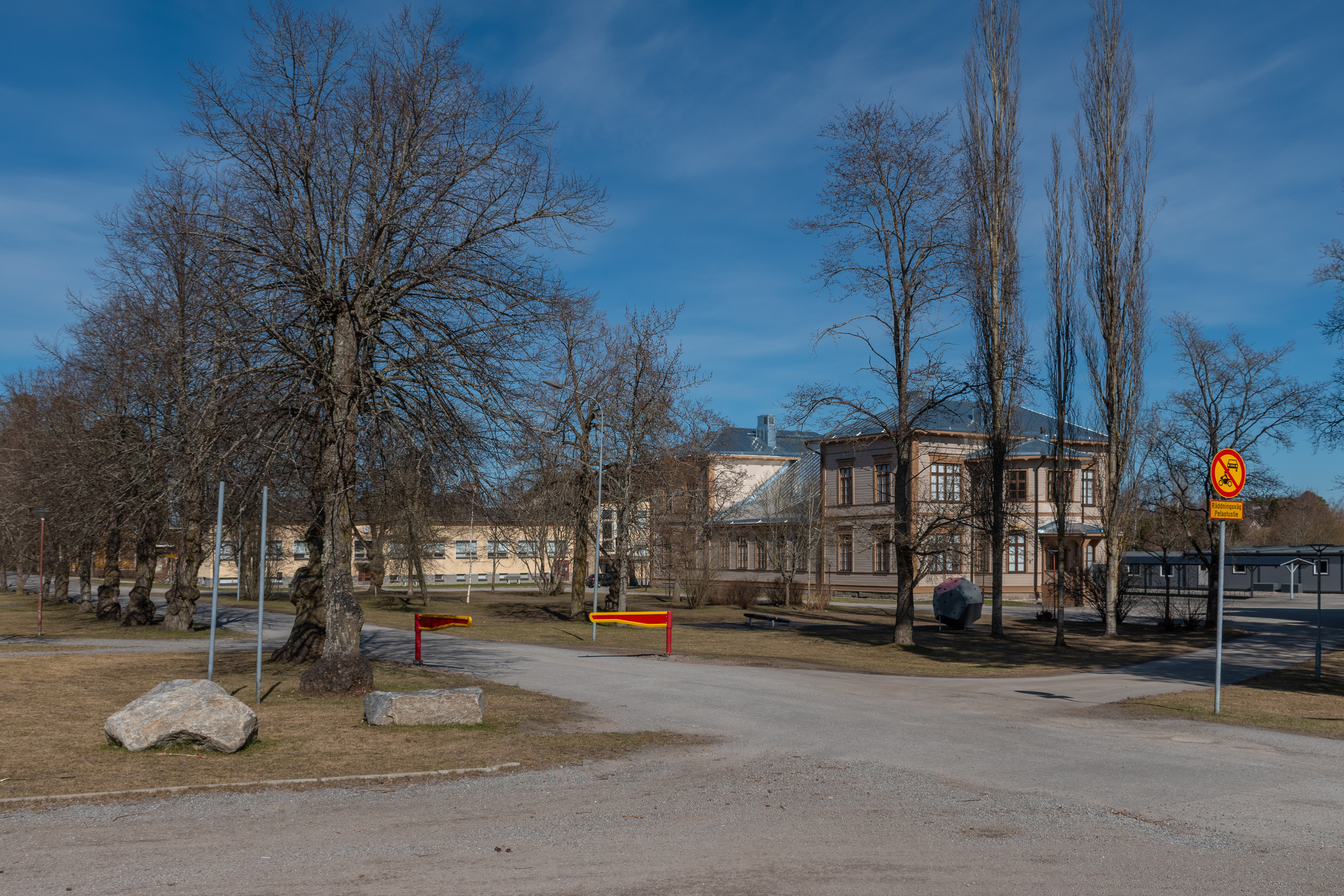 44. Самое примечательное тут — находящийся напротив ГЭС комплекс зданий бывшей семинарии (которой тут же стоит памятник). Напомнило похожий комплекс в Раахе. Не знаю, насколько используются старые деревянные здания; на первом фото справа видно современное здание упоминавшейся уже школы Закариуса, ныне главной школы города; на третьем на заднем плане видно низкое оранжевое здание гимназии Топелиуса; а насколько школа и гимназия используют старые здания семинарии — не очень понятно. Гимназия (gymnasium) в Финляндии в наши дни то же самое, что лицей (lukio), только лицей финскоязычный, а гимназия шведоязычная, а так и то и то — отдельная школа для старшеклассников, где занимаются подготовкой к университету, и вместо которой можно пойти в ПТУ.