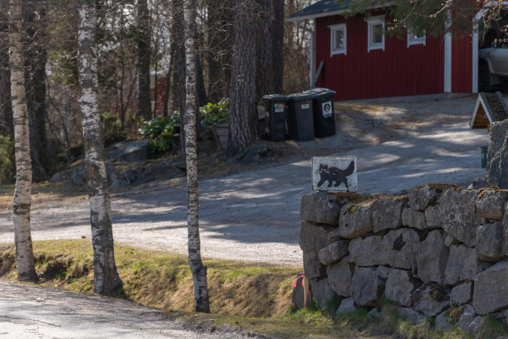 52. Жители дома у дороги, видимо, беспокоятся, чтобы их котика случайно не задавили.