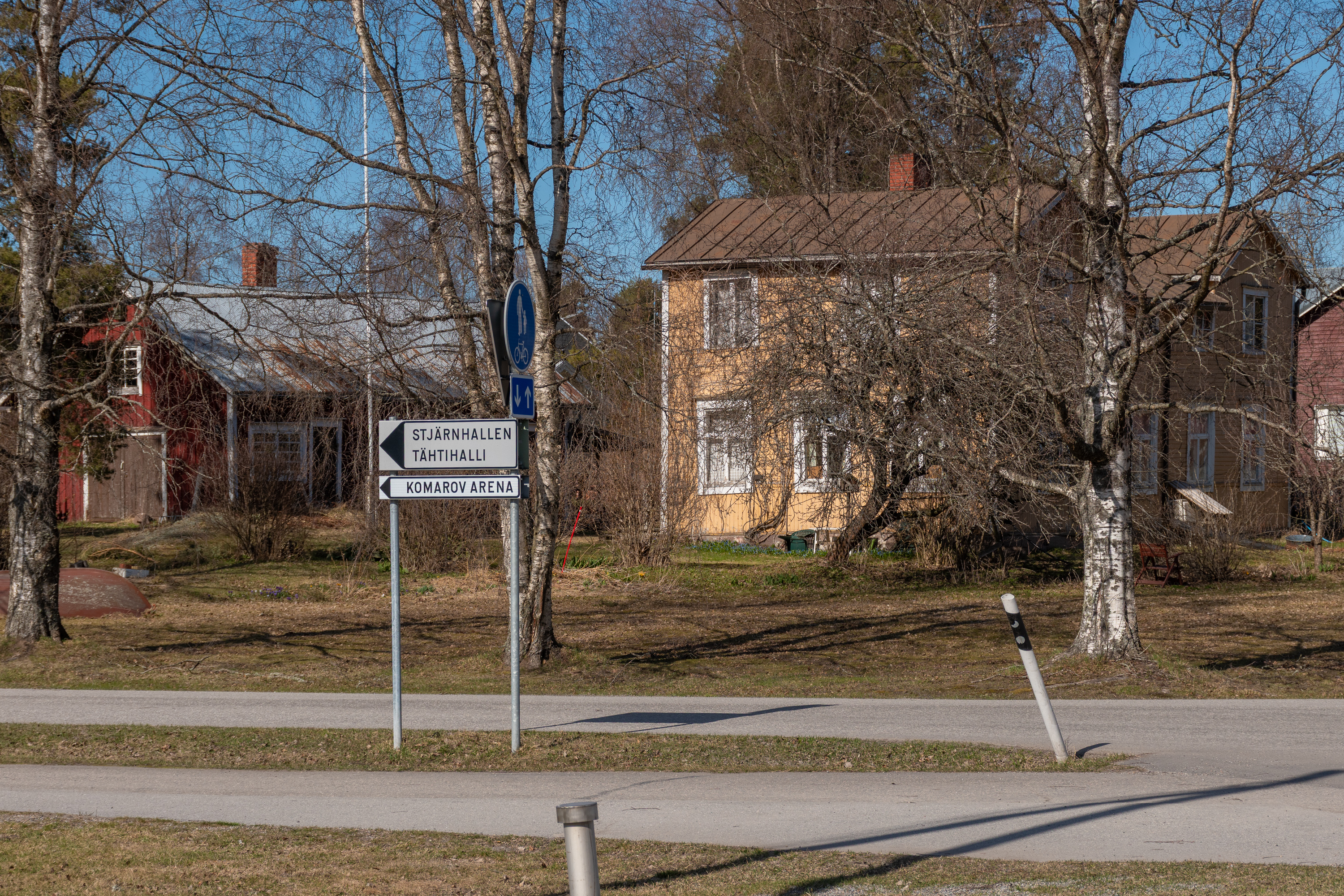 53. Местная ледовая арена (а куда же в Финляндии без нее) называется, внезапно, ареной Комарова. Leo Komarov, Леонид Комаров (р. 1987) — известный финский хоккеист, родился в Нарве, его отец Александр Комаров (р. 1962 в Петрозаводске) тоже был хоккеистом. Они переехали в Финляндию в 1991 по корням как ингерманландские финны, поселились в Остроботнии, сначала в Ваасе, потом в Нюкарлебю, и, по всей видимости, стали теми иммигрантами, кто здесь интегрировался изначально на шведском языке, а не на финском. Большинство иммигрантов от такой возможности, полностью легальной (шведский в т. ч. можно сдавать на гражданство, как и финский), друг друга отговаривают; шведский хоть и считается сильно проще финского, но в большей части Финляндии, включая Хельсинки с пригородами, практически бесполезен. Но Остроботния, и особенно провинциальная Остроботния, почти целиком шведоязычная, — исключение; если тут поселиться и особо никуда не ездить, то вполне нормально можно обойтись шведским. Конечно, в наши дни товарищ Комаров и по-фински говорит без проблем; арену тут назвали в честь него, когда он в составе сборной Финляндии выиграл чемпионат мира по хоккею в 2011 в Словакии, также в финской сборной в 2022 он выиграл Олимпийские игры в Пекине. В конце 2021 как раз заключил контракт с петербургским СКА, из-за войны пришлось возвращаться и искать другие варианты, но, в общем, карьере это не повредило.