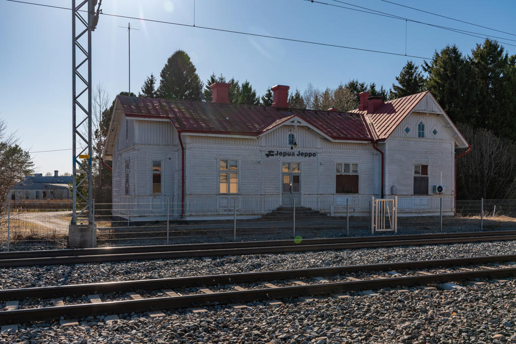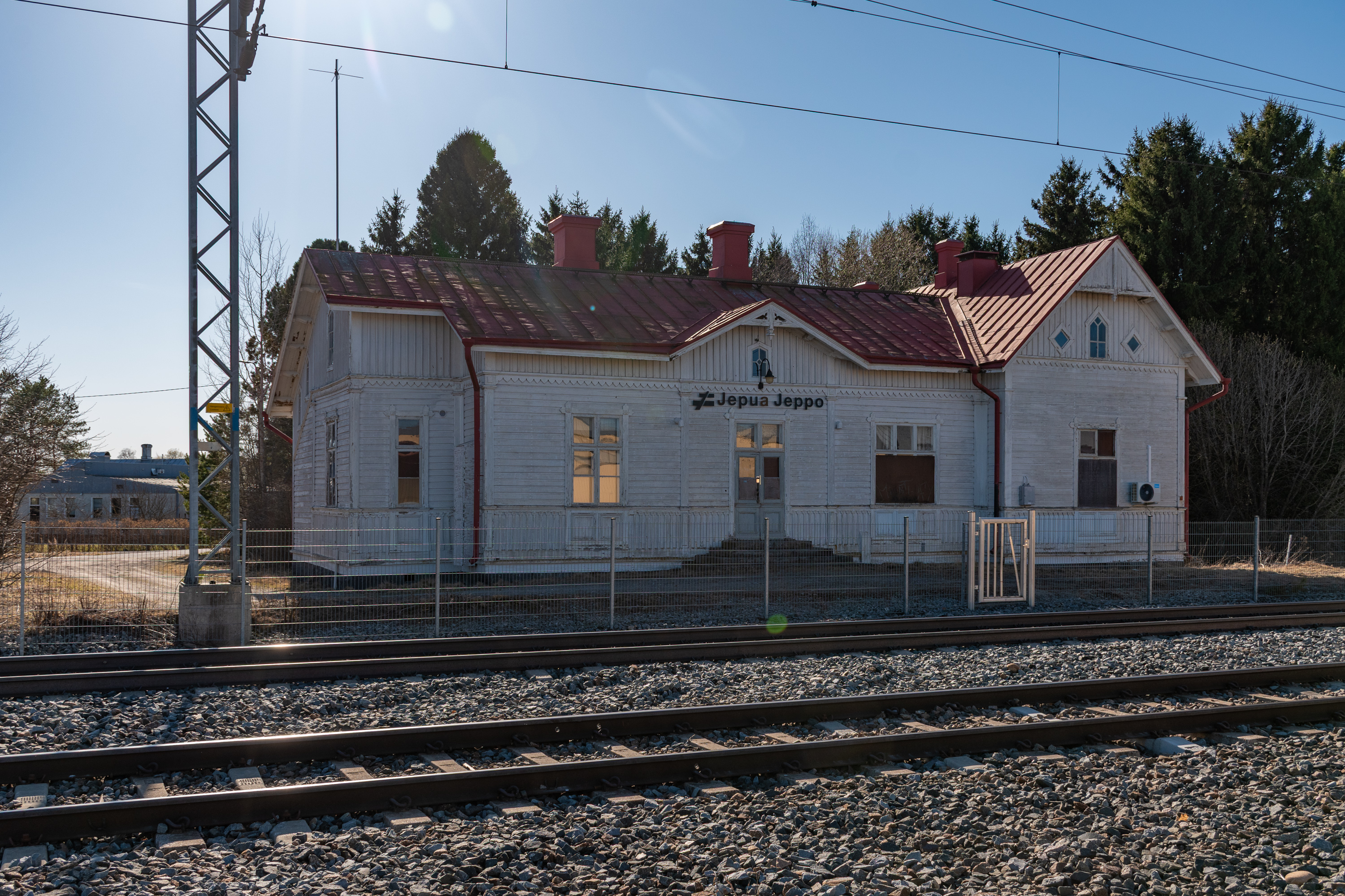 86. Железная дорога на Кокколу-Оулу проходит через Йеппо — пару десятков километров от Алахярмя она следует долиной Лапуанйоки, но отсюда дальше заворачивает на северо-восток на Ковйоки мимо города Нюкарлебю. Станция Йеппо используется лишь для разъезда, пассажирского движения нет с 1991 и грузового с 2002, платформы снесены, а типовой небольшой деревянный вокзальчик-ровесник ж/д (1886), по-видимому, заброшен.