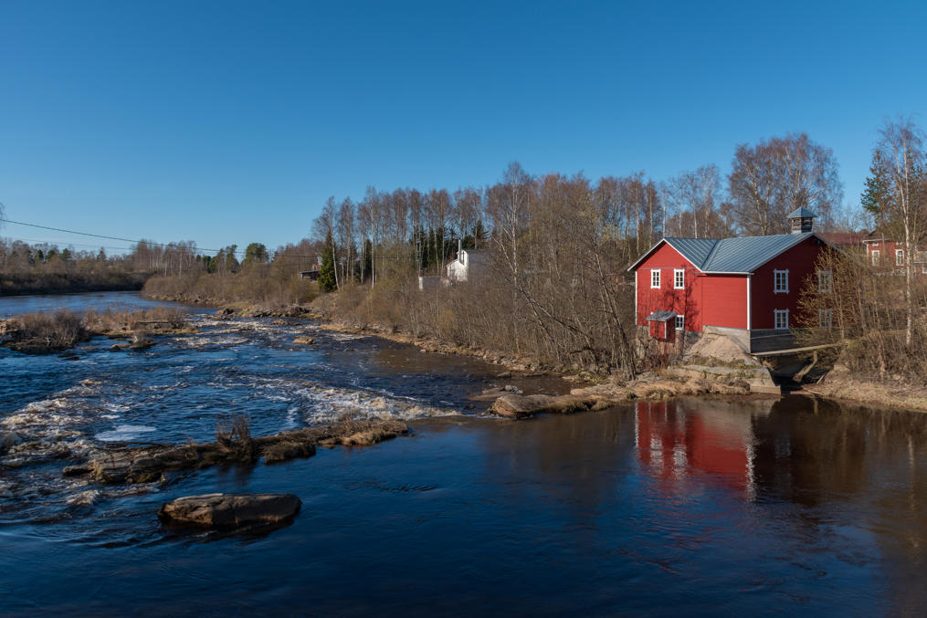 82. В Йеппо Лапуанйоки, разбивающаяся на два рукава в 6 км выше по течению и образующая большой остров, сливается обратно. На восточном рукаве — симпатичная бывшая мельница.