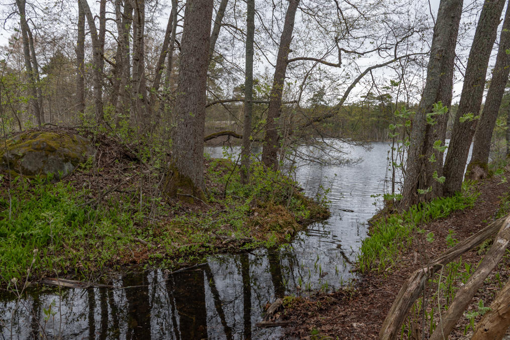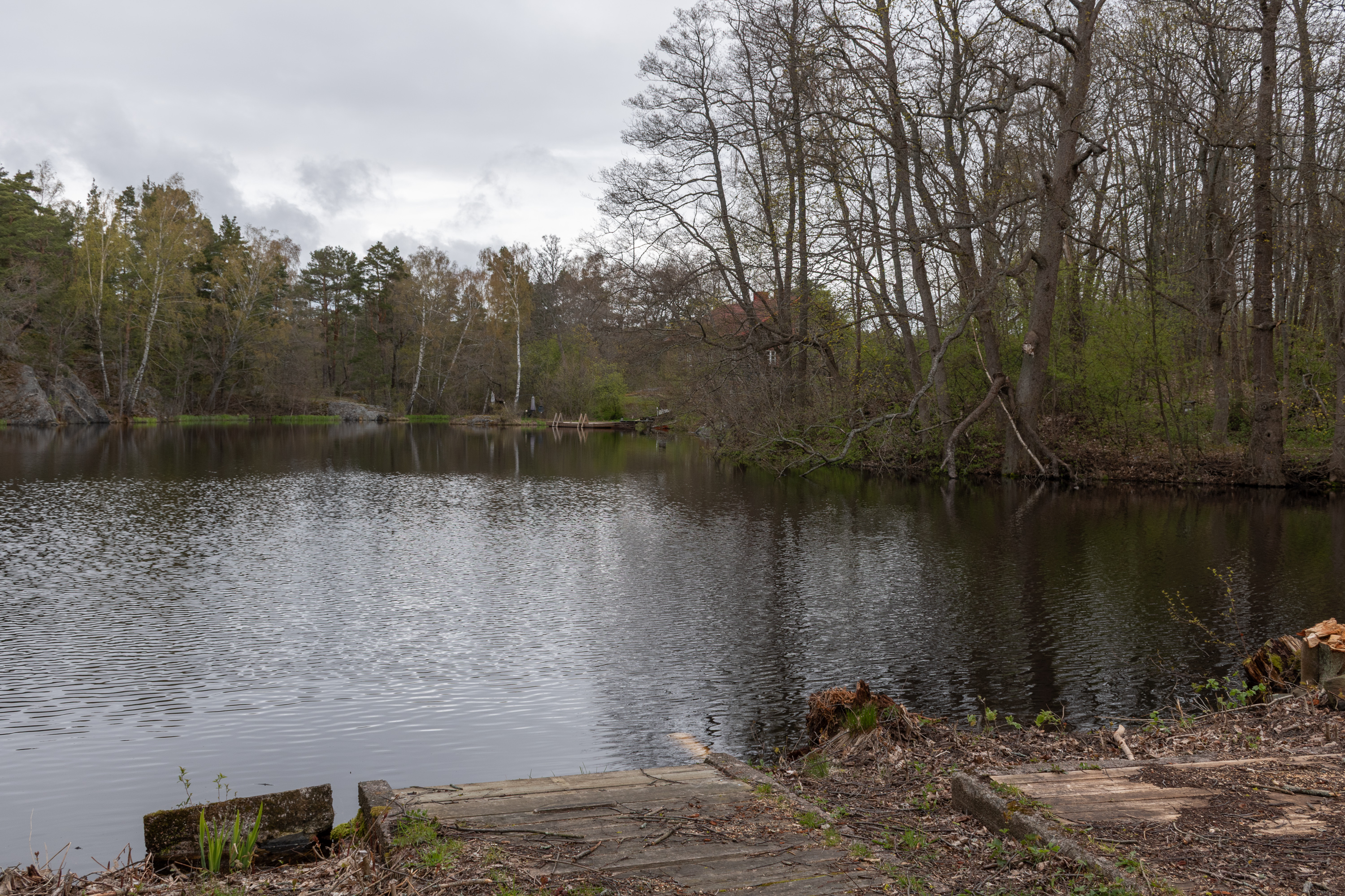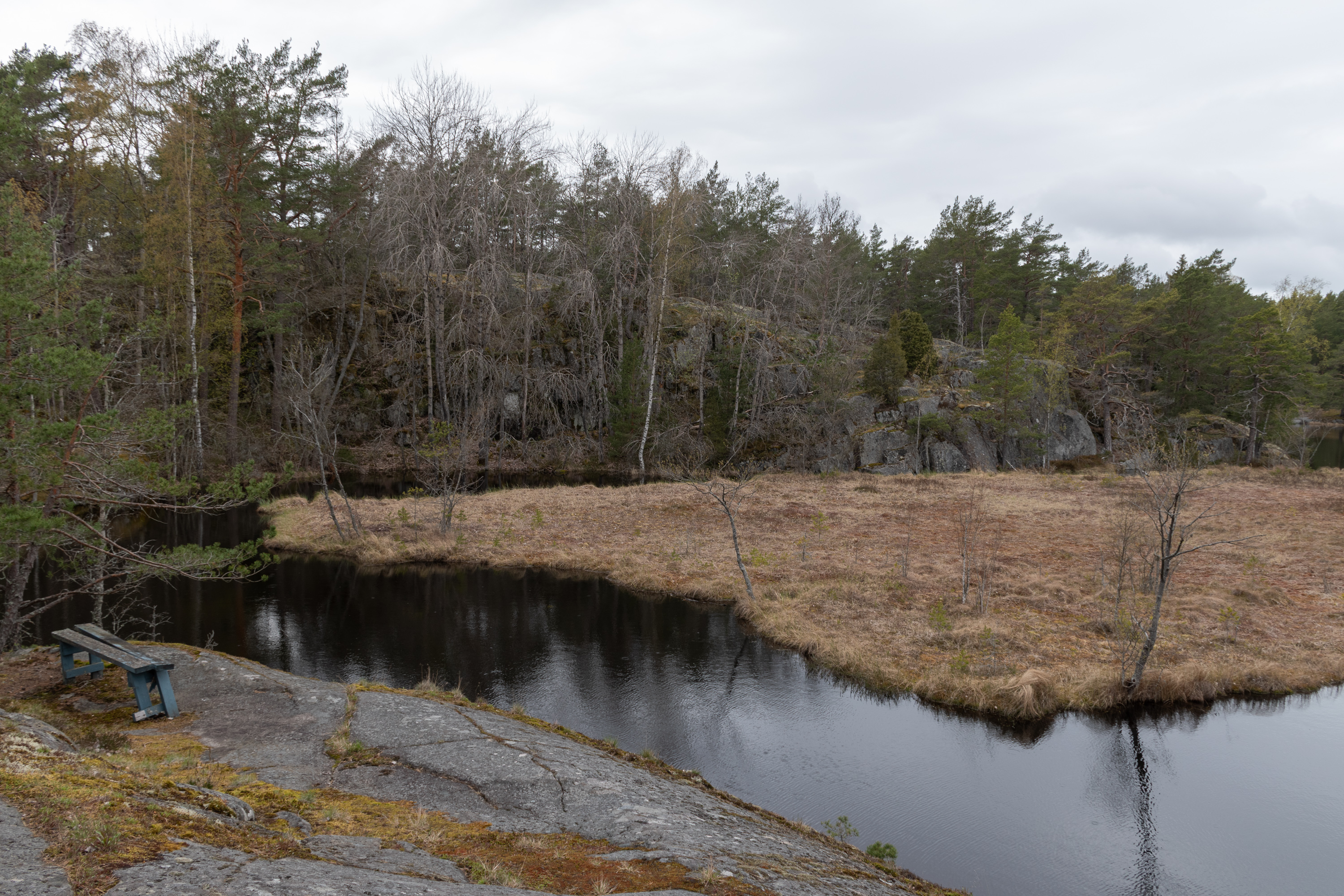 40. За домной начинается природа — пешие тропы по берегам цепочки озер, под названиями просто Пруд (Dammen), Малое Доменное (Lilla Masugnsträsket) и Большое Доменное (Stora Masugnsträsket). Очевидно, озера по крайней мере частично искусственного происхождения, подпружены. Стока нигде не видно — видимо, давно спрятан под землю.