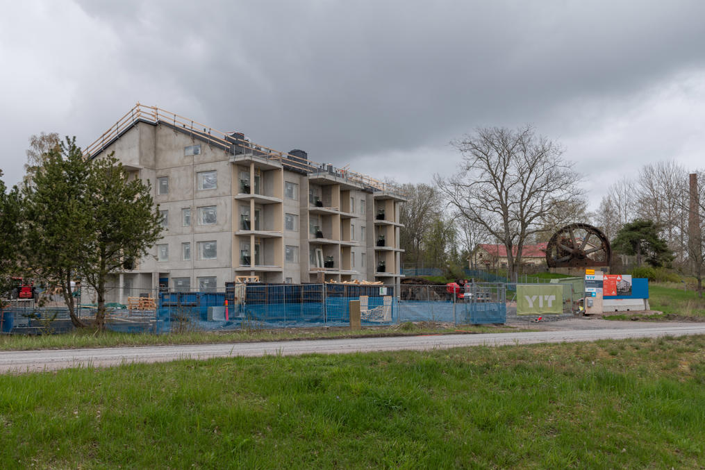 24. Немного удивительно, что новую многоэтажку тут строят, но на самом деле это дом для пожилых людей специальный — не дом престарелых, все-таки с отдельными полноценными квартирами и рассчитанный на самостоятельное проживание, но с большим количеством общих помещений, чем обычно, и квартиры будут сдаваться людям от 55 лет как муниципальное жилье. Не знаю, много ли смысла в таком доме. Судя по их брошюре, смущает, что сэкономили, как обычно, на парковочных местах (14 на 32 квартиры) — большинство пожилых людей продолжают все-таки водить машину, пока физически могут, а тем более в таком достаточно отдаленном поселке без машины совсем грустно будет жить.