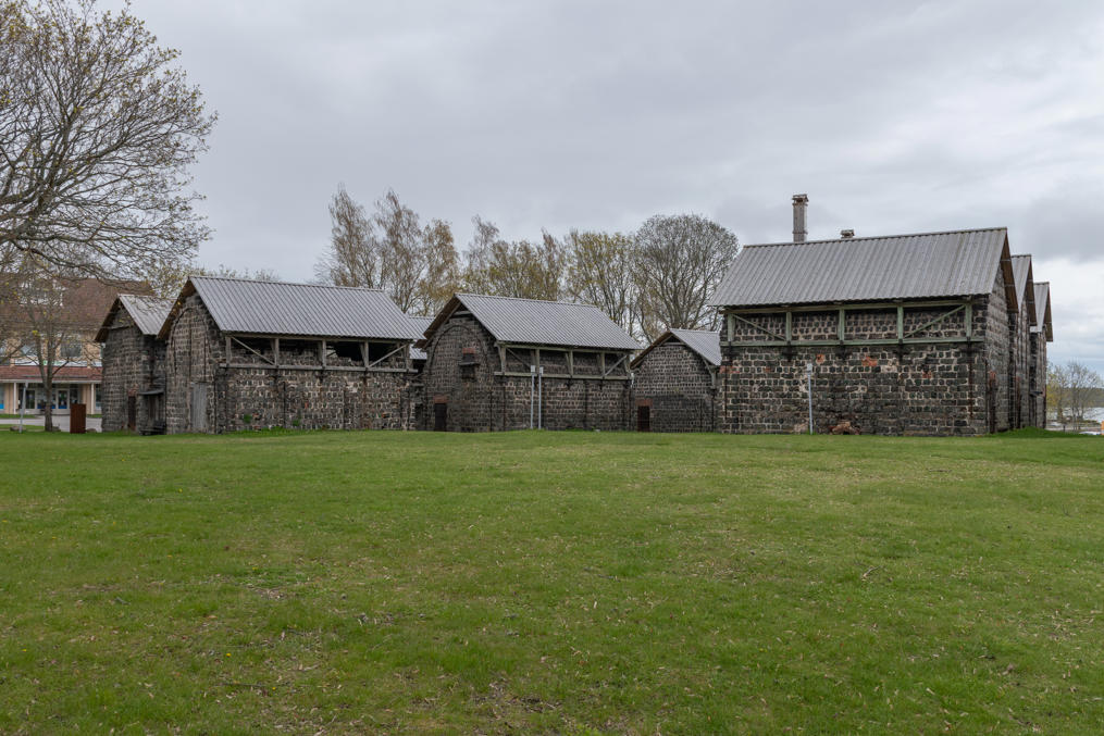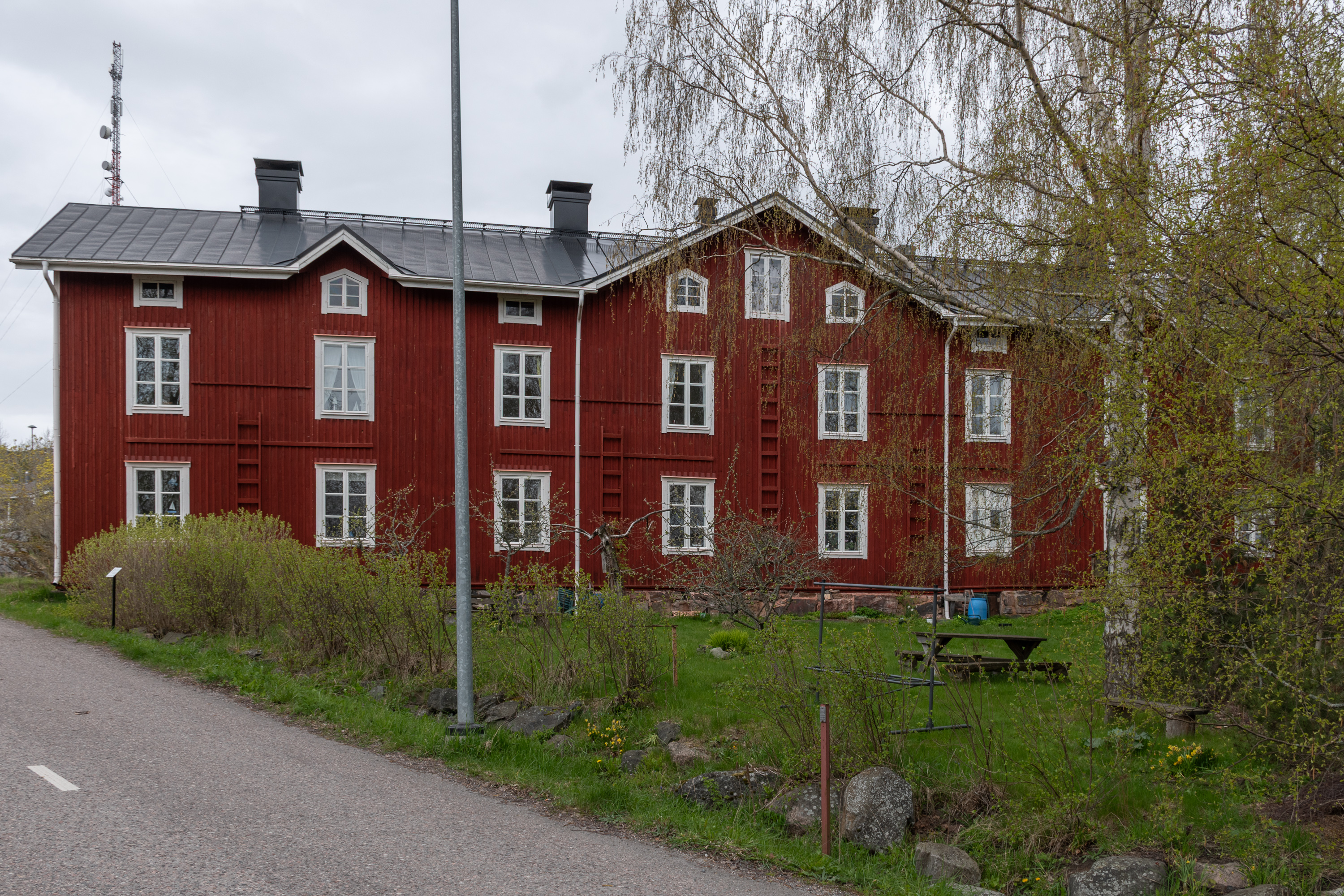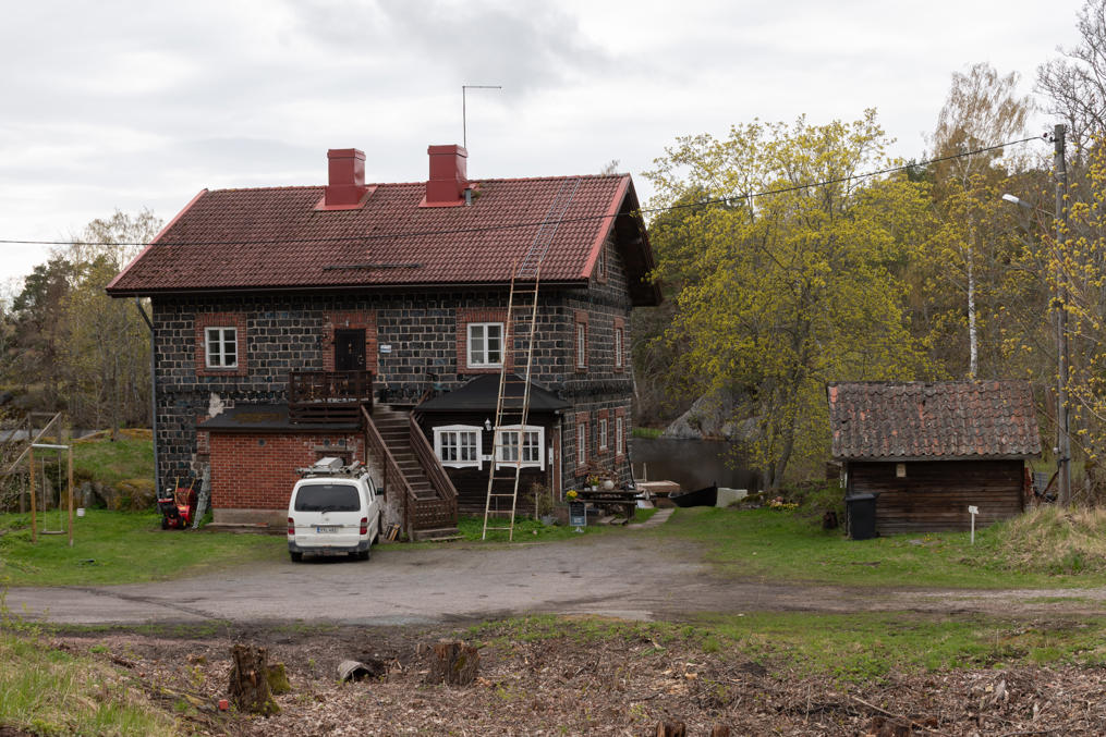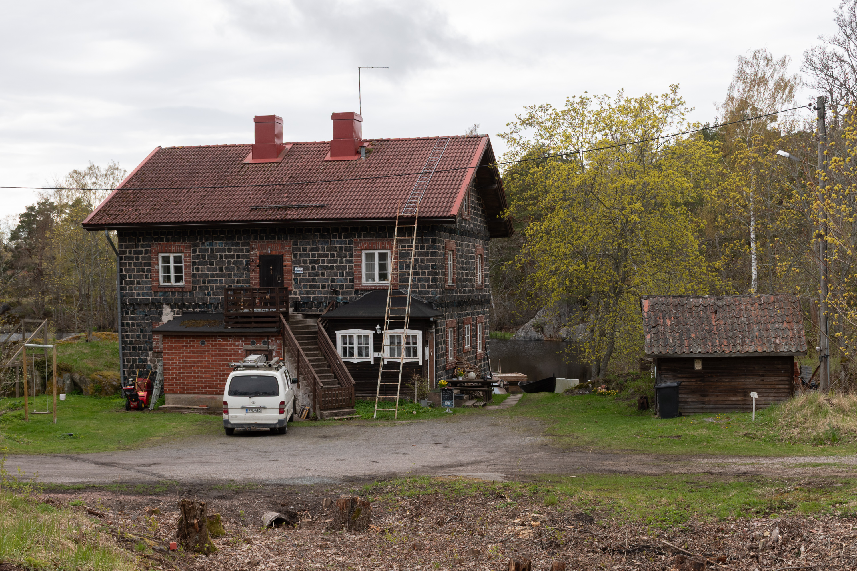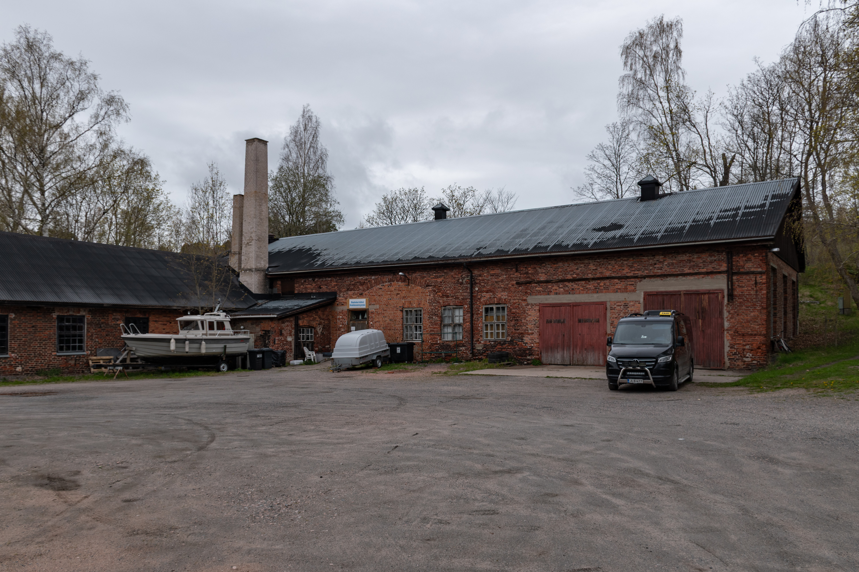 Дальсбрук как населенный пункт, тем не менее, совсем уж в упадок не пришел. Это был центр муниципалитета Драгсфьерд и второй крупнейший поселок Кимито, и по сей день он пока выглядит относительно неплохо. Ему повезло находиться в красивом месте на побережье Кимито, и он привлекает относительно много туристов — ехать сюда, конечно, не слишком удобно, зато плыть нормально :) А также пара летних фестивалей есть. Главный нынешний арендатор бывших заводских площадей — компания DB Marina, занимающаяся ремонтом и хранением яхт. Сохранилось также довольно много исторических зданий, и особо отличает Дальсбрук то, что многие из этих зданий полностью или частично построены из доменного шлака — из характерных больших темно-серых, часто с красивым зеленым, реже синим отливом, кирпичей. Этот стройматериал исторически использовался и в постройках других железоделательных заводов и примыкавших к ним населенных пунктов, но масштабы его использования в Дальсбруке, я бы сказал, больше, чем где-либо еще в Финляндии. Также здесь частично сохранилась старая доменная печь, что для Финляндии является очень большой редкостью — в стране, насколько мне известно, есть только три сохранившихся доменных печи старых железоделательных заводов — в Дальсбруке, Скугбю под Экенесом и Лейнепери под Ульвилой. По стечению обстоятельств все три я увидел впервые весной 2025 :)