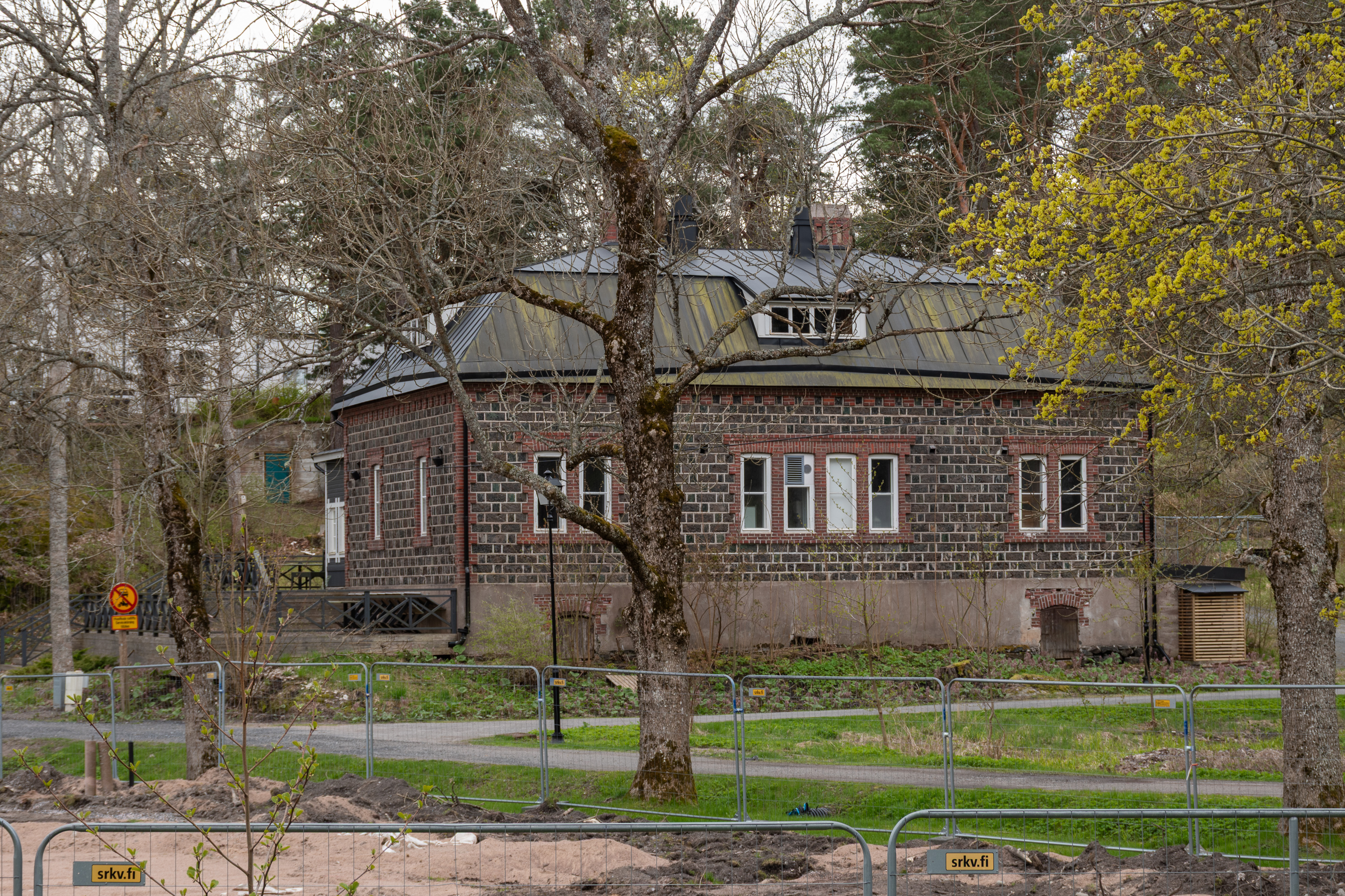 32. В небольшом парке тоже что-то чинили, снял только издали сауну для административных работников, 1902. Здесь парились также почетные гости когда-то, вплоть до президента Кекконена :) Работает ли сейчас по назначению, непонятно.