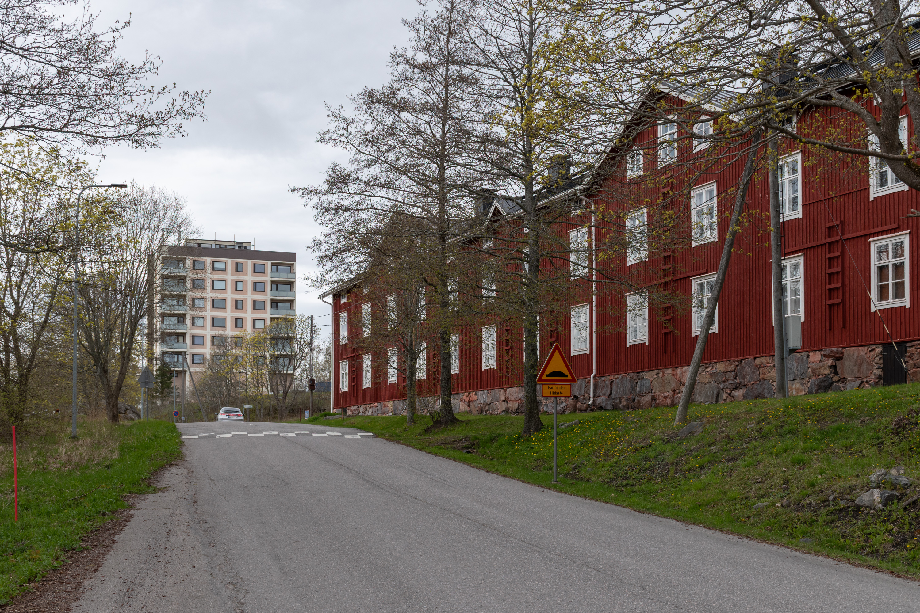 53. Запоминаются тем, что с их обратной стороны внезапно становится понятна тесность планировки. Такие дома, многоэтажные без подъездов и с входами с внешних галерей, по-фински зовутся luhtitalo, и, опять же, обычно такие дома относительно современные, а подобные старые деревянные (конкретно эти 1890-1900-х годов) — большая редкость.