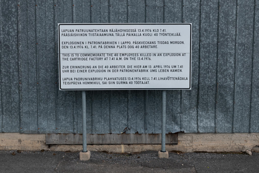 15. Непосредственно на месте взрыва после был построен какой-то ангар, у которого сейчас стоит такая вот простенькая табличка. Интересно, что по-эстонски подписали (внизу), в Финляндии очень редко что-то по-эстонски подписывают даже на юге страны, где, казалось бы, рядом же.