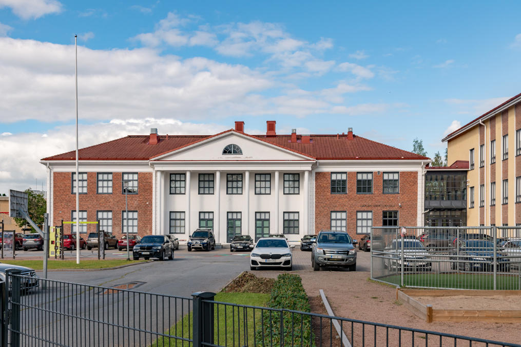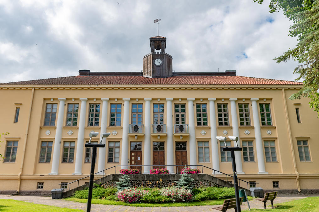72. Центральная школа. Эта самая старая школа в Лапуа основана в 1869 году, старый главный корпус с колоннами — 1924 года.