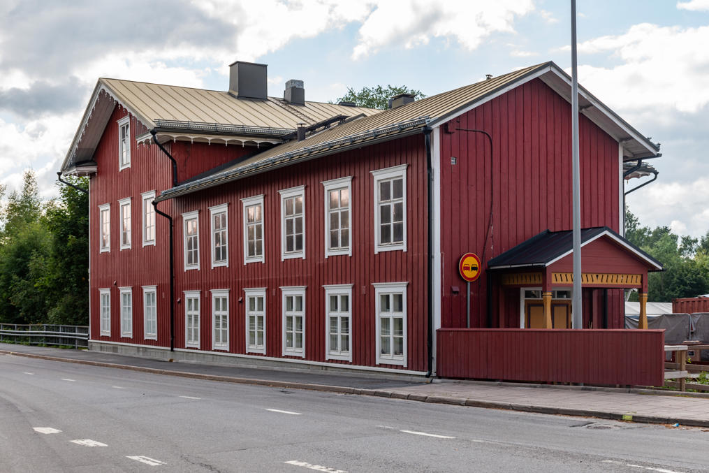 24. В этом корпусе размещается фирменный магазин фабрики Lapuan Kankurit ("Лапуасские ткачи"). Это основанная в 1973 семейная компания, продающая всякие скатерти, полотенца, покрывала и прочее. Они действительно до сих пор имеют почти все производство в Лапуа в цеху на окраине; если верить их сайту, только 3% делают в Литве в Каунасе и <1% закупают у других поставщиков. Так что можно покупать смело, не так уж много в Финляндии текстильных производств живых осталось; мы и сами что-то купили в эту поездку, не помню уже, что. В Лапуа для этого ехать не обязательно, конечно, во многих обычных магазинах их продукция есть.