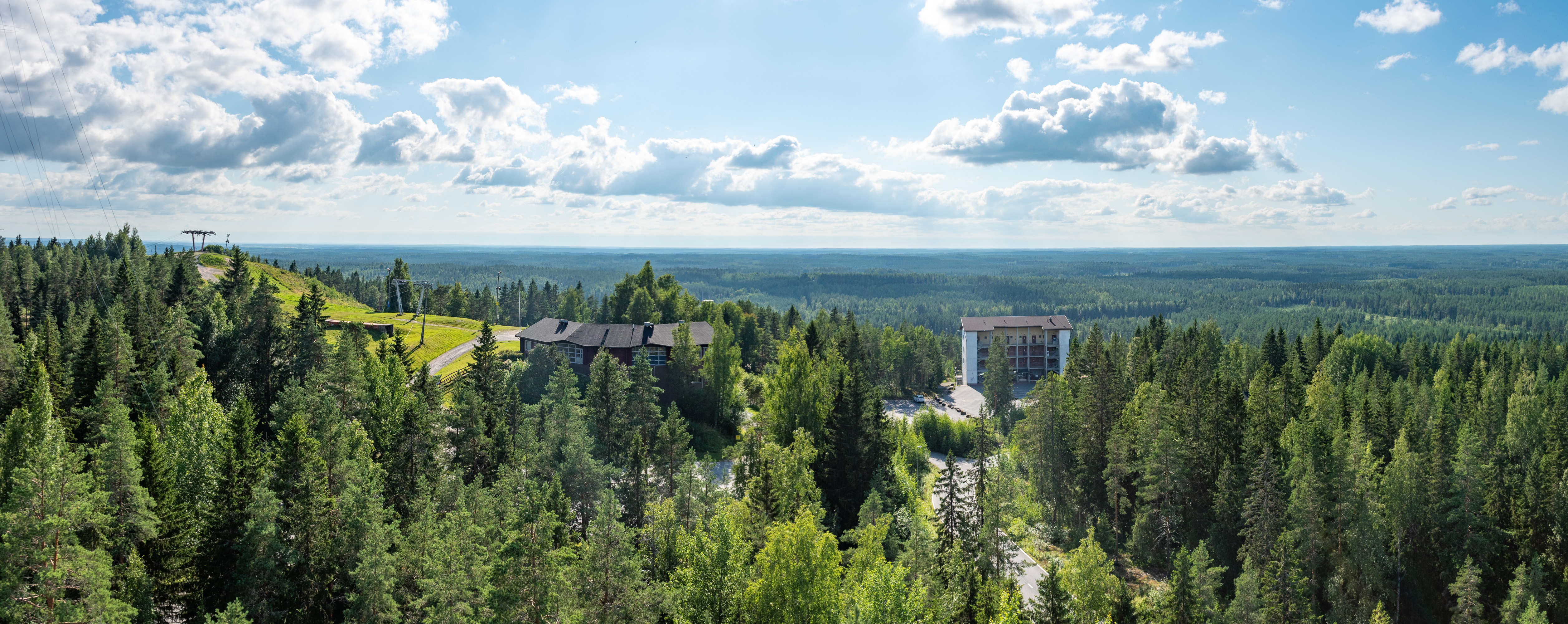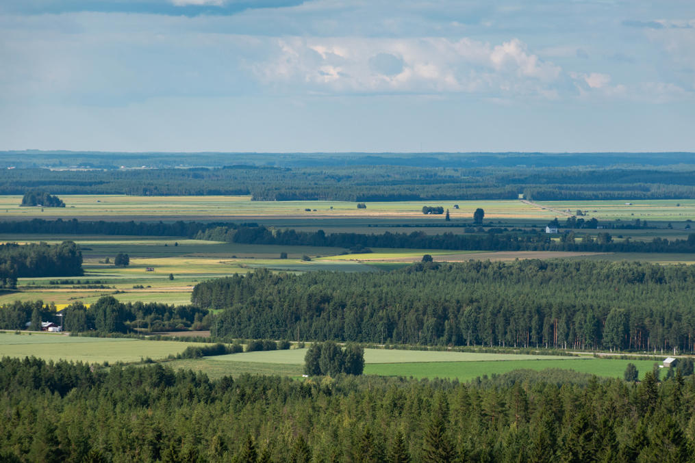 79. Вид в сторону туристической инфраструктуры со смотровой вышки. В эту сторону, на юг, дальше сплошные леса — остроботнийское болотистое междуречье.