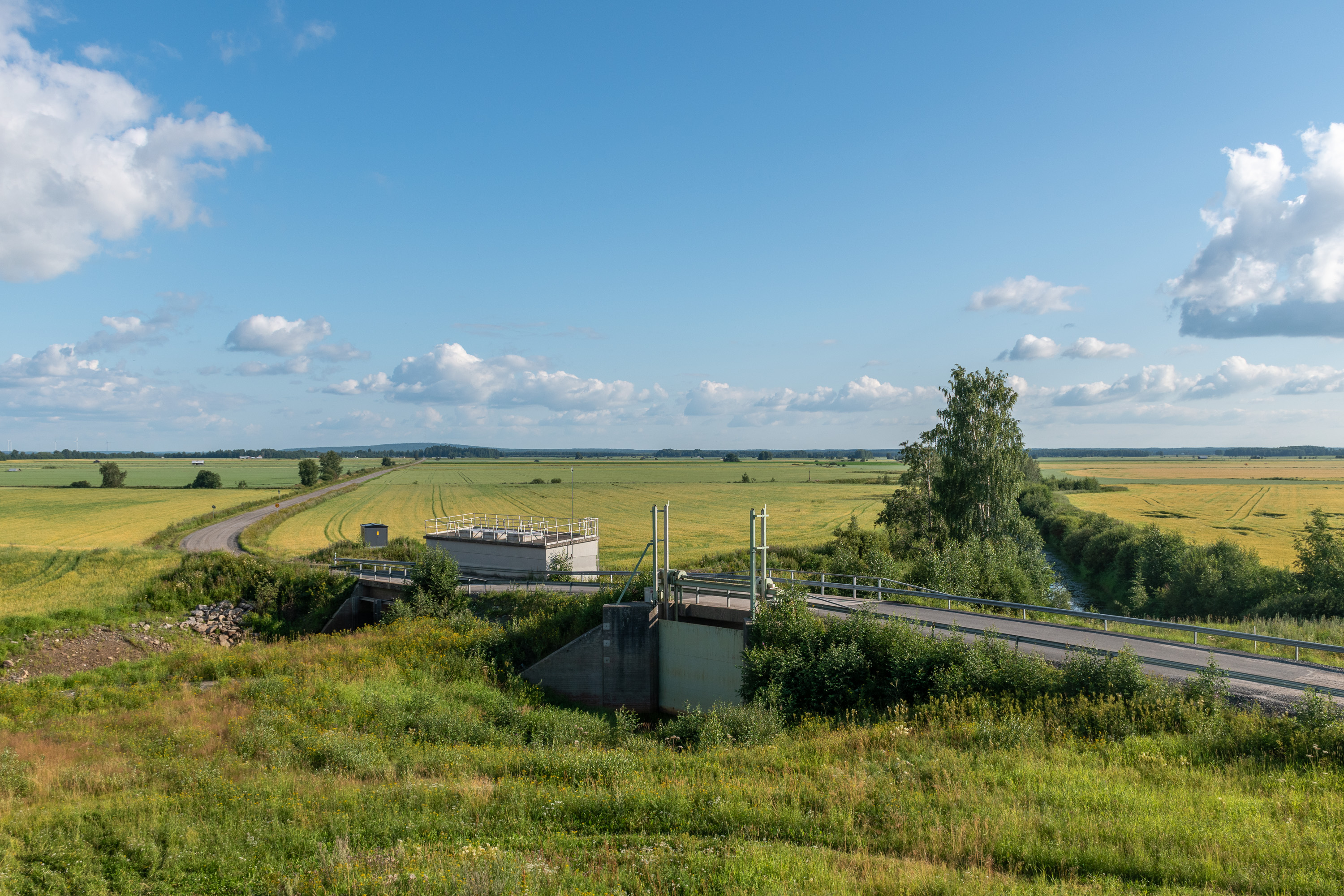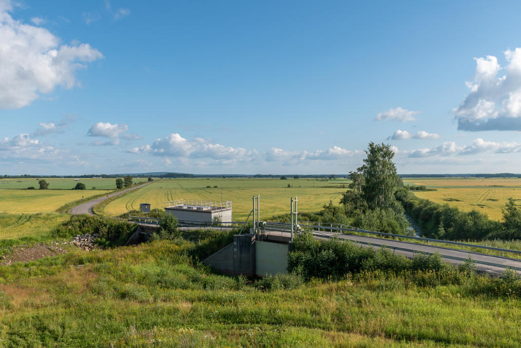 84. Плотина по пути на небольшом притоке Лапуанйоки напоминает об остроботнийских наводнениях. Эти широкие южноостроботнийские равнины по весне вполне себе неплохо топит, или по крайней мере топило исторически, пока не построили плотины, дамбы вдоль берегов рекв самых критичных местах, и водохранилища в верховьях. Для регулирования Лапуанйоки в частности используется довольно крупное водохранилище Хирвиярви (фин. Лосиноозерское, Hirvijärven tekojärvi), в верховьях притока Нурмонйоки, в 6-7 км восточнее города Сейняйоки.