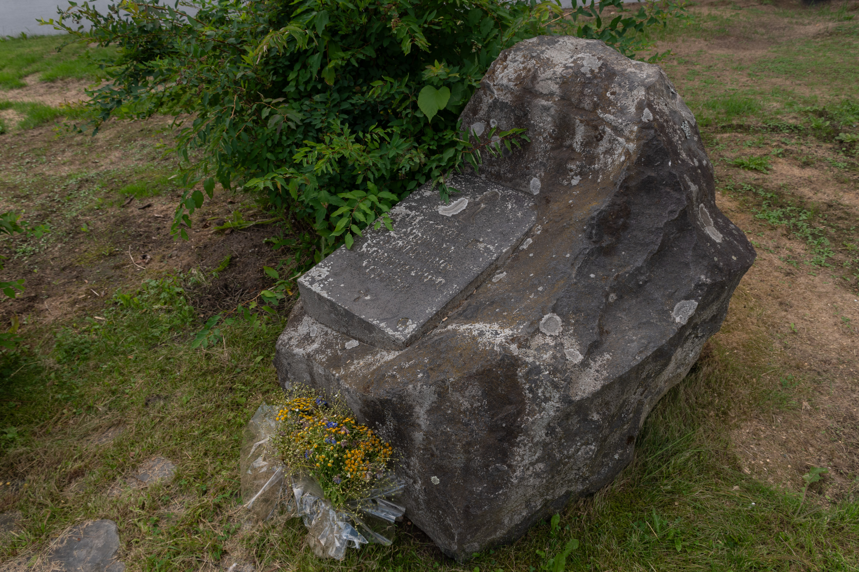 27. Взрыву на патронном заводе посвящен также памятник, стоящий перед ним у дороги, установленный в 1986. Так себе памятник, как по мне, уж, наверное, не обязательно было этой катастрофе делать памятник в виде треснувшей жопы. Ну, понятно, это должно символизировать разбитые жизни или что-то в этом роде.