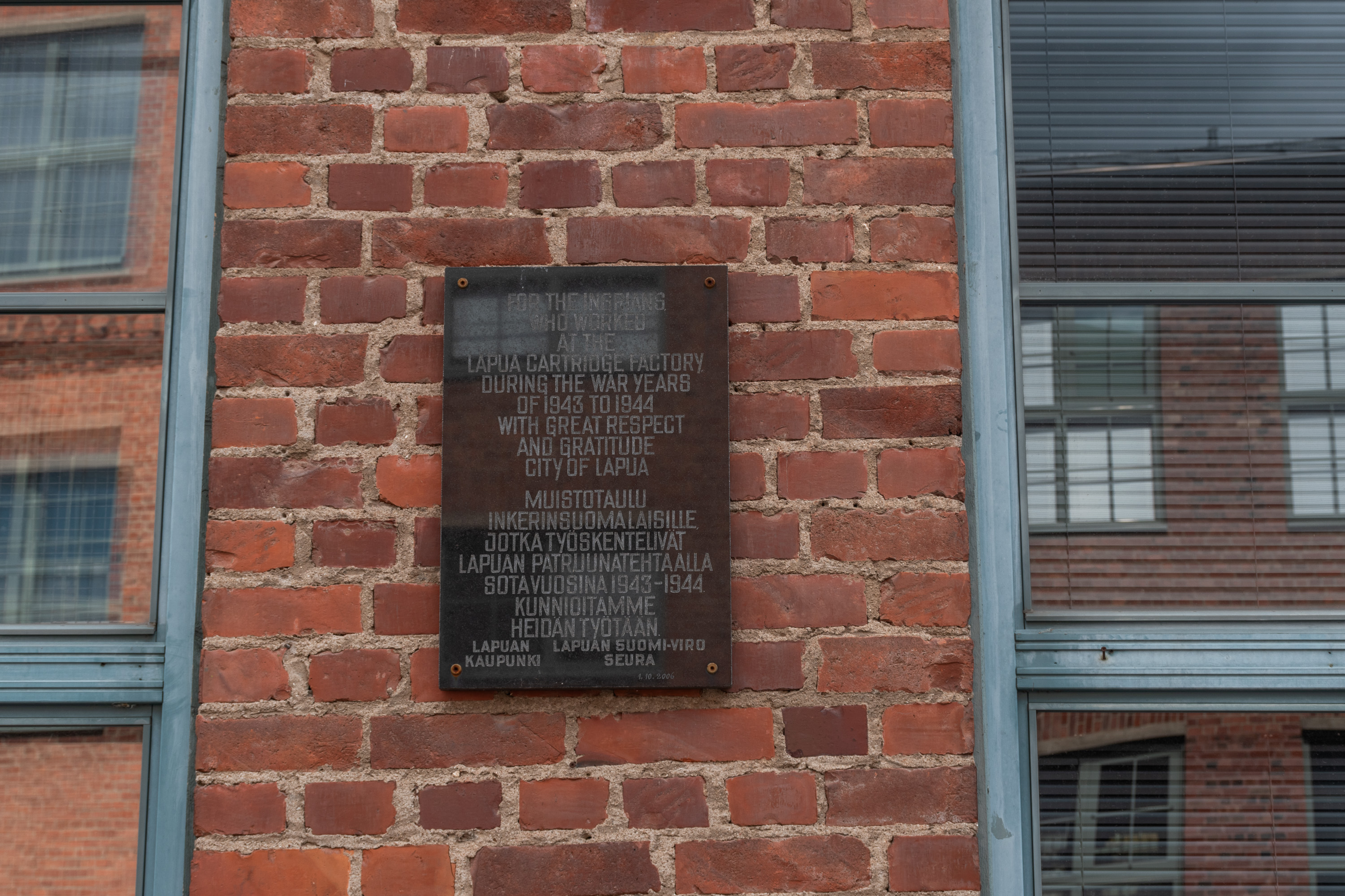 25. Интересная памятная табличка — ингерманландским финнам, работавшим на патронном заводе в 1943-1944. Здесь их работало более сотни, жили в бараках поблизости. В Войну-Продолжение по договору с Германией с оккупированных ей территорий в Финляндию в эти годы было эвакуировано, через Палдиски-Ханко, 63 тыс. ингерманландских финнов, а также ижорцев и води, и для них нашли жилье и работу по стране, в том числе и вот тут, в Лапуа, где, по рассказам, местные отнеслись к ним весьма радушно.