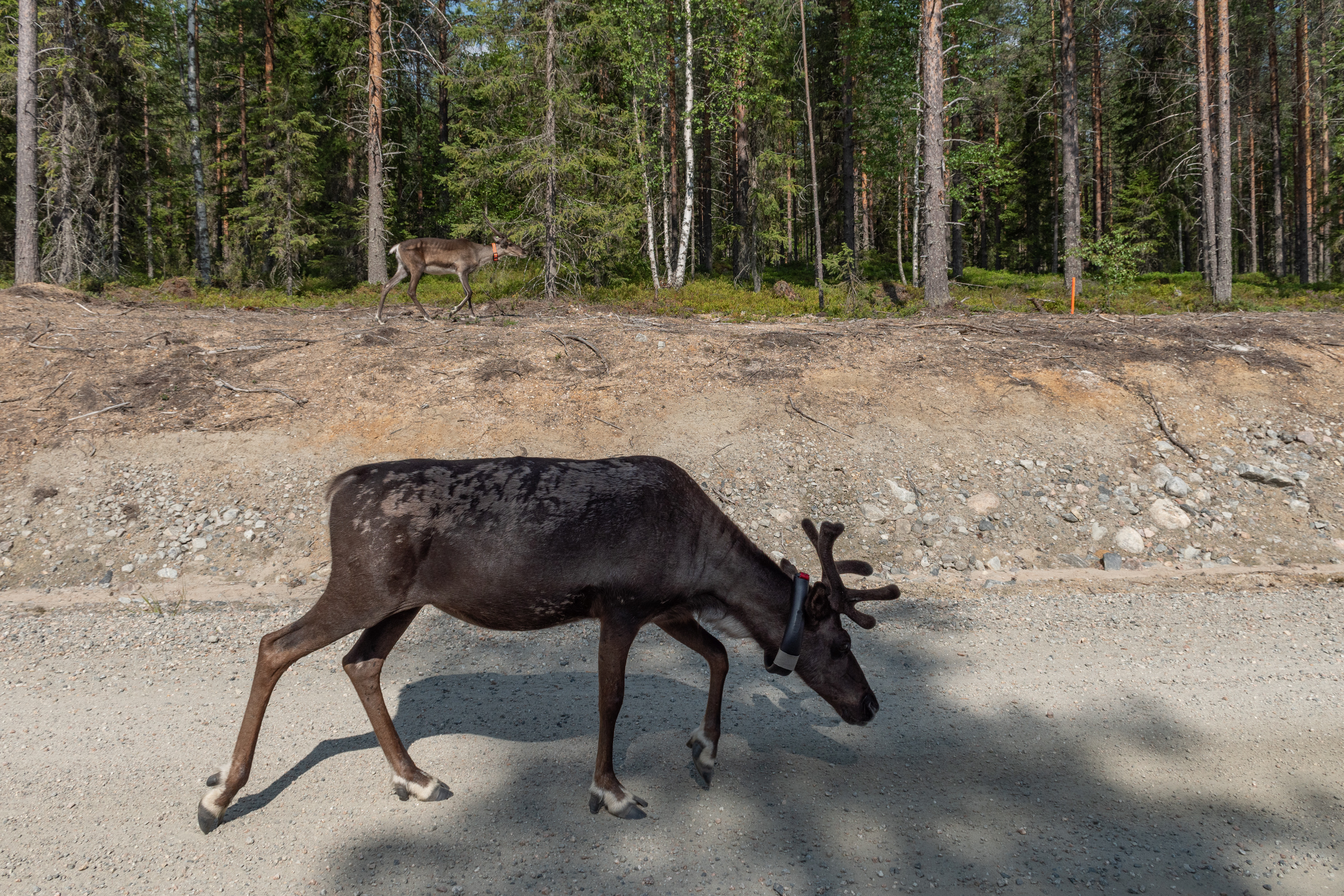 20. Хюрюнсалми, наряду с соседними Суомуссалми и Пуоланкой — это действительно, как говорится, "оленья граница" (pororaja) — в том числе, вполне физическая; по части южной границы муниципалитета Хюрюнсалми проходит забор, так как дальше, в Кухмо, живут уже дикие лесные северные олени, которые не должны смешиваться с домашними. Впрочем, по сравнению с Лапландией оленье поголовье здесь не очень велико. Я оленей только один раз встретил на лесной гравийке.