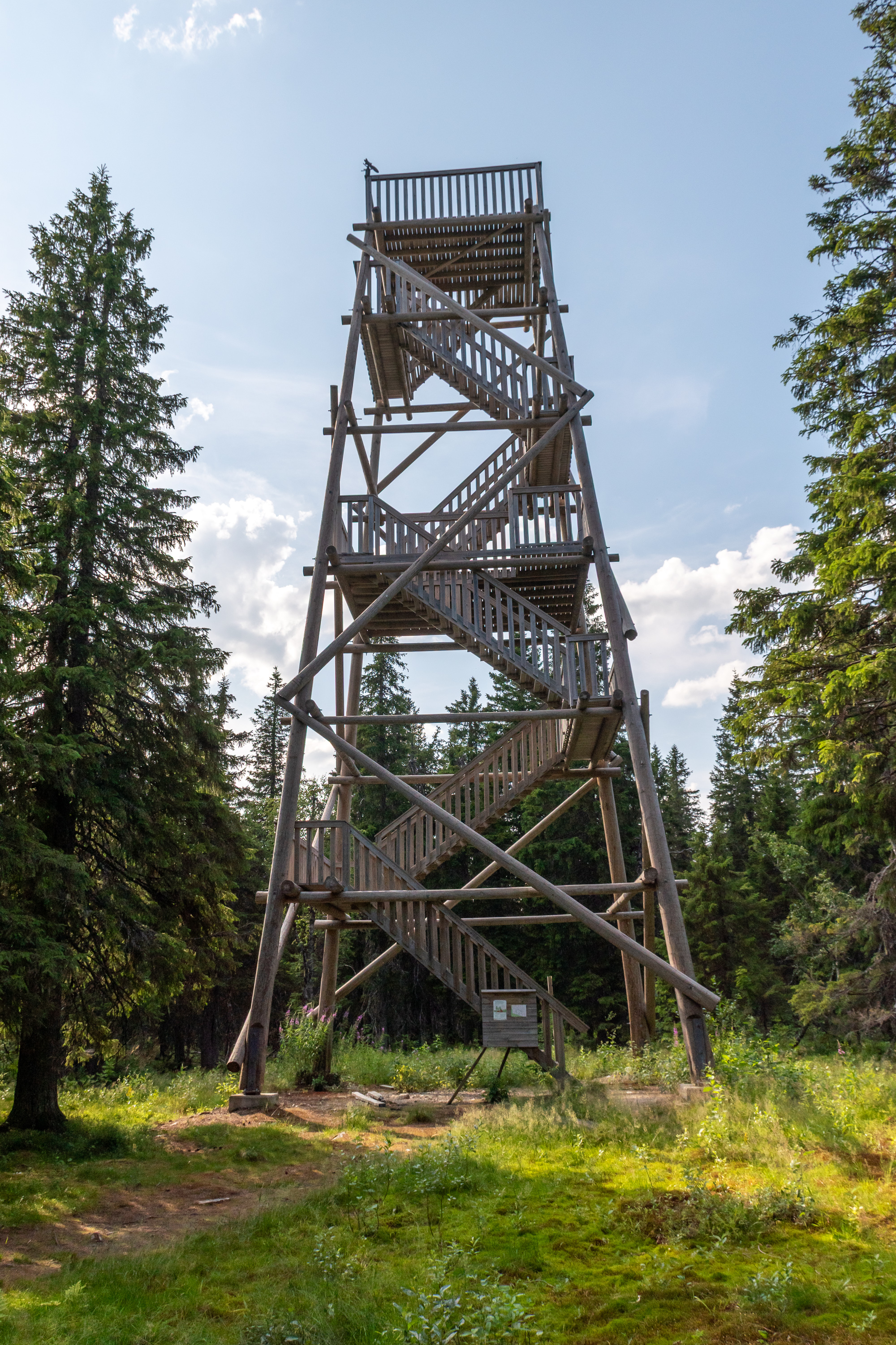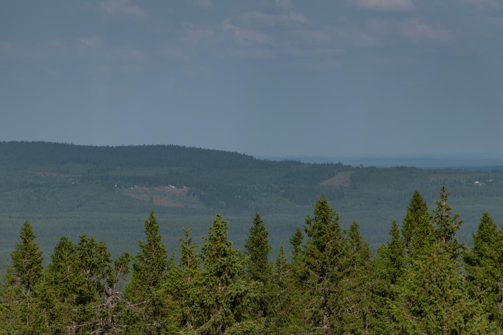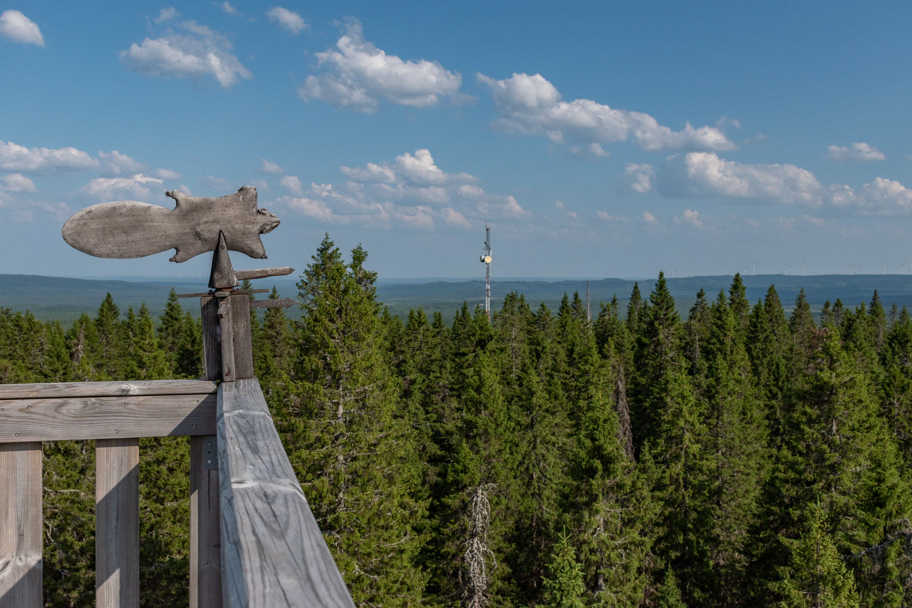 73. Смотровая вышка же тут довольно высокая, двадцатиметровая, надо же, чтоб была выше елок. Технически именно вершина этой вышки является самой высокой точкой Кайнуу, доступной пешком — 404 м.