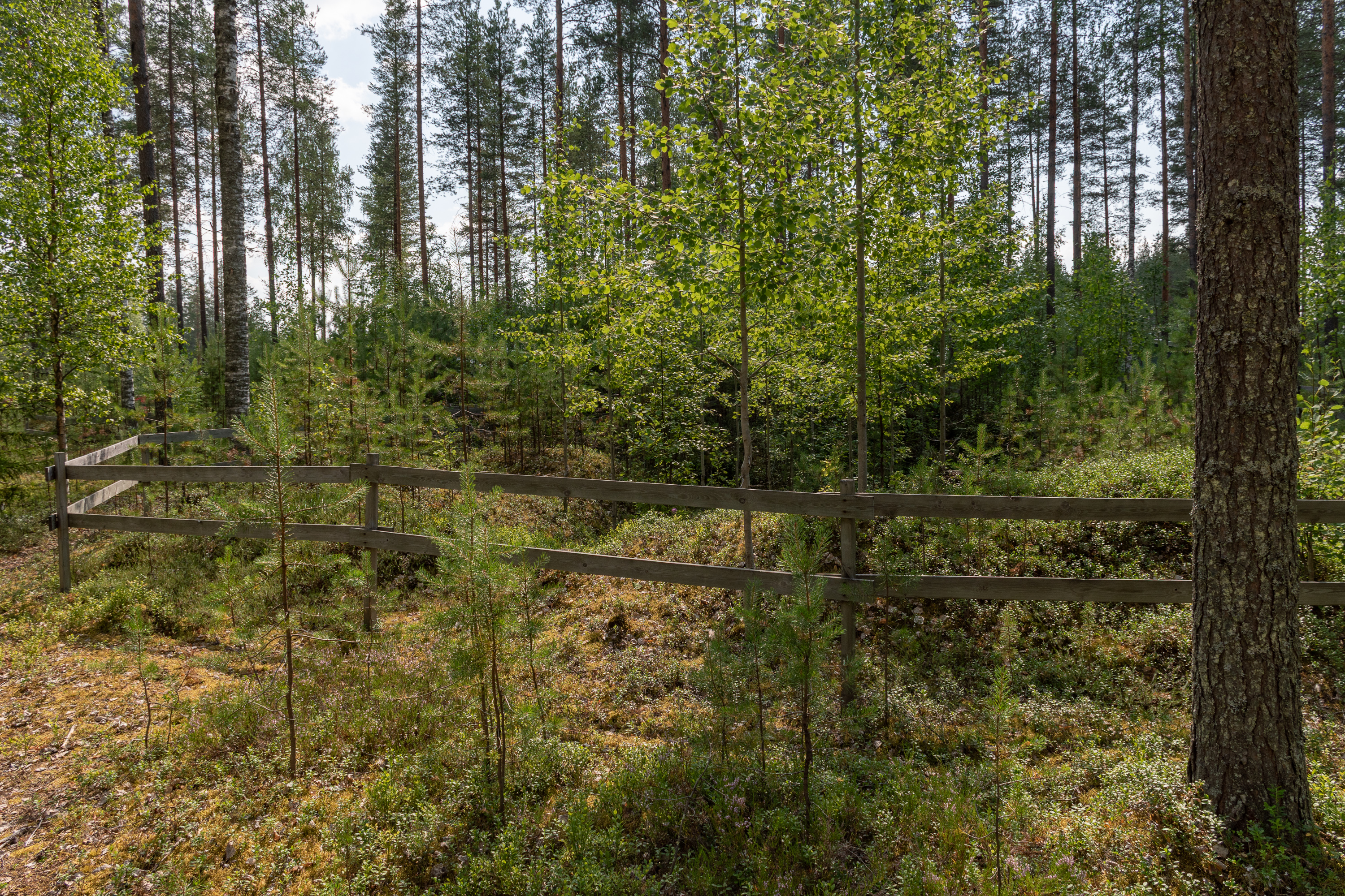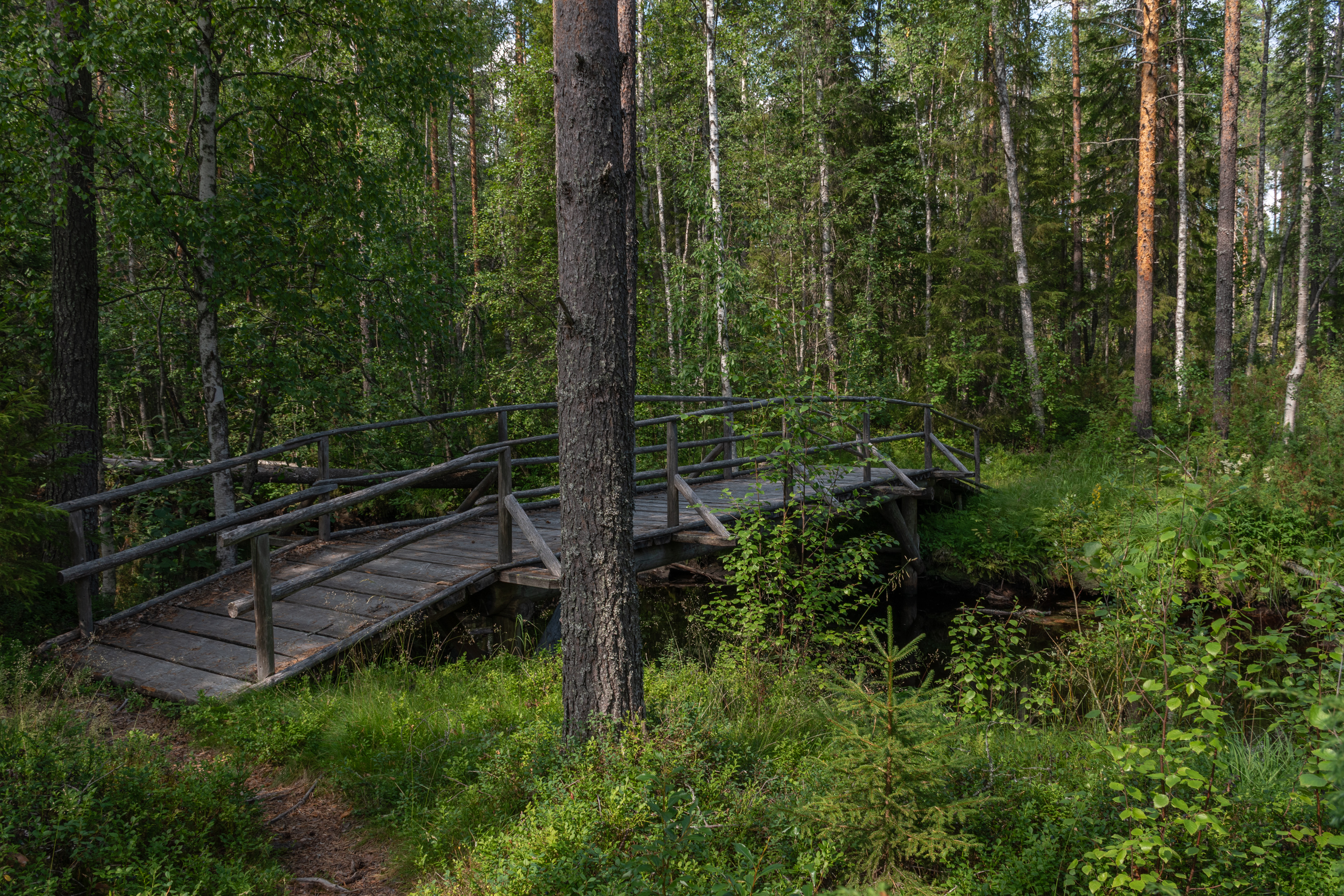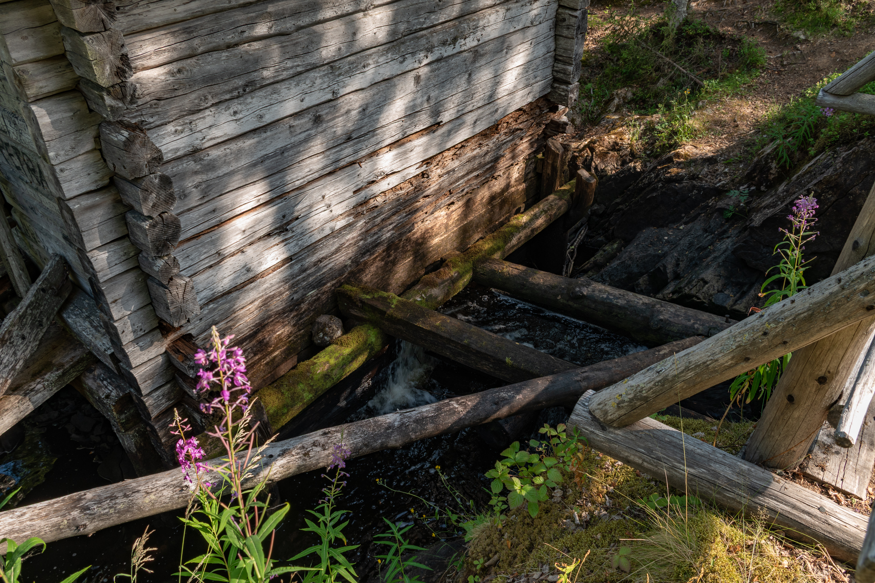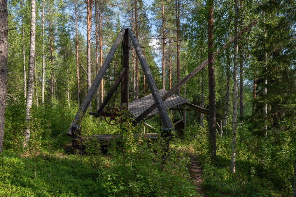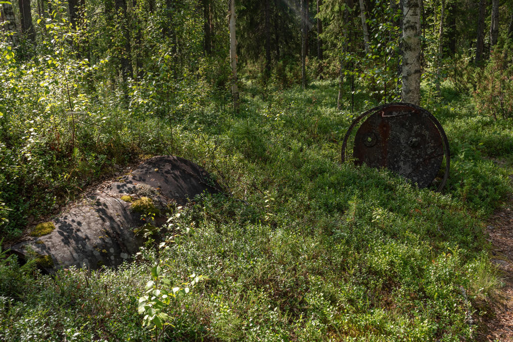53. Осталось от заводика, конечно, очень мало. Интересно здесь то, что это вообще был именно заводик. Сосновый деготь, черное золото Финляндии и особенно региона Кайнуу, исторически изготовлялся прямо в лесу, в так называемых дегтярных ямах (tervahauta), где лес складывали специальным образом в кучу, прикрывали дерном, поджигали, оставляли тлеть и ждали несколько дней, пока из вставленной в середину трубки не потечет продукт пиролиза дерева — деготь. Деготь был незаменим для смоления деревянных судов, и исторически до начала 20 века был одним из важнейших экспортов Финляндии — банально потому, что в ней сосновых лесов хватало и хватает выше крыши, особенно ближе к востоку страны, в то время как в континентальной Европе свои леса давно извели.